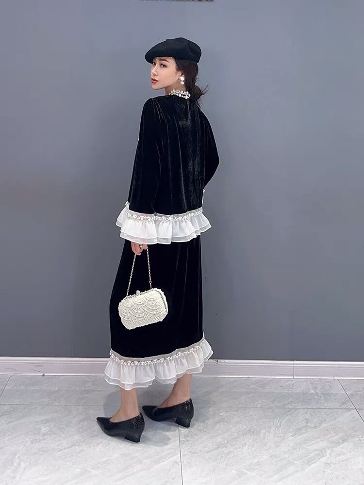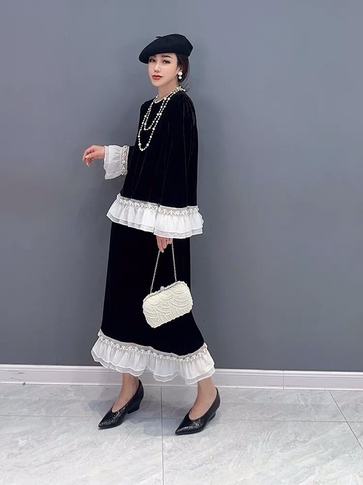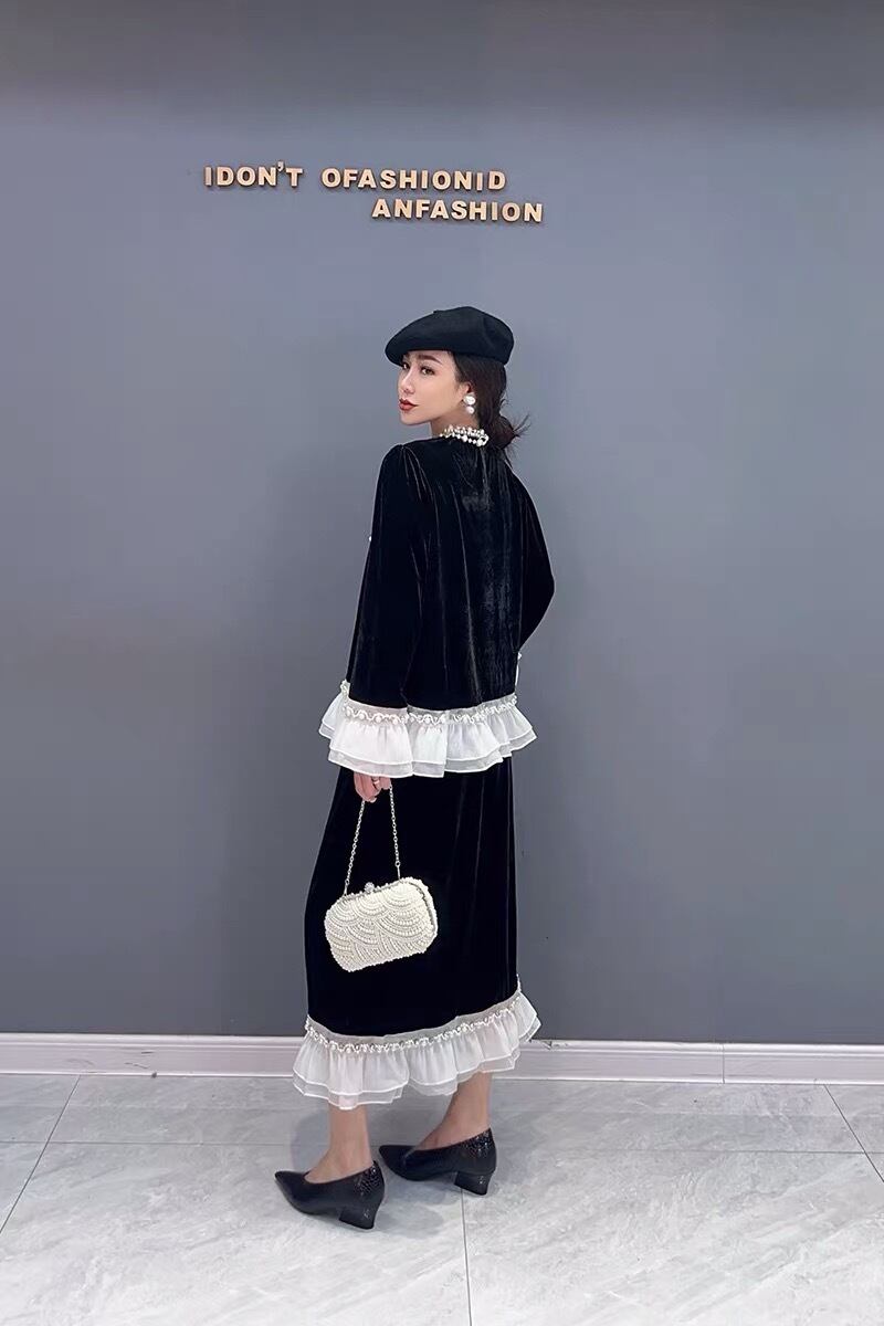 【セットアップ】ベロア ブラウス ベルベット 黒 スカート スカート ワンピース オフショルダー ピンク 白 ボーダー チェック ワンピース セーター ニット カーディガン オーバーサイズ ゆったり XL シャツ トップス カジュアル ブラウス スカート ビッグシルエット