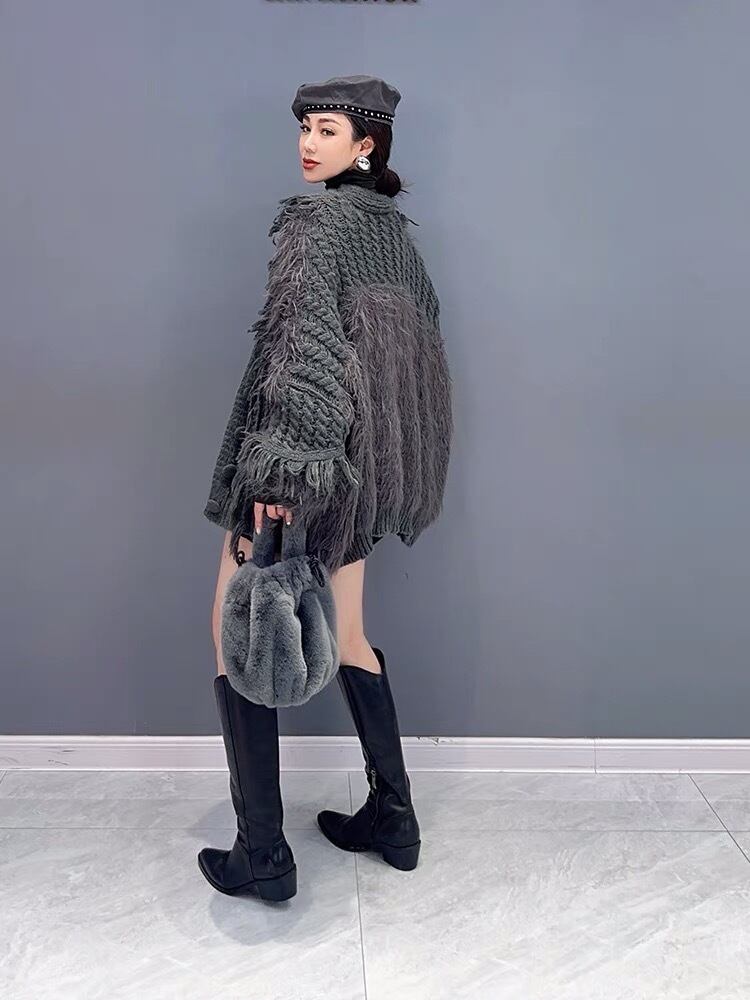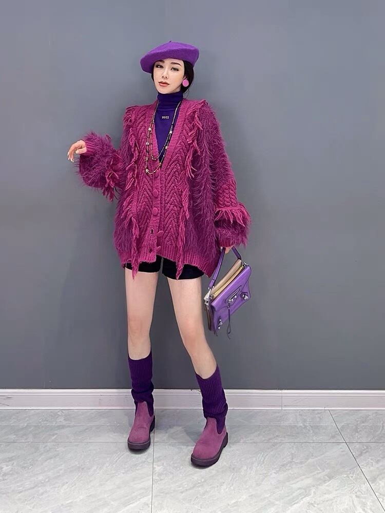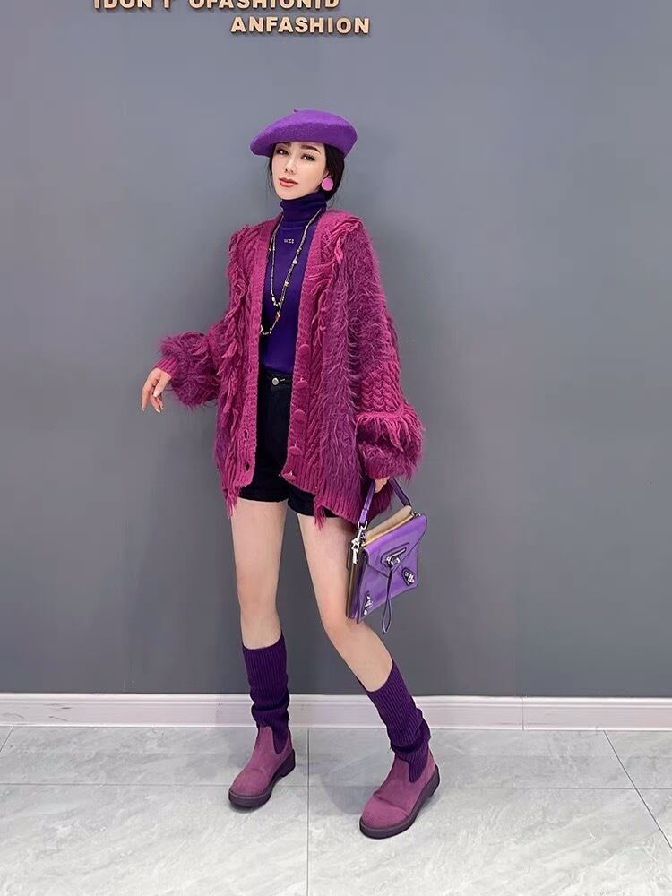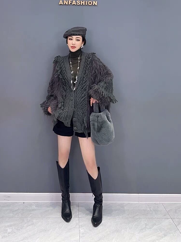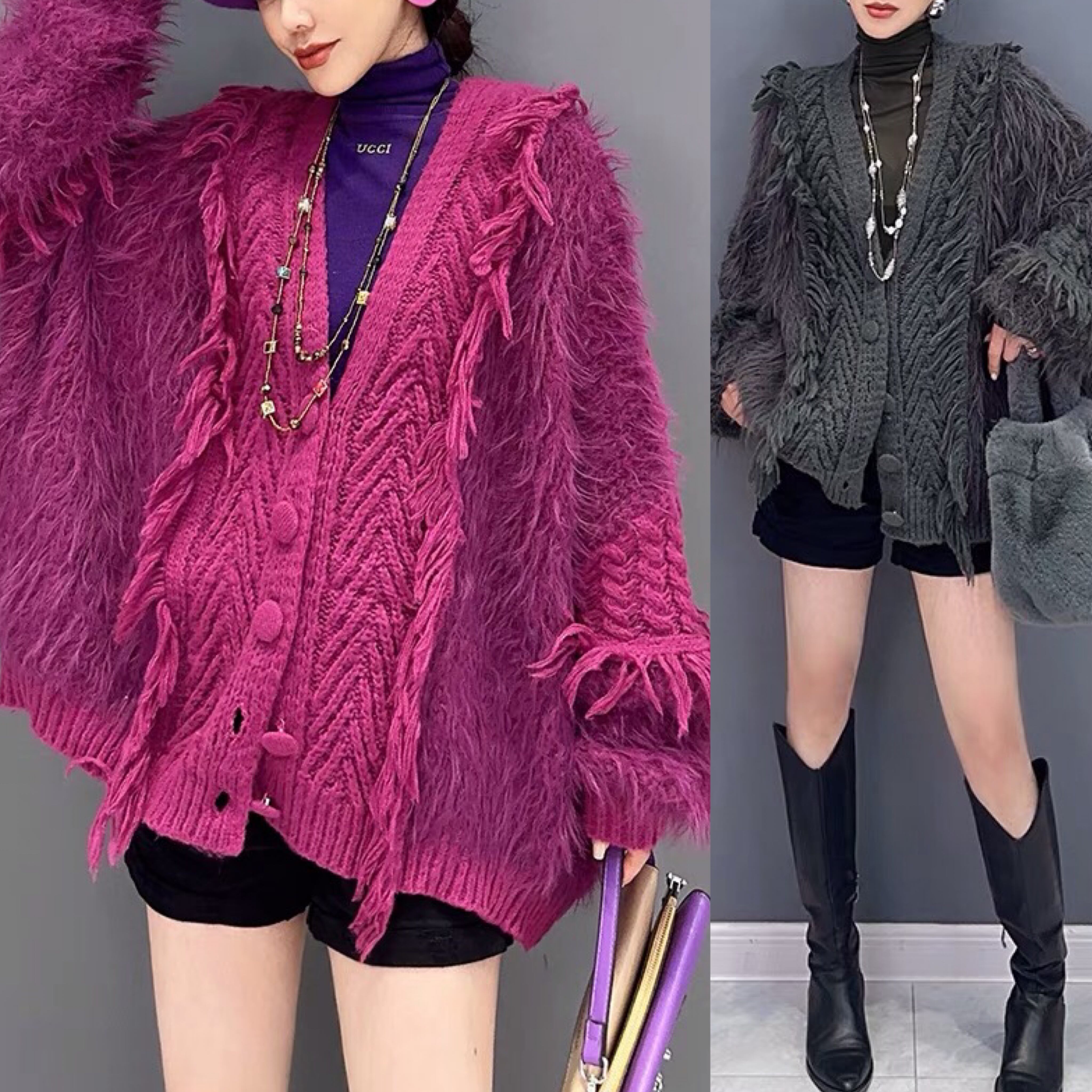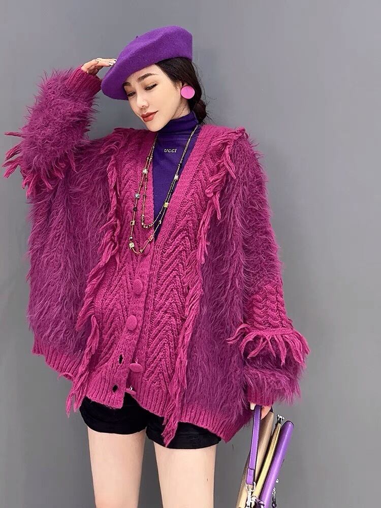 カーディガン 紫 グレー ファー ワンピース オフショルダー ピンク 白 ボーダー チェック ワンピース セーター ニット カーディガン オーバーサイズ ゆったり XL シャツ トップス カジュアル ブラウス スカート ビッグシルエット アウター