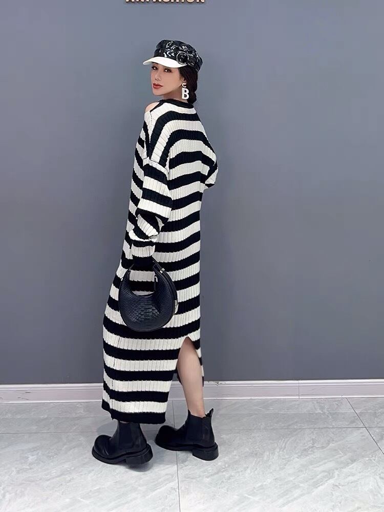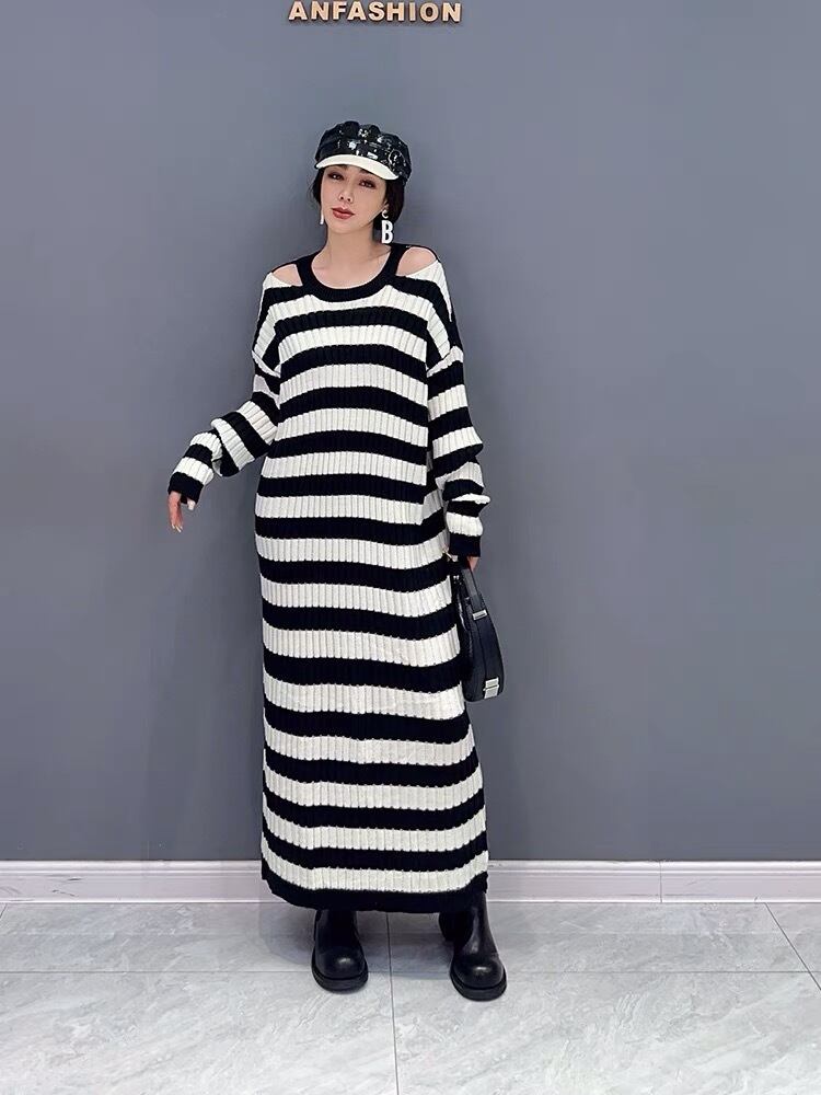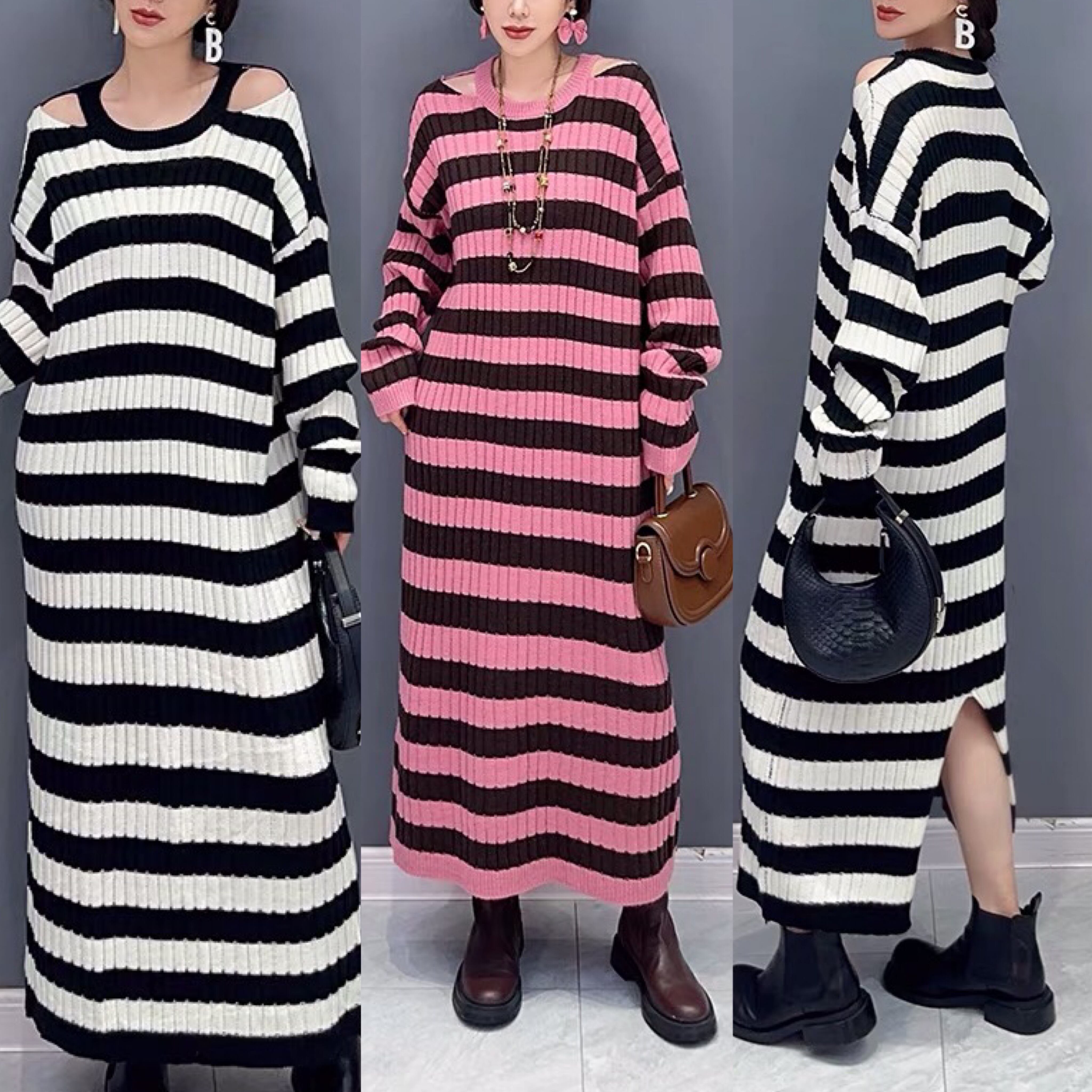 ワンピース オフショルダー ピンク 白 ボーダー チェック ワンピース セーター ニット カーディガン オーバーサイズ ゆったり XL シャツ トップス カジュアル ブラウス スカート ビッグシルエット