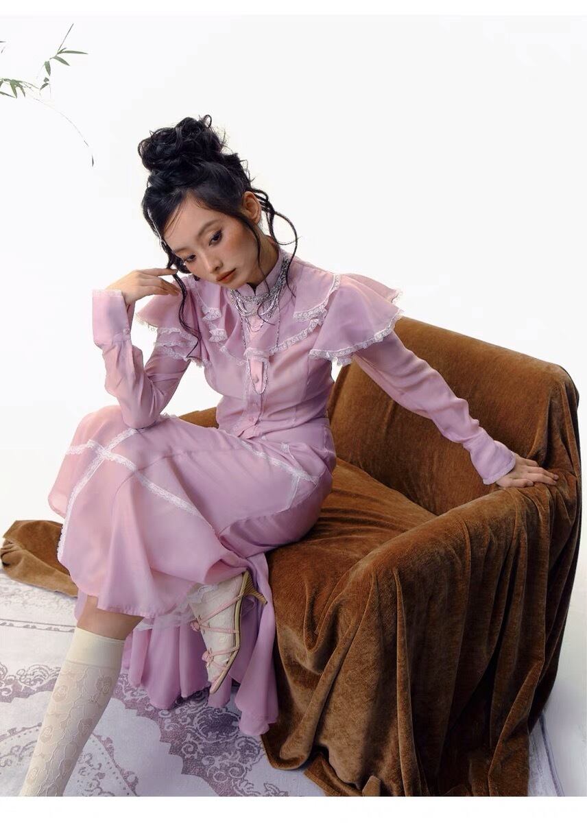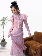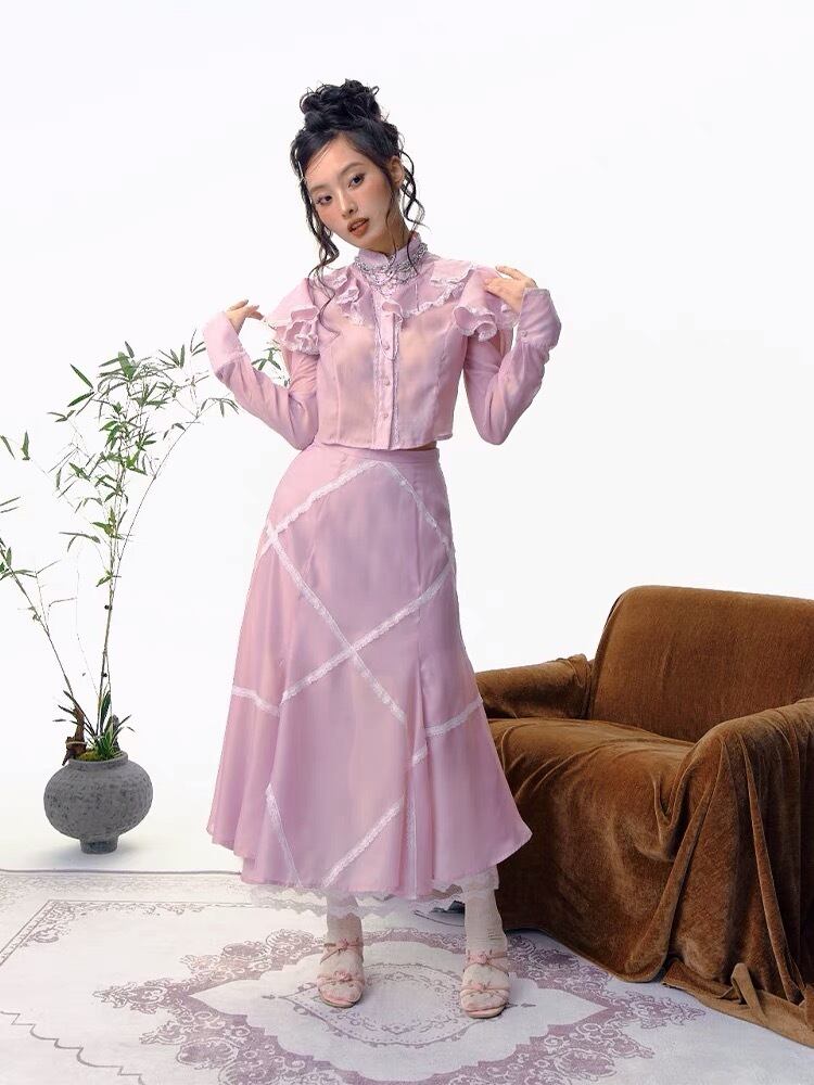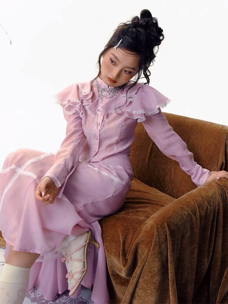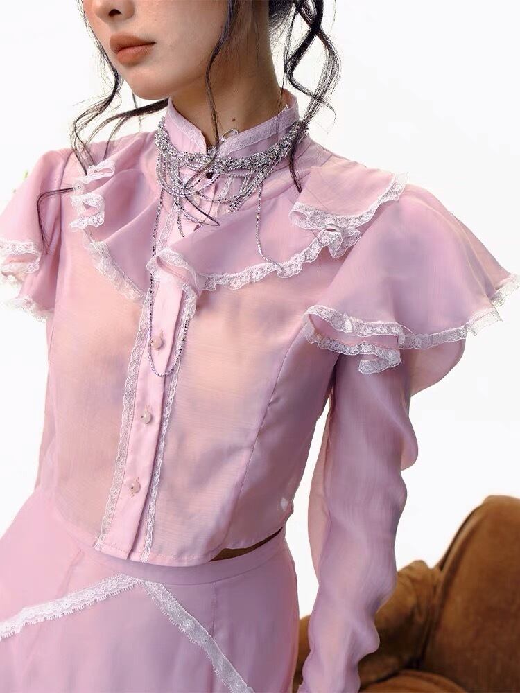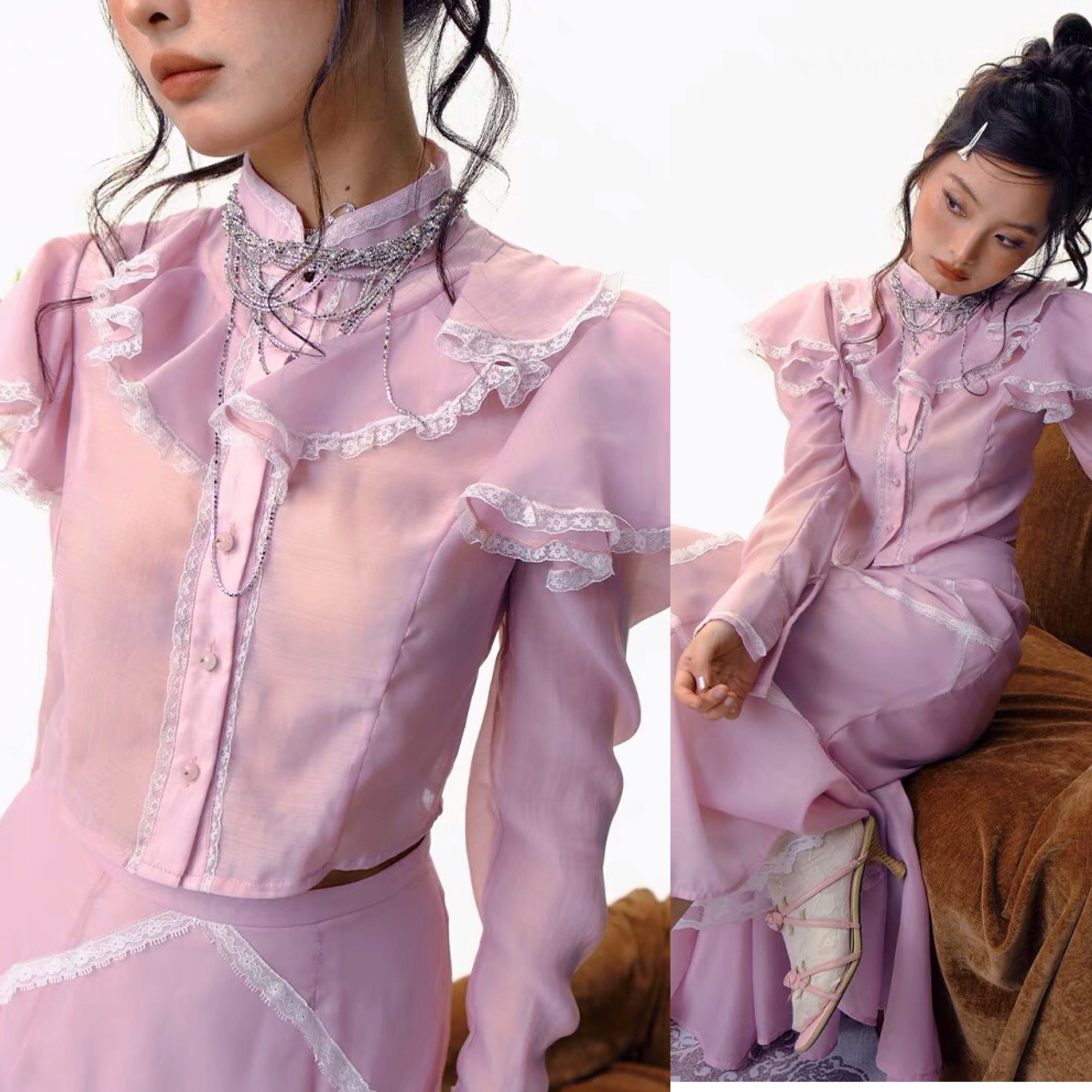 【ブラウス】紫 ピンク フリル シャツ ガーリー トップス