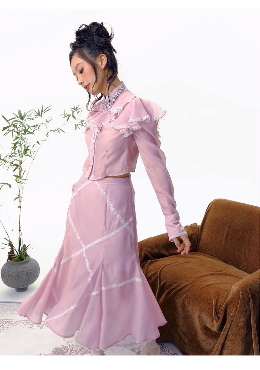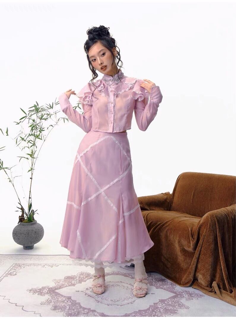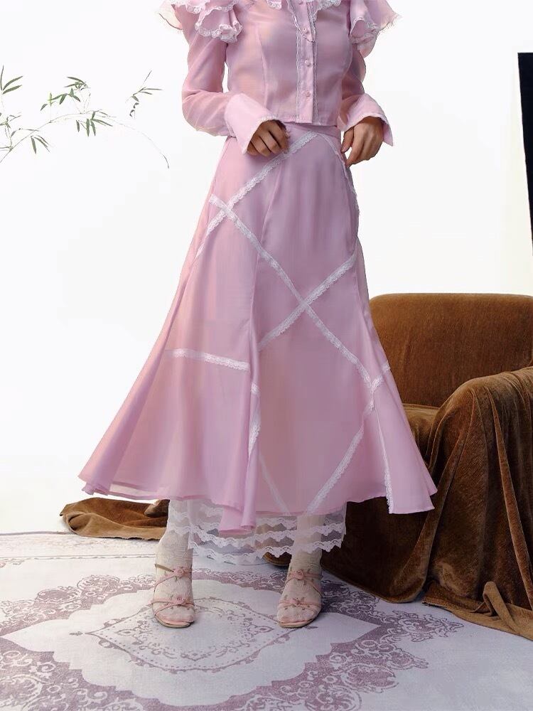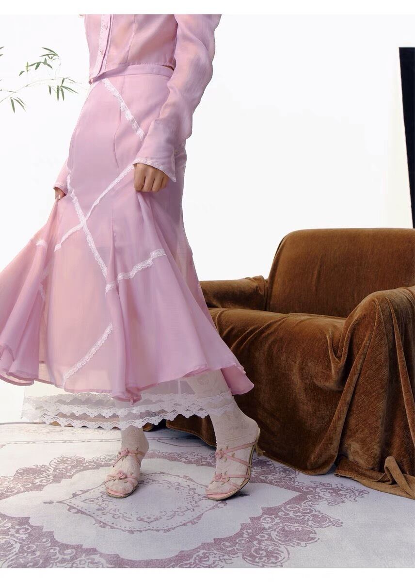 【スカート】ボトムス 紫 ピンク ガーリー レース 可愛い タイト マーメイド