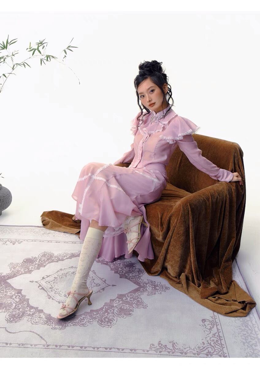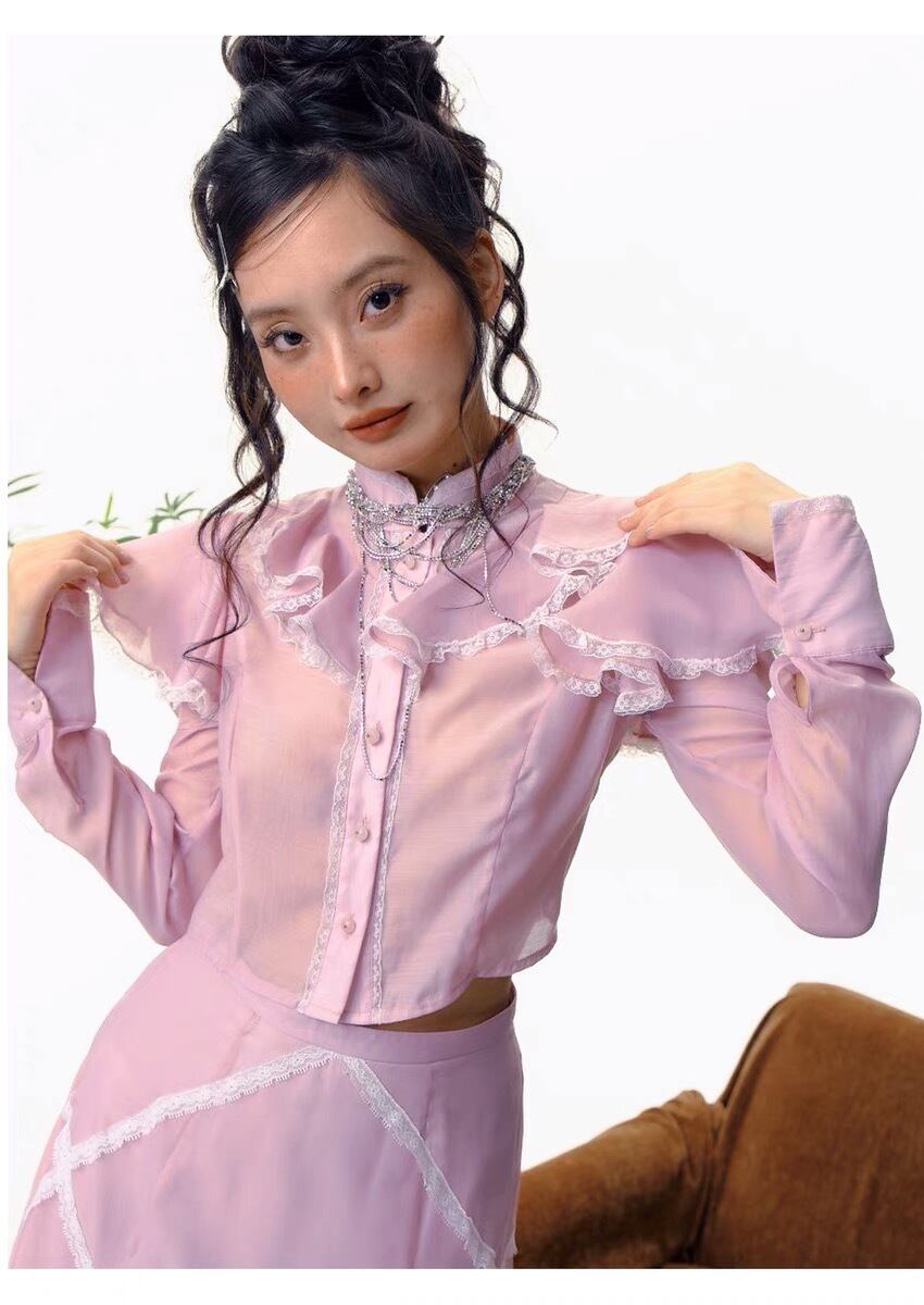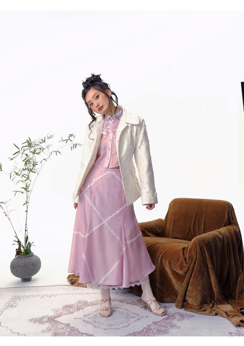【スカート】ボトムス 紫 ピンク ガーリー レース 可愛い タイト マーメイド