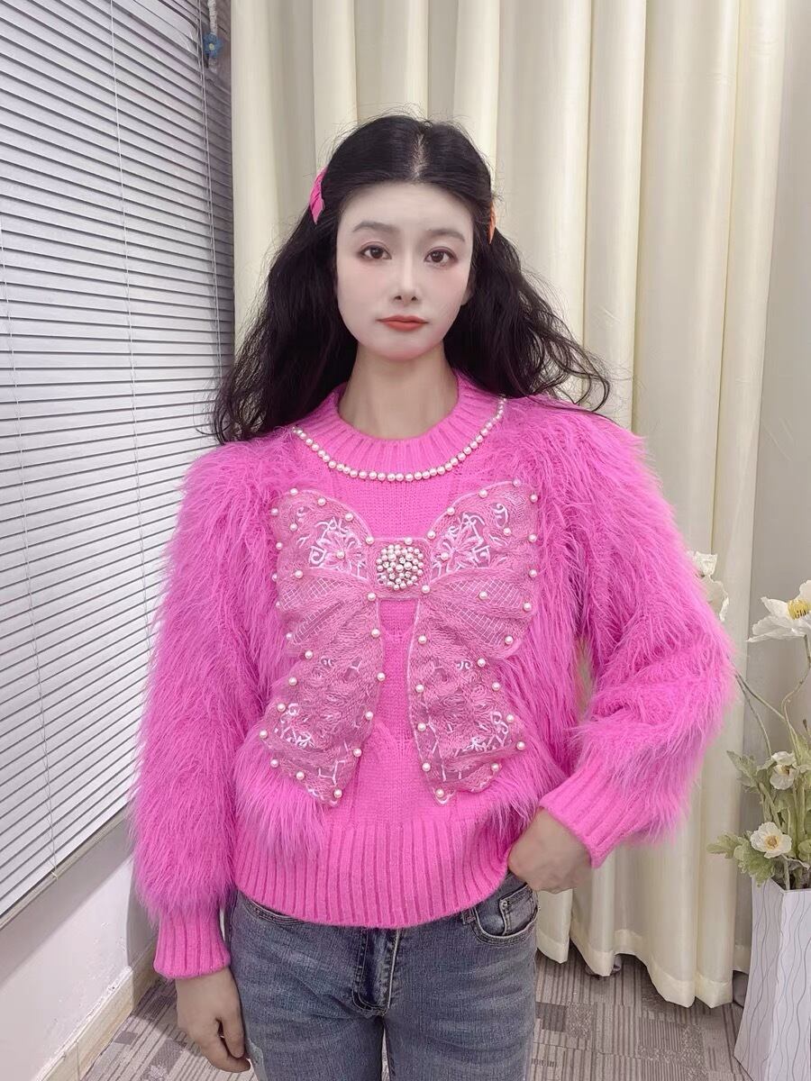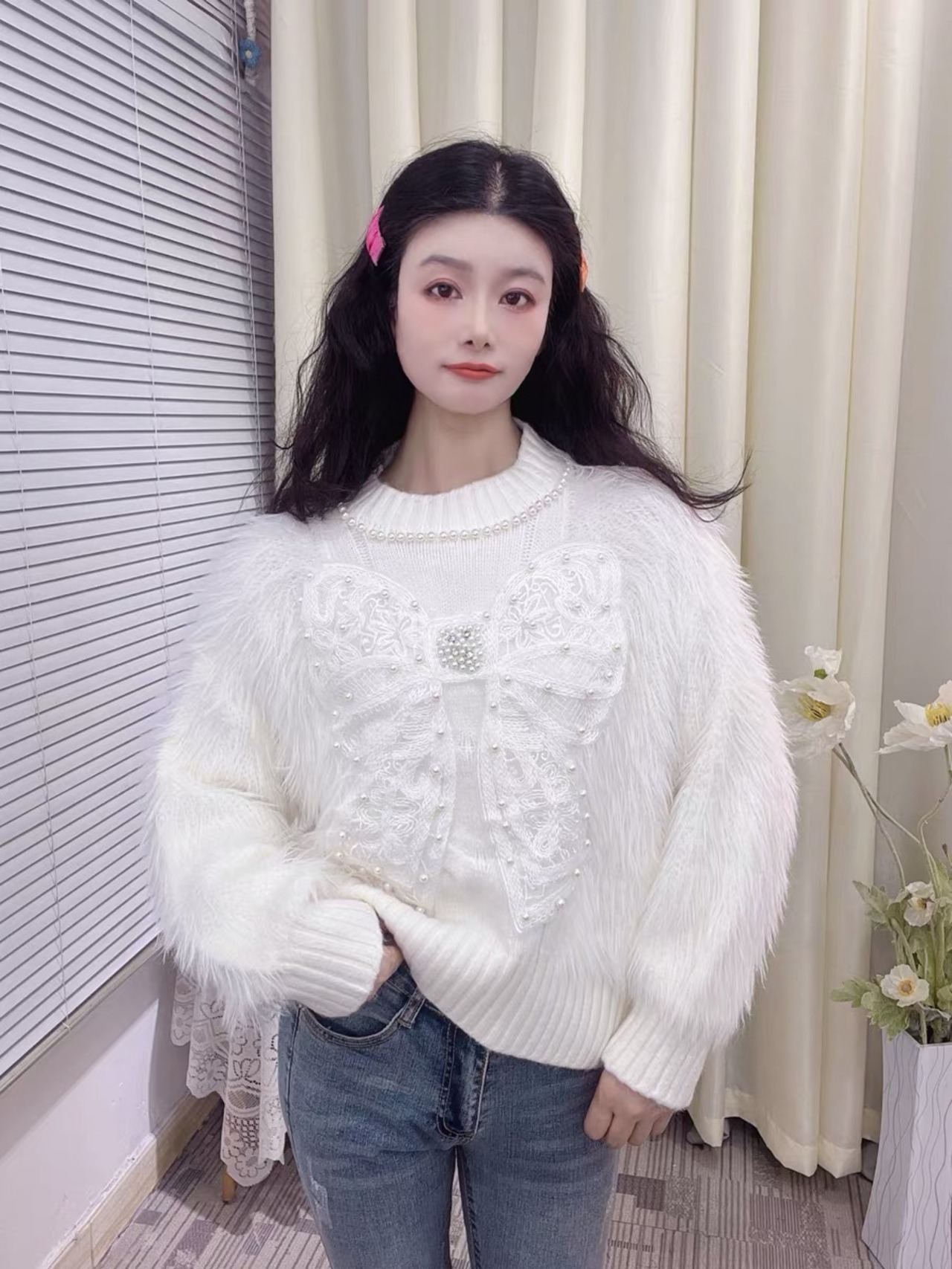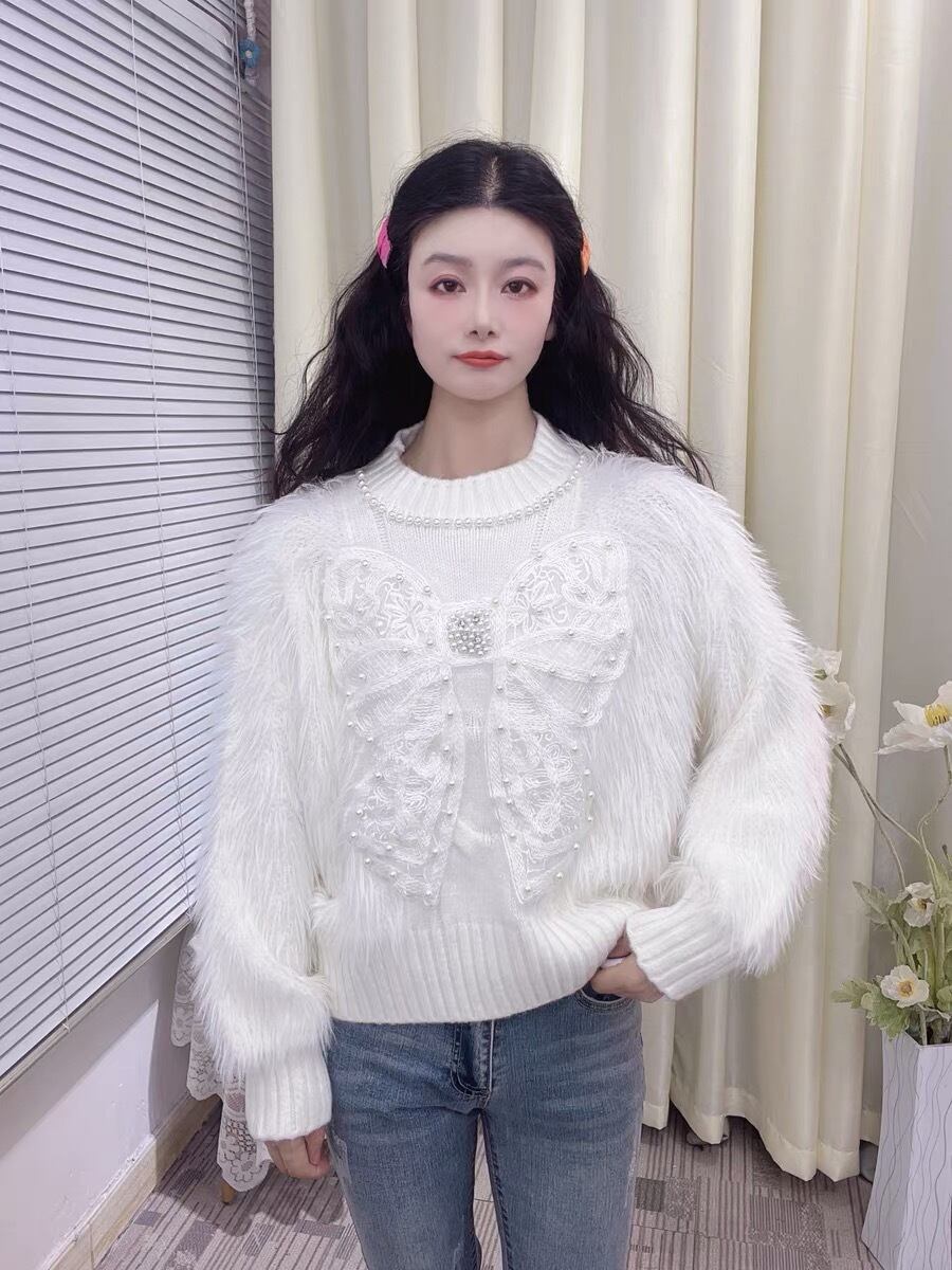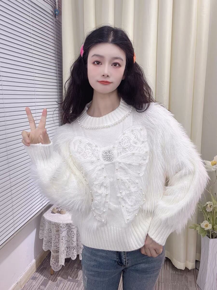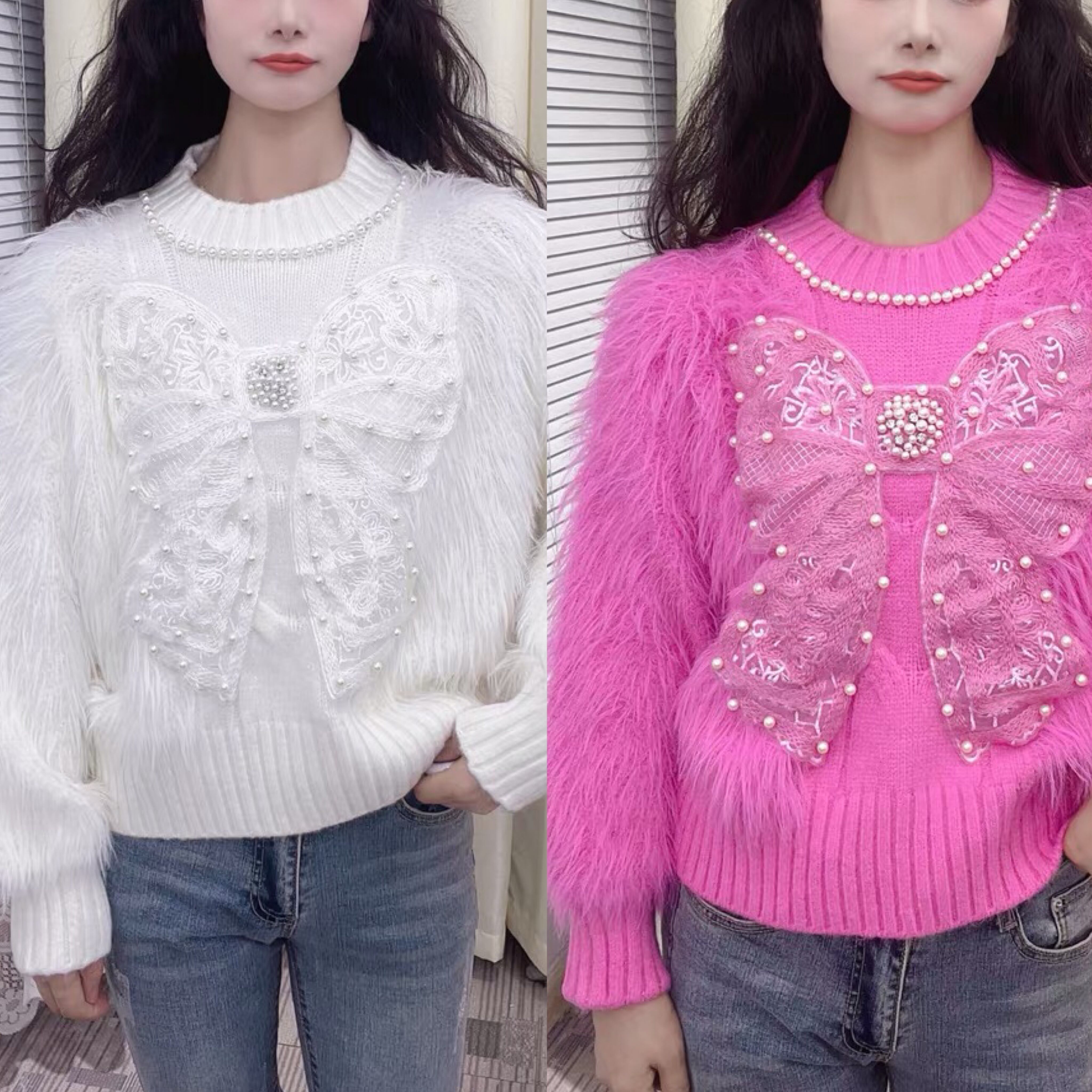 リボン 白 ピンク ファー モヘア トップス パール セーター カーディガン ニット ガーリー 可愛い 姫