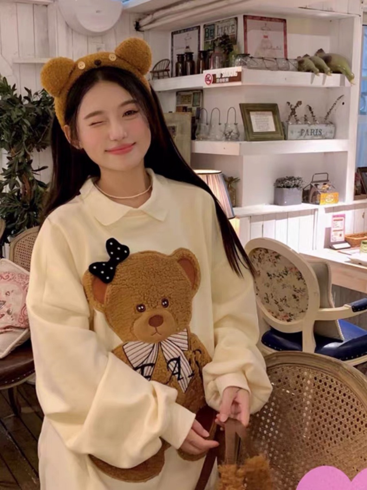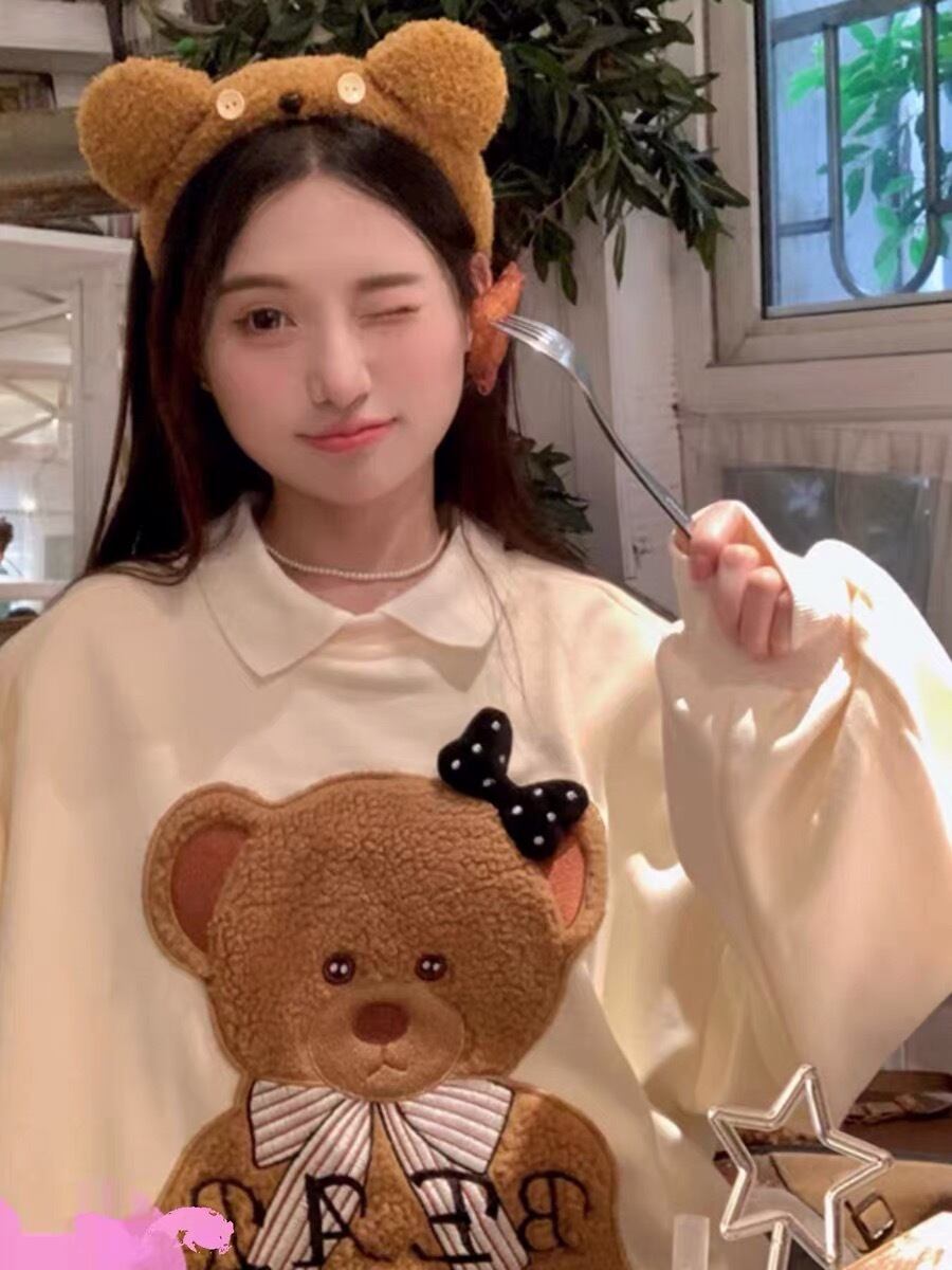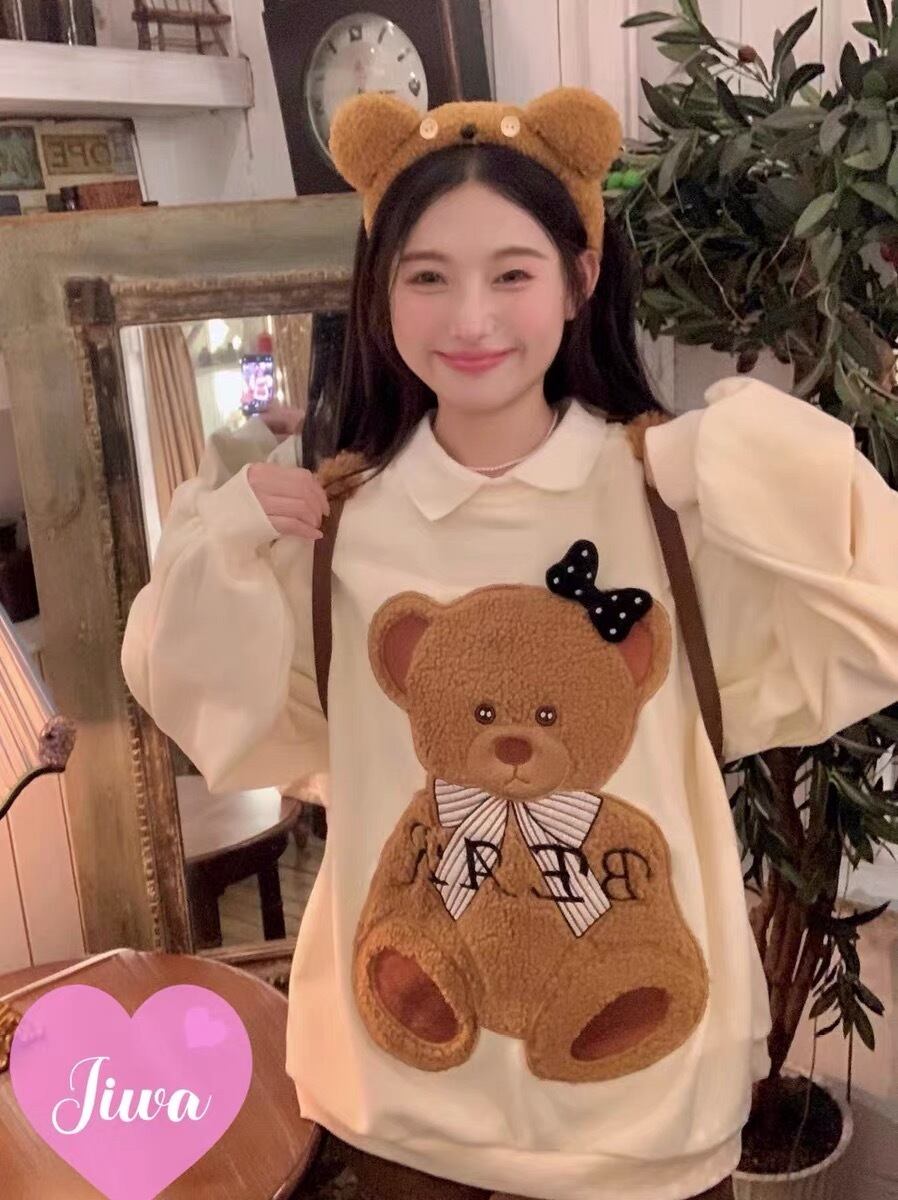 トレーナー くまさん ベア アニマル スウェット パーカー ガーリー 黄色