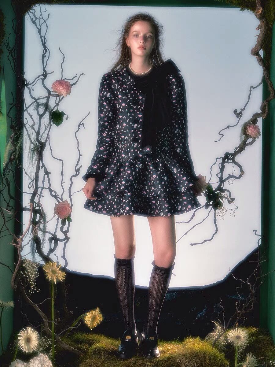 ワンピース 花柄 フラワー ベルベット リボン お嬢様