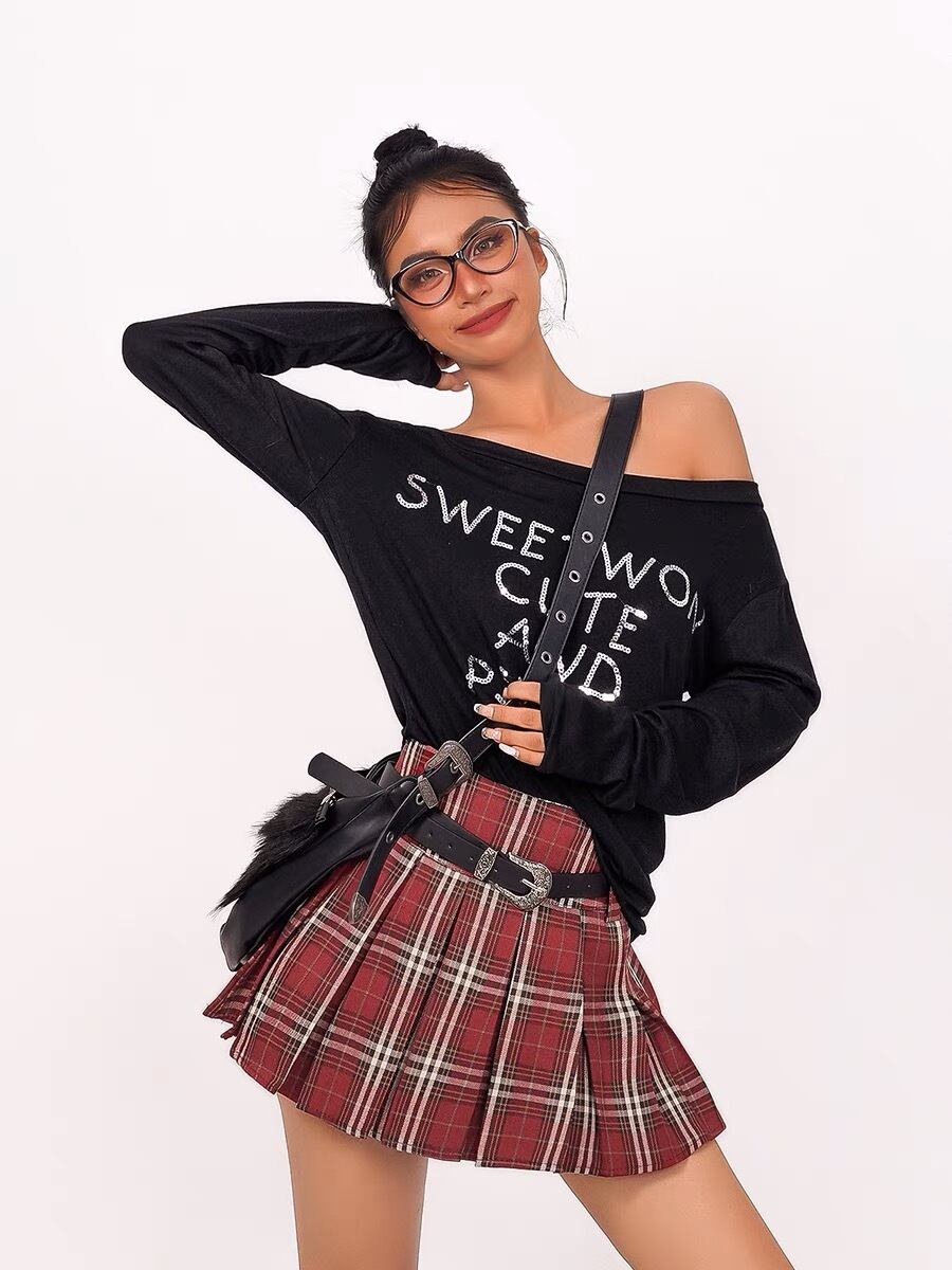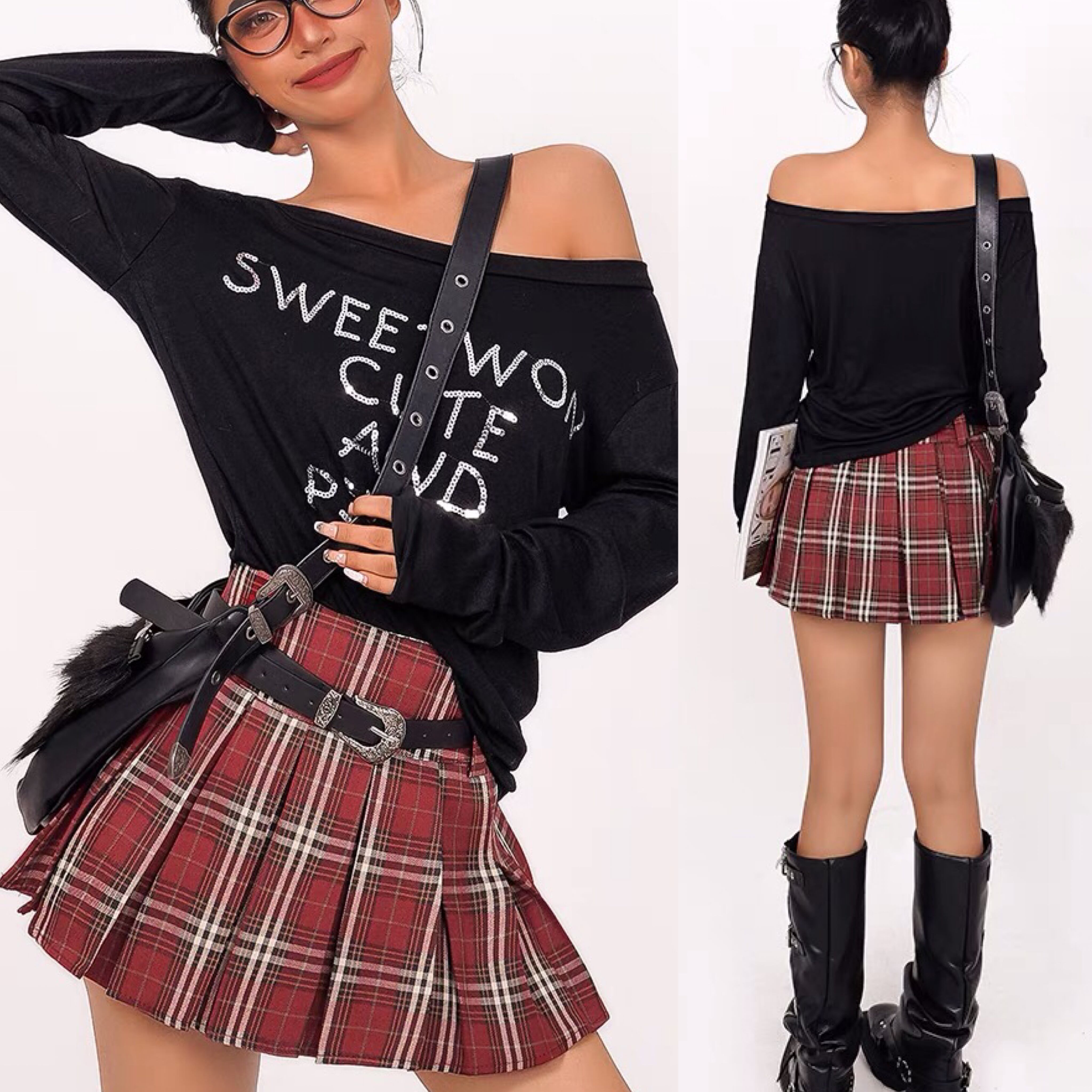 オフショルダー トップス 黒 キラキラ Tシャツ セーター