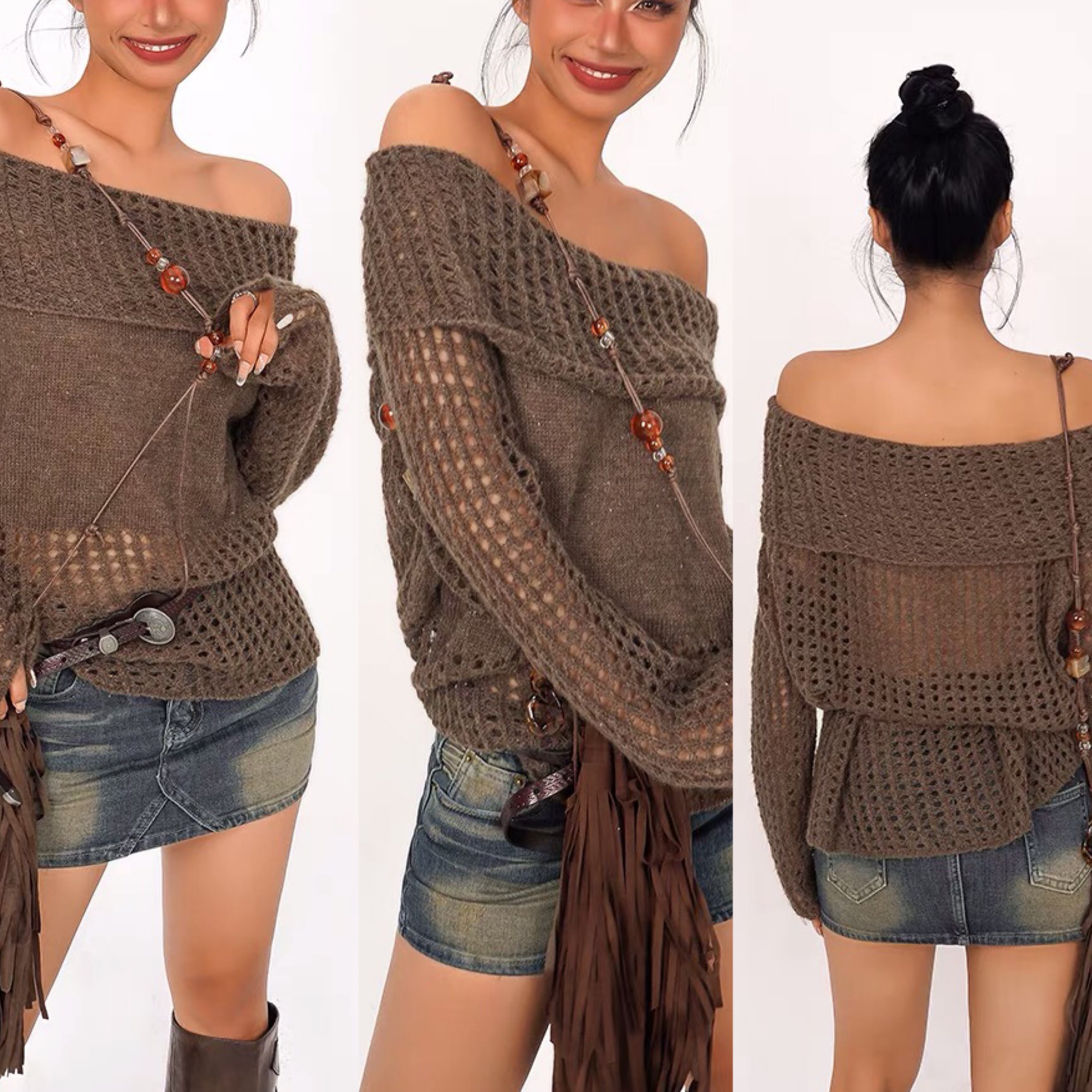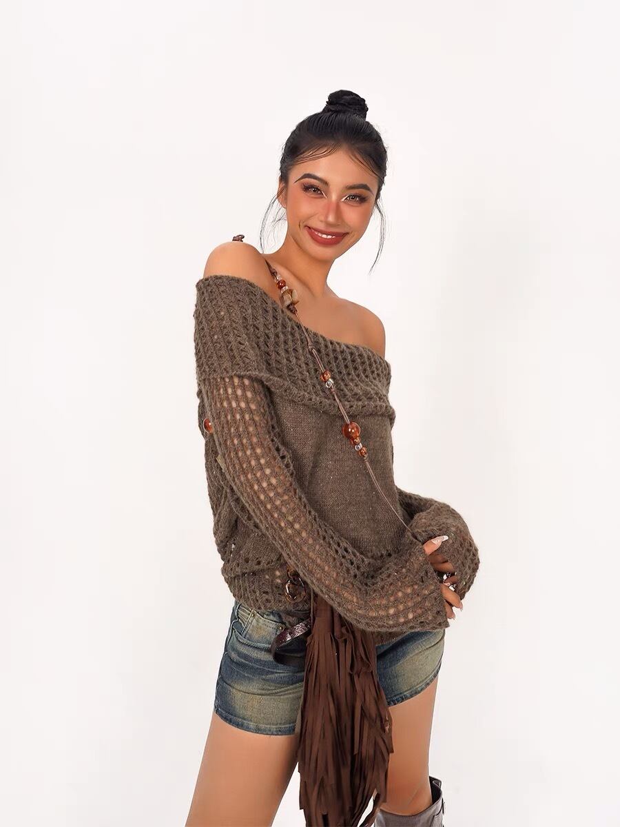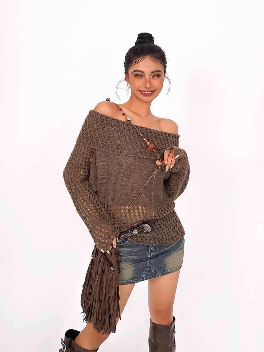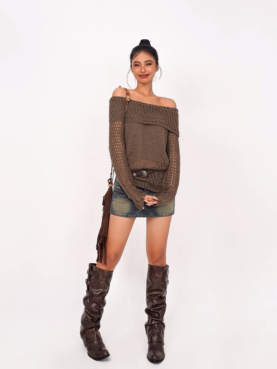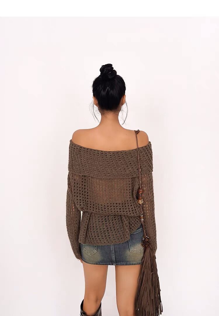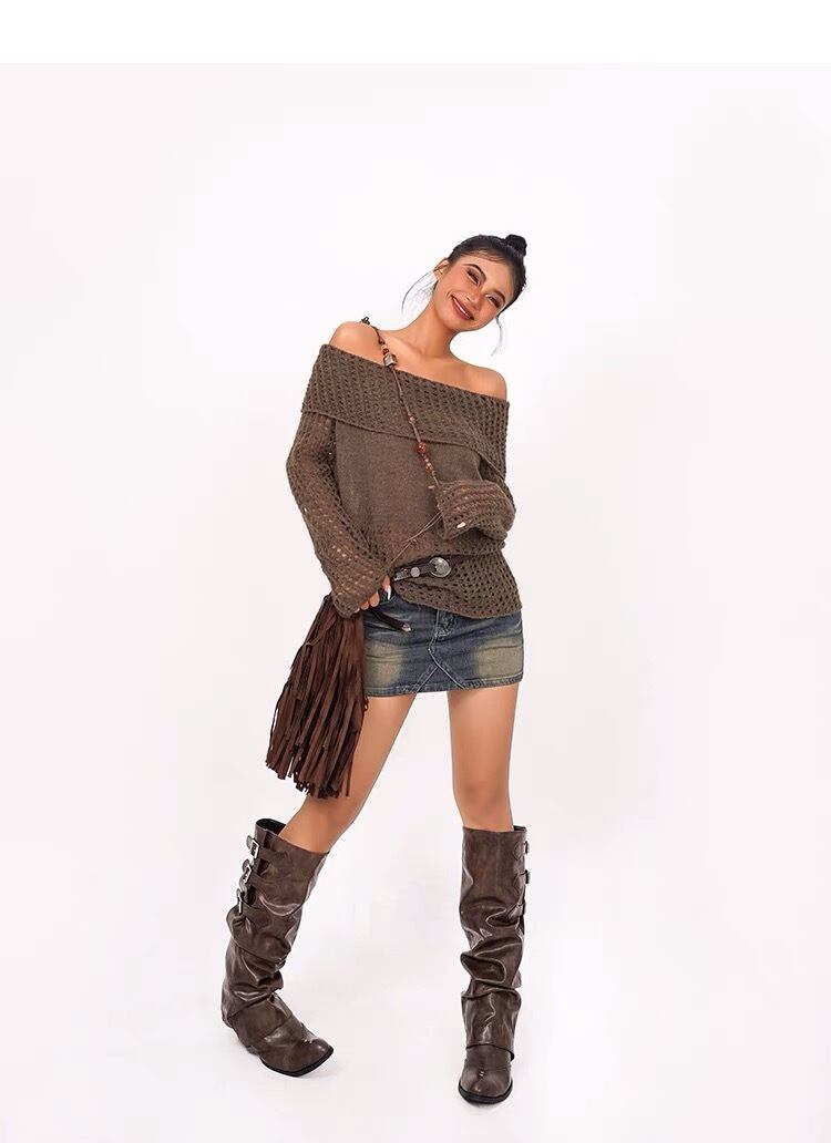 あみあみ ニット セーター ダメージ カーキ 緑 グリーン