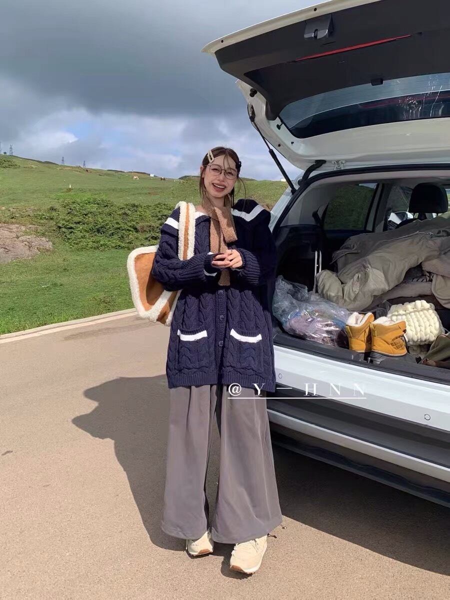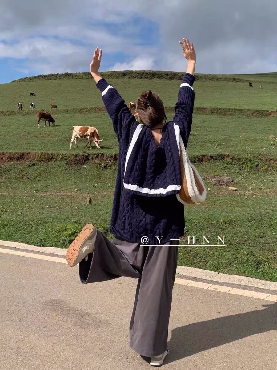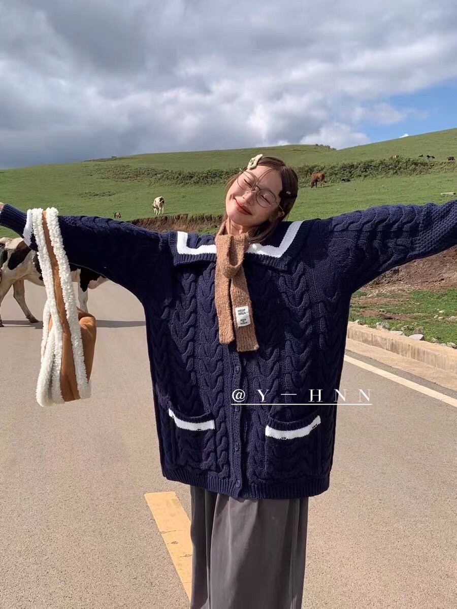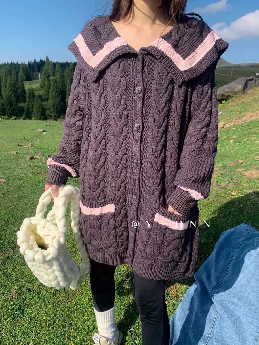 カーディガン ゆったり オーバーサイズ ビッグシルエット ピンク グレー ニット セーター