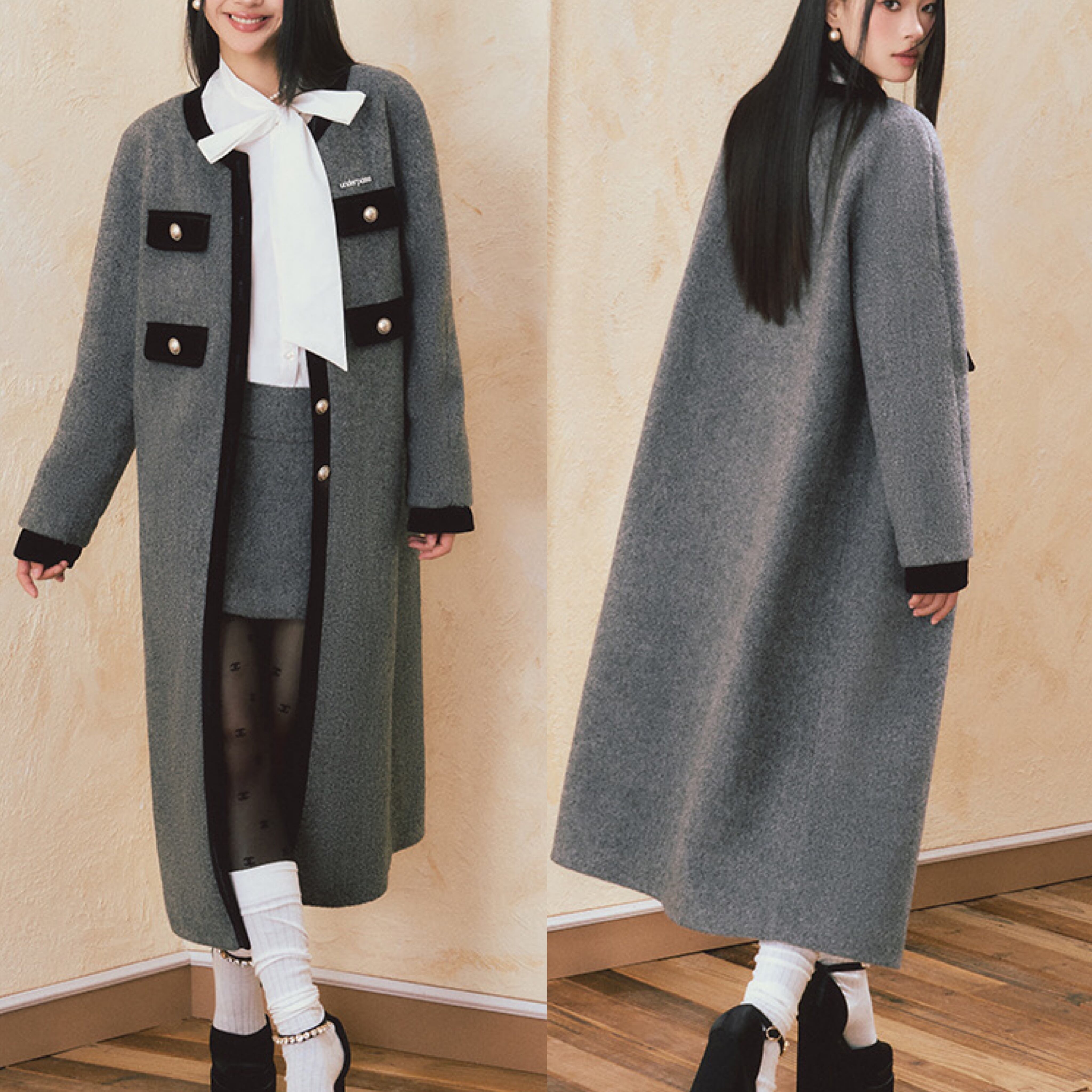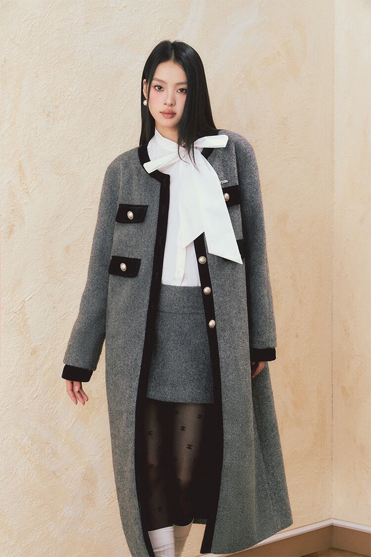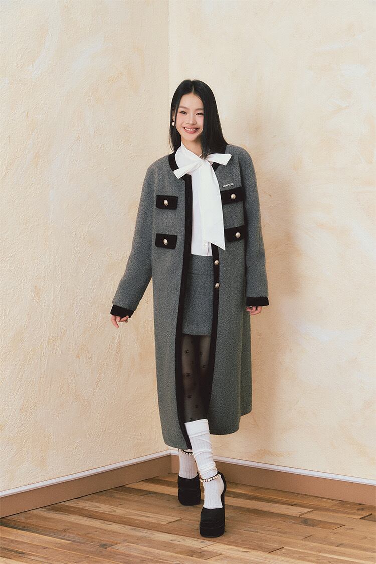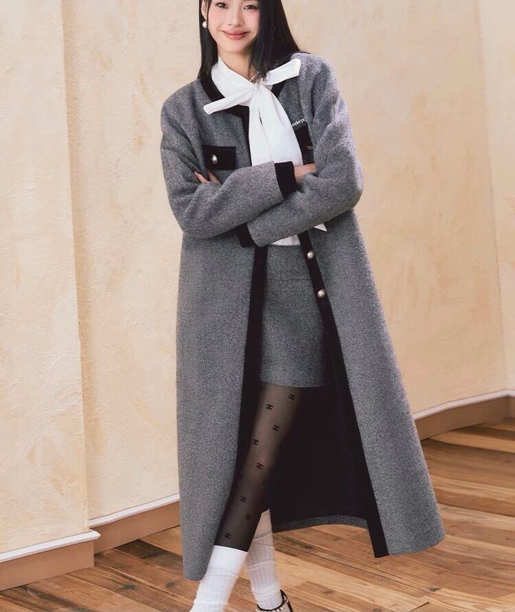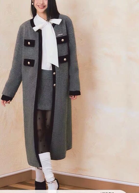 【コート】エレガント ワンピース アウター ジャケット グレー お嬢様 マキシ ロング カーディガン