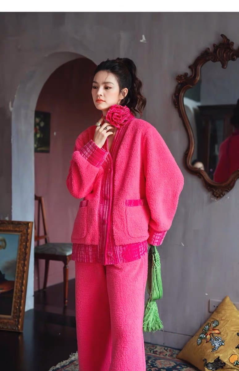 パジャマ セットアップ ピンク カジュアル 【セットアップ】パーカー ルームウェア レオパード フリース フード 寝巻き パジャマ ルームウェア コート アウター カーディガン かわいい ラクチン ゆったり 暖かい ヒョウ柄 ピンク フード パンツ 派手 ルームウェア ゴージャス 海外 マダム アウター