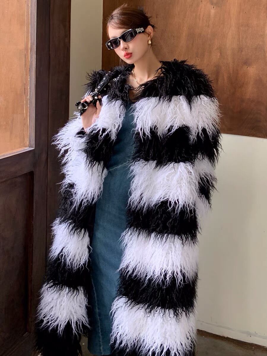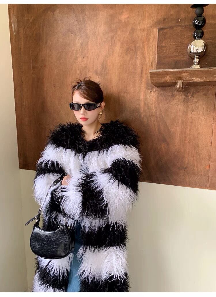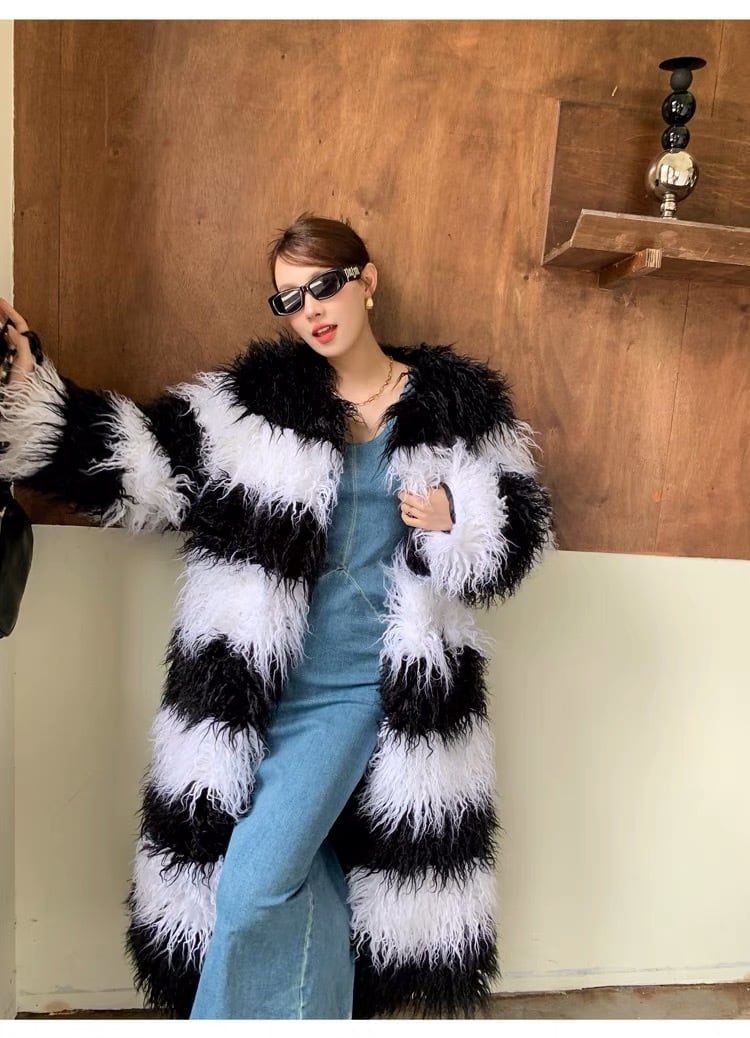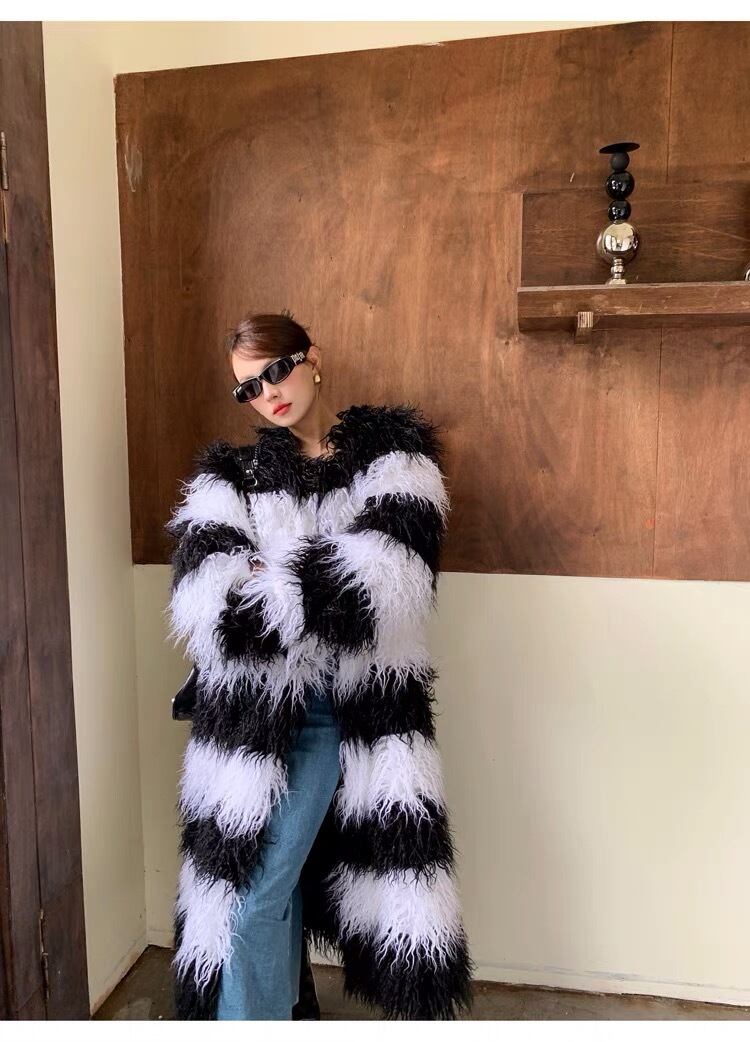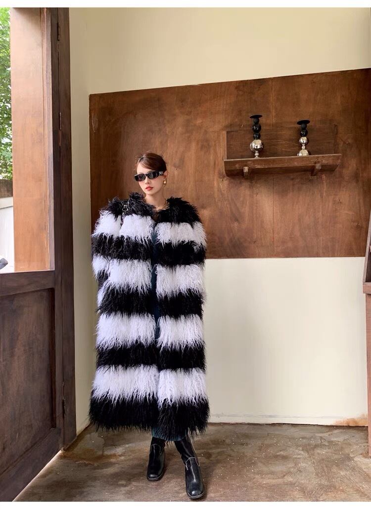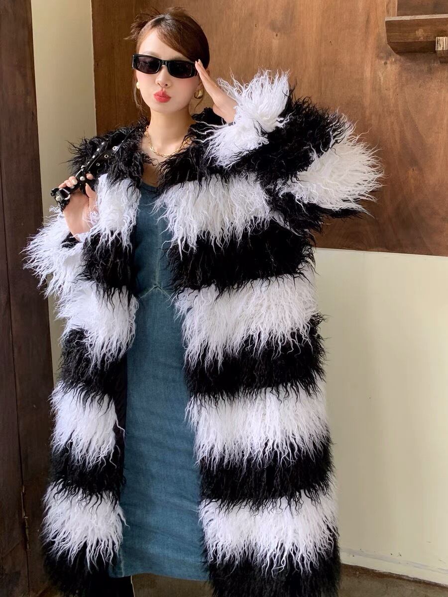 ボーダー 白 黒 ファー コート ゴージャス アウター ジャケット ブルゾン カーディガン コート ロング ゴージャス ガーリー エレガント お嬢様 パーティー セレブ フード パーカー ギャル 銀座 原宿 渋谷 表参道