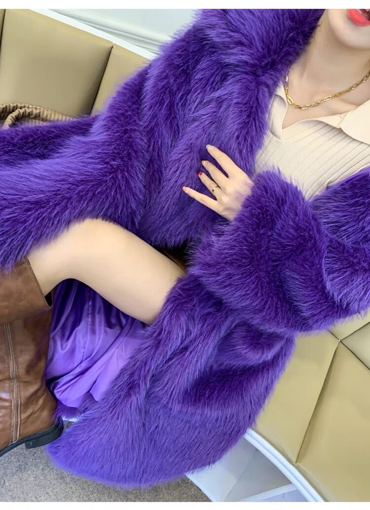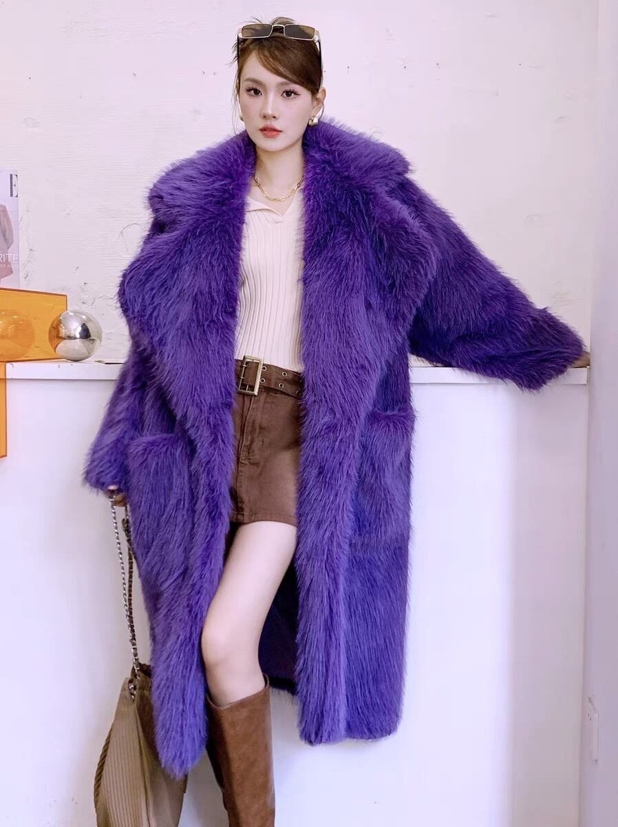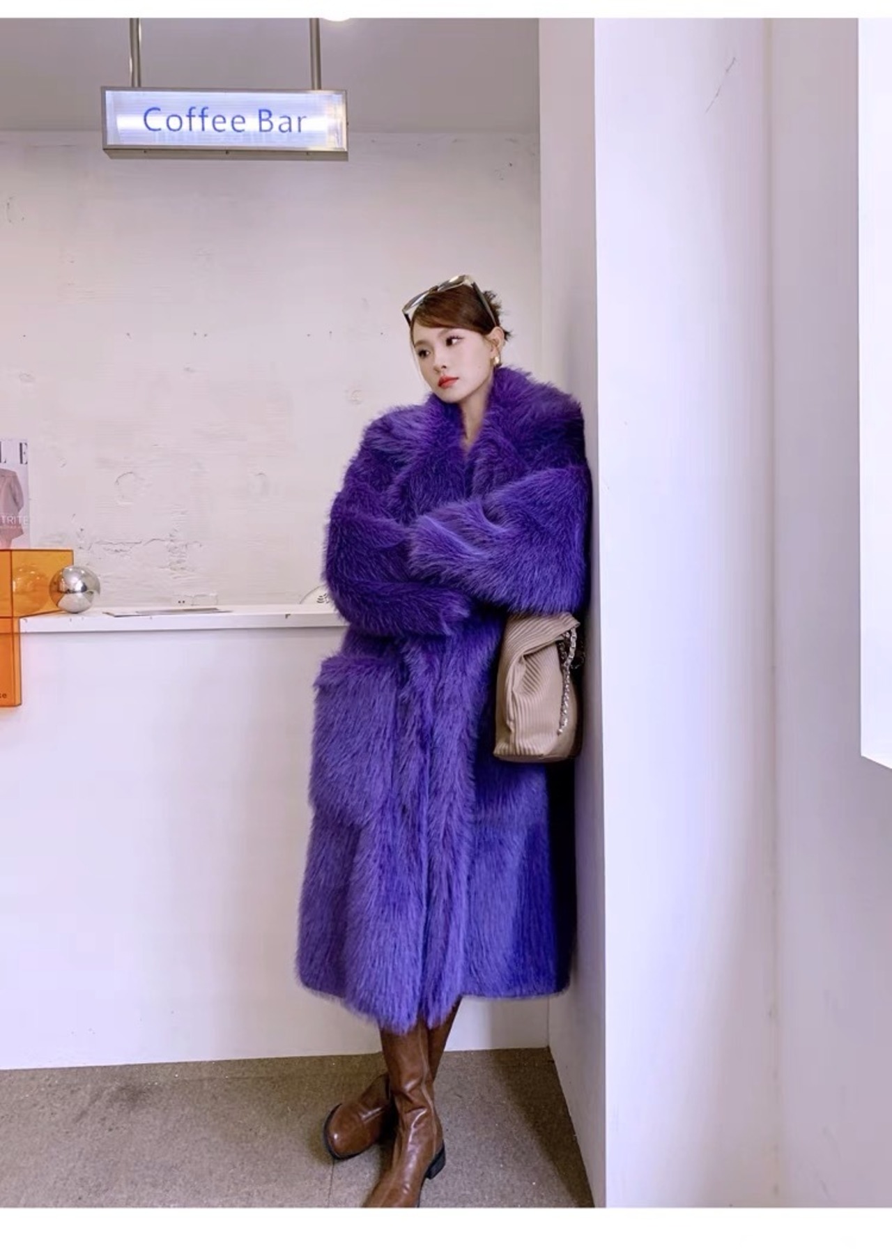 紫 パープル ポケット ファー コート ゴージャス アウター ジャケット ブルゾン カーディガン コート ロング ゴージャス ガーリー エレガント お嬢様 パーティー セレブ フード パーカー ギャル 銀座 原宿 渋谷 表参道