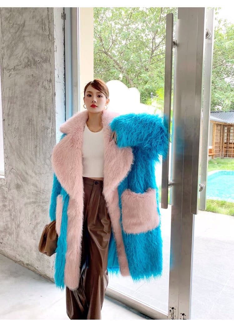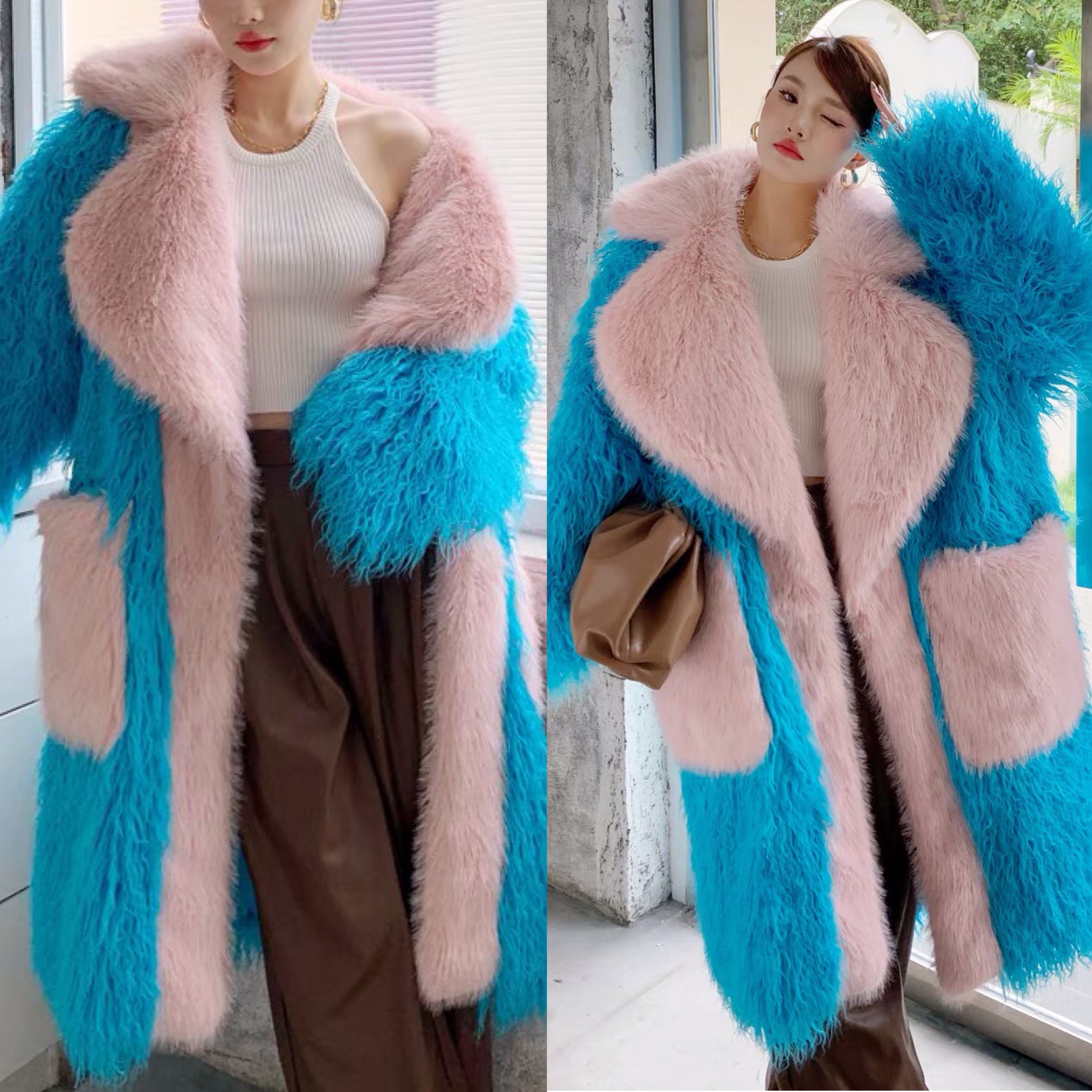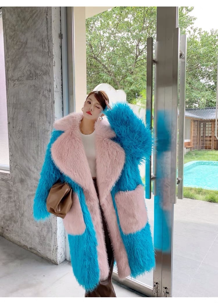 水色 ピンク ポケット ファー コート ゴージャス アウター ジャケット ブルゾン カーディガン コート ロング ゴージャス ガーリー エレガント お嬢様 パーティー セレブ フード パーカー ギャル 銀座 原宿 渋谷 表参道