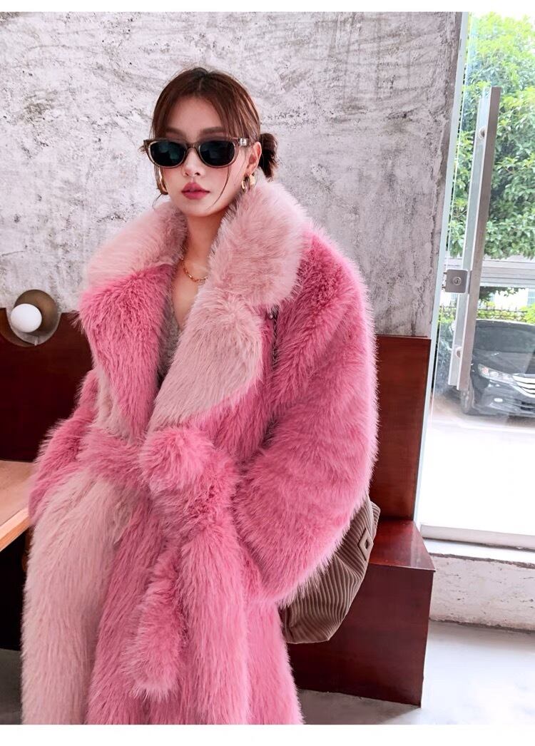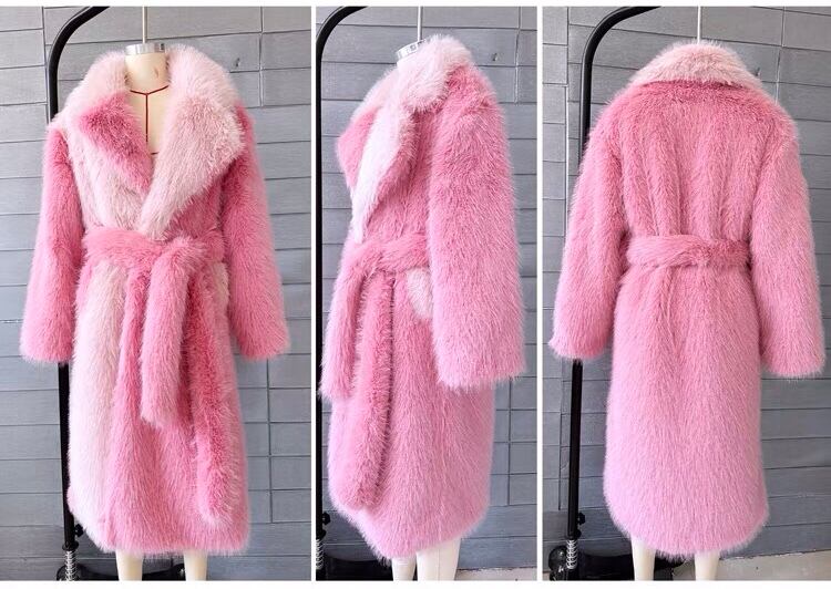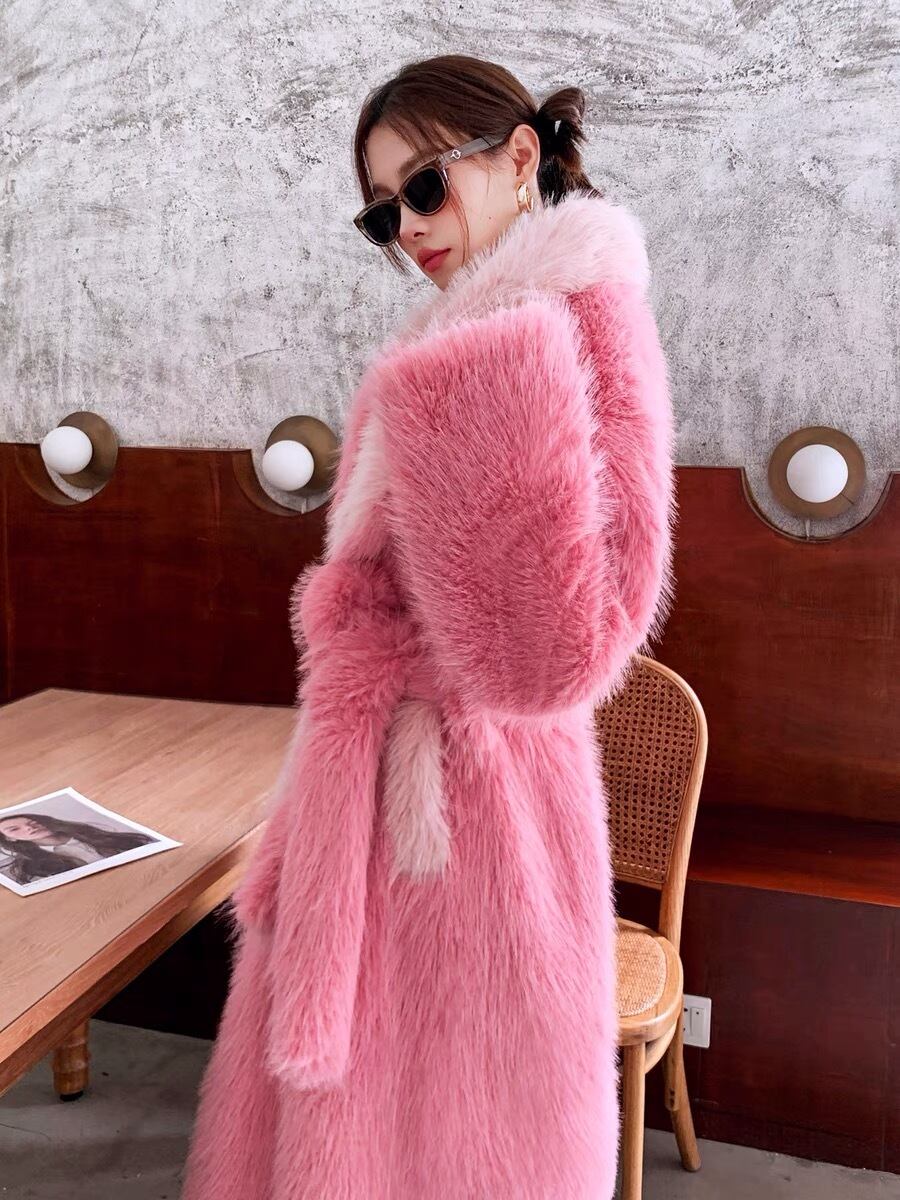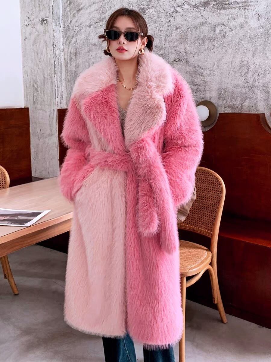 ピンク ベルト バイカラー ファー コート ゴージャス アウター ジャケット ブルゾン カーディガン コート ロング ゴージャス ガーリー エレガント お嬢様 パーティー セレブ フード パーカー ギャル 銀座 原宿 渋谷 表参道