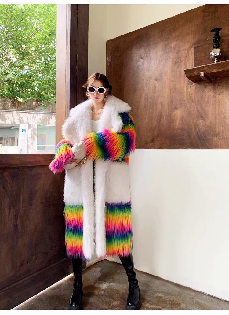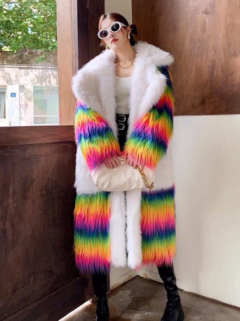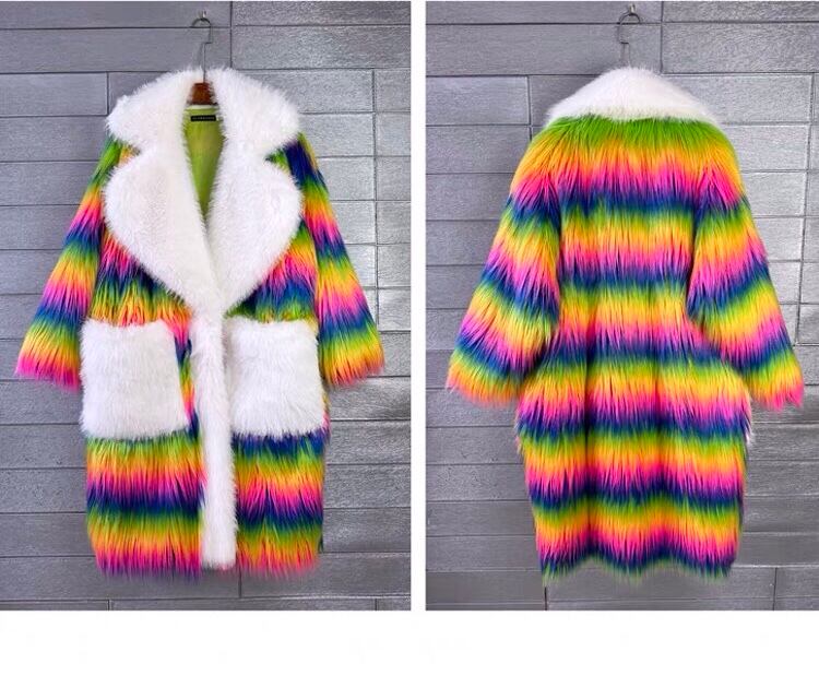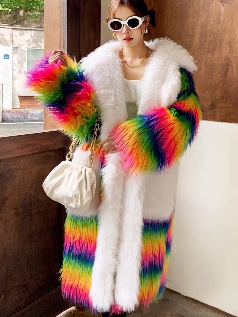 カラフル ボーダー ポケット 白 黄色 緑 ネオン ファー コート ゴージャス アウター ジャケット ブルゾン カーディガン コート ロング ゴージャス ガーリー エレガント お嬢様 パーティー セレブ フード パーカー ギャル 銀座 原宿 渋谷 表参道蛍光