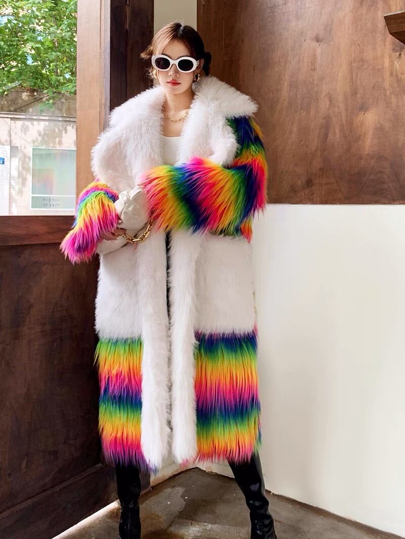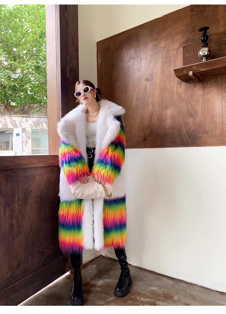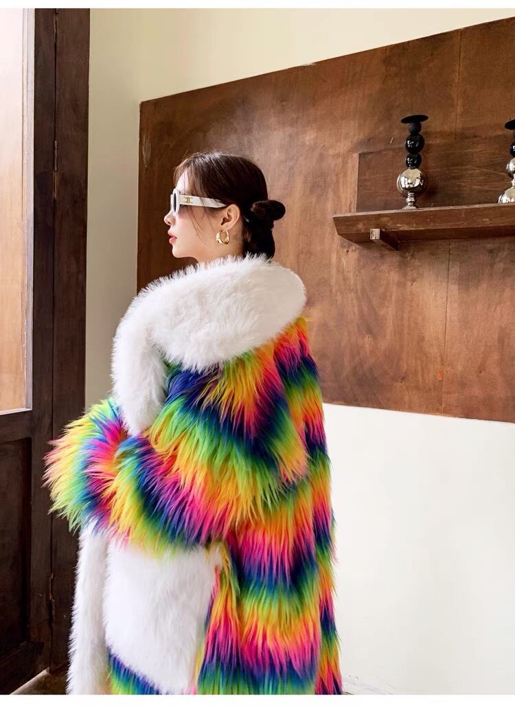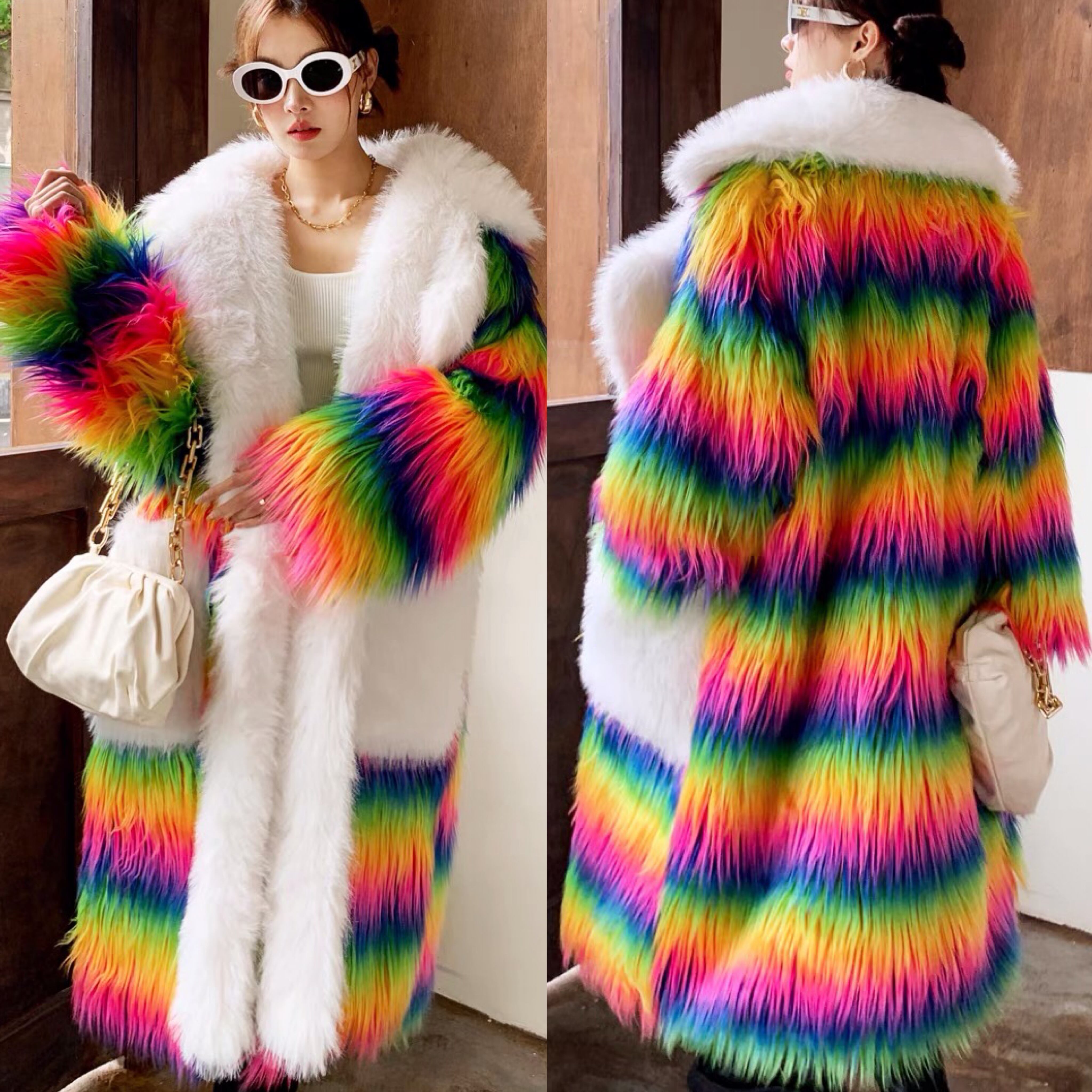 カラフル ボーダー ポケット 白 黄色 緑 ネオン ファー コート ゴージャス アウター ジャケット ブルゾン カーディガン コート ロング ゴージャス ガーリー エレガント お嬢様 パーティー セレブ フード パーカー ギャル 銀座 原宿 渋谷 表参道蛍光