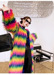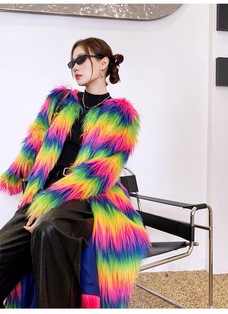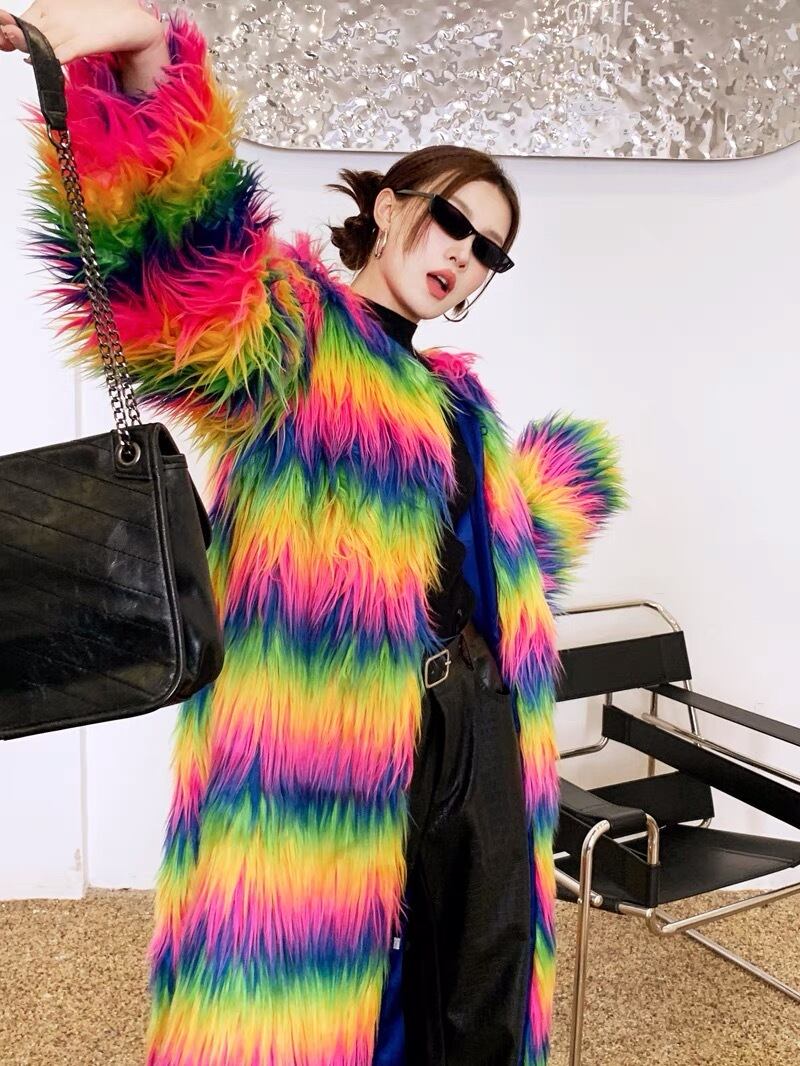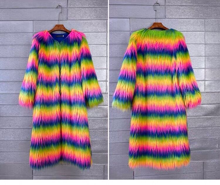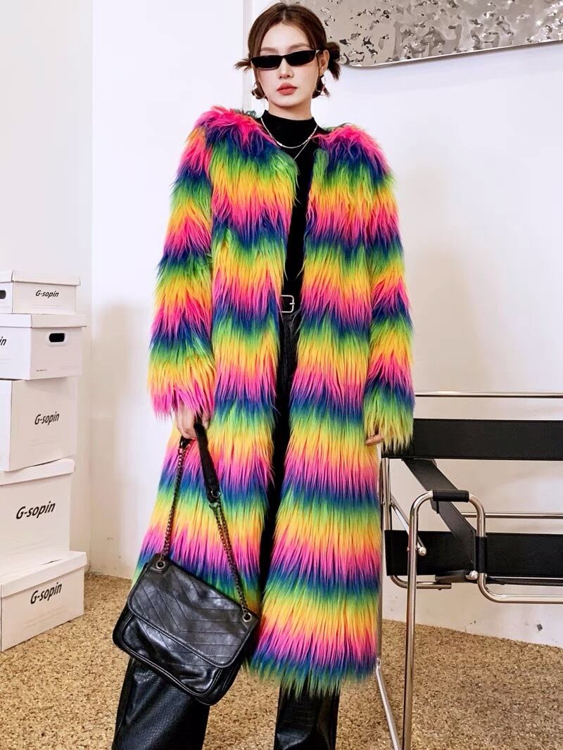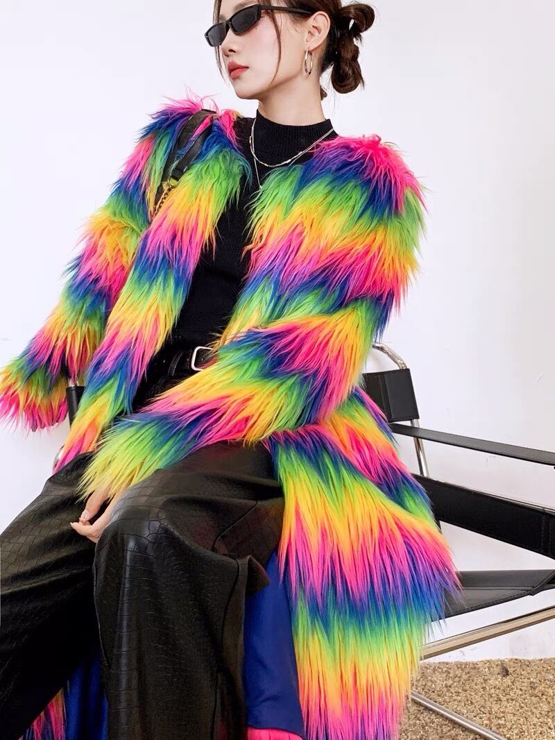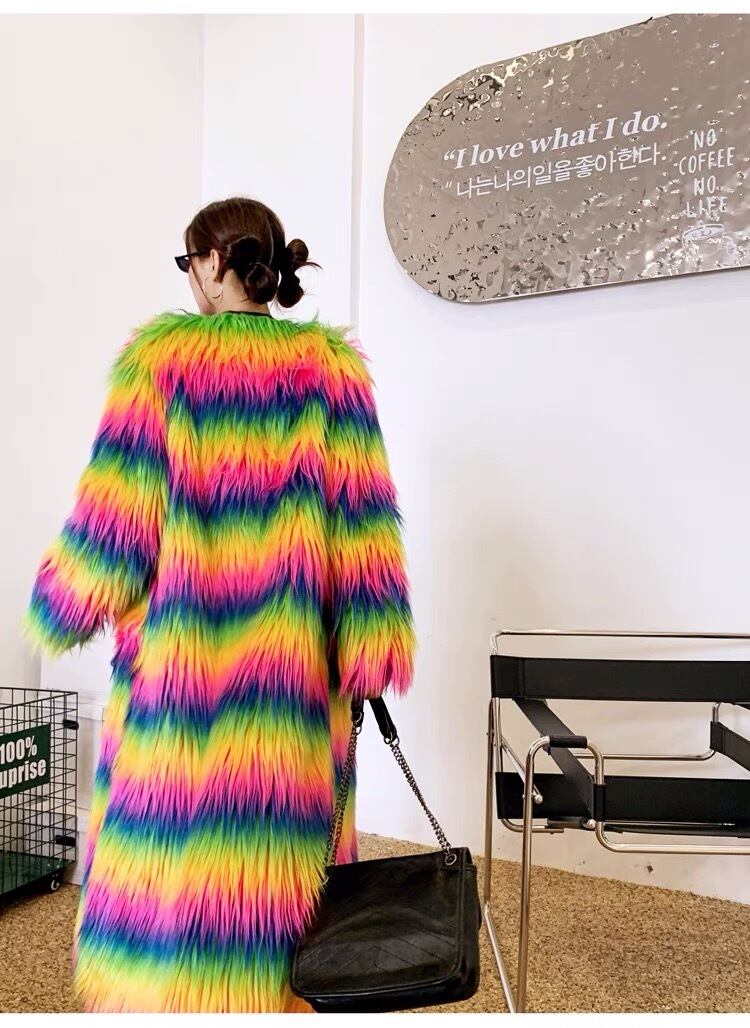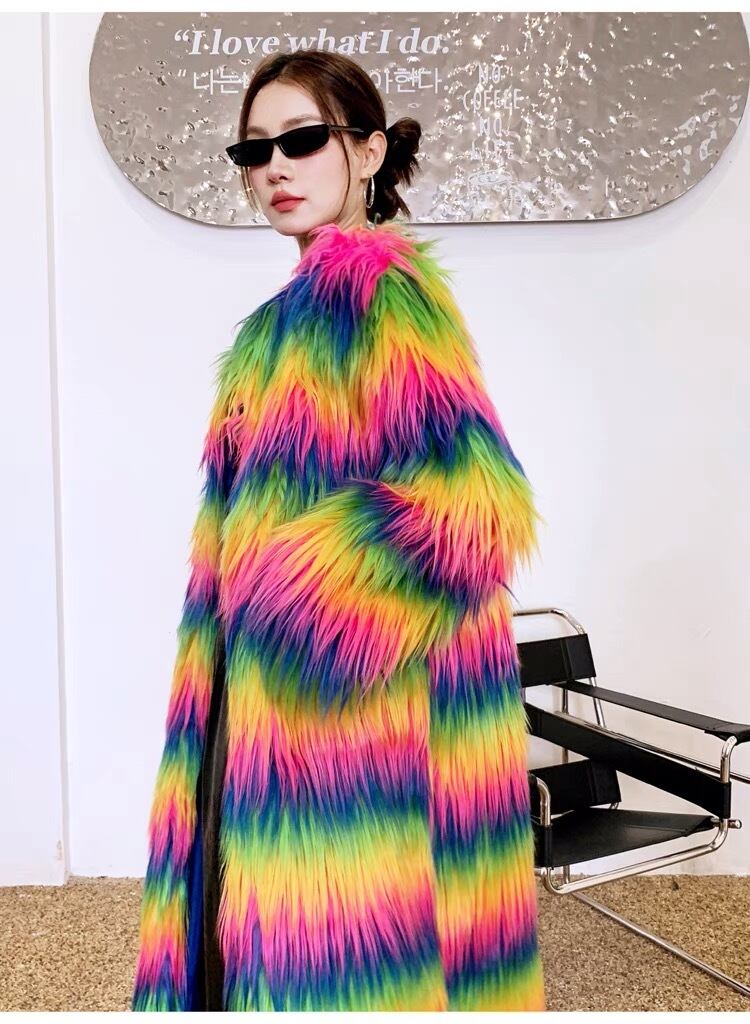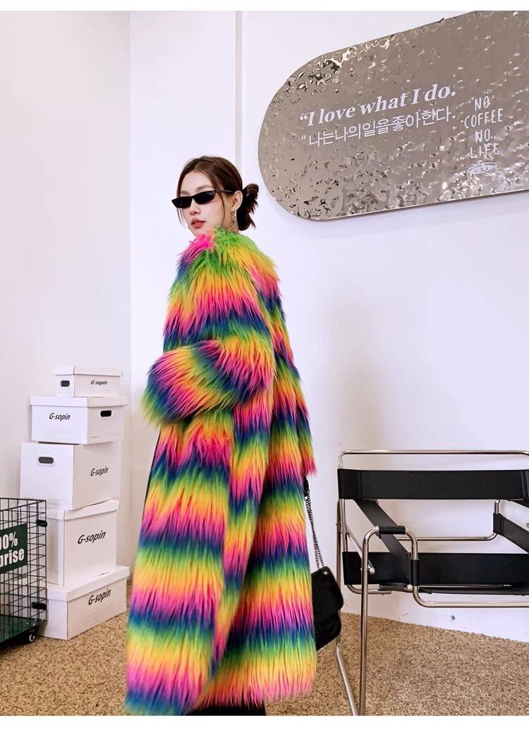 カラフル ネオン ボーダー 蛍光 ピンク 黄色 ファー コート ゴージャス アウター ジャケット ブルゾン カーディガン コート ロング ゴージャス ガーリー エレガント お嬢様 パーティー セレブ フード パーカー ギャル 銀座 原宿 渋谷 表参道