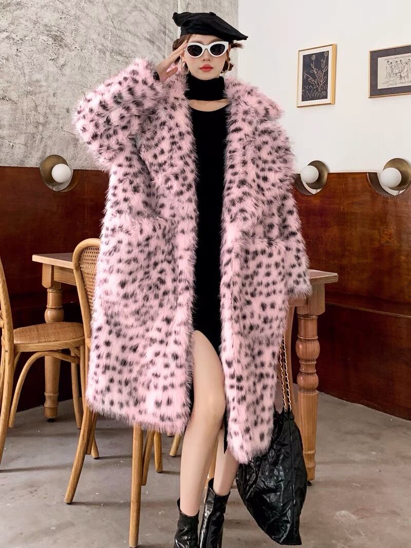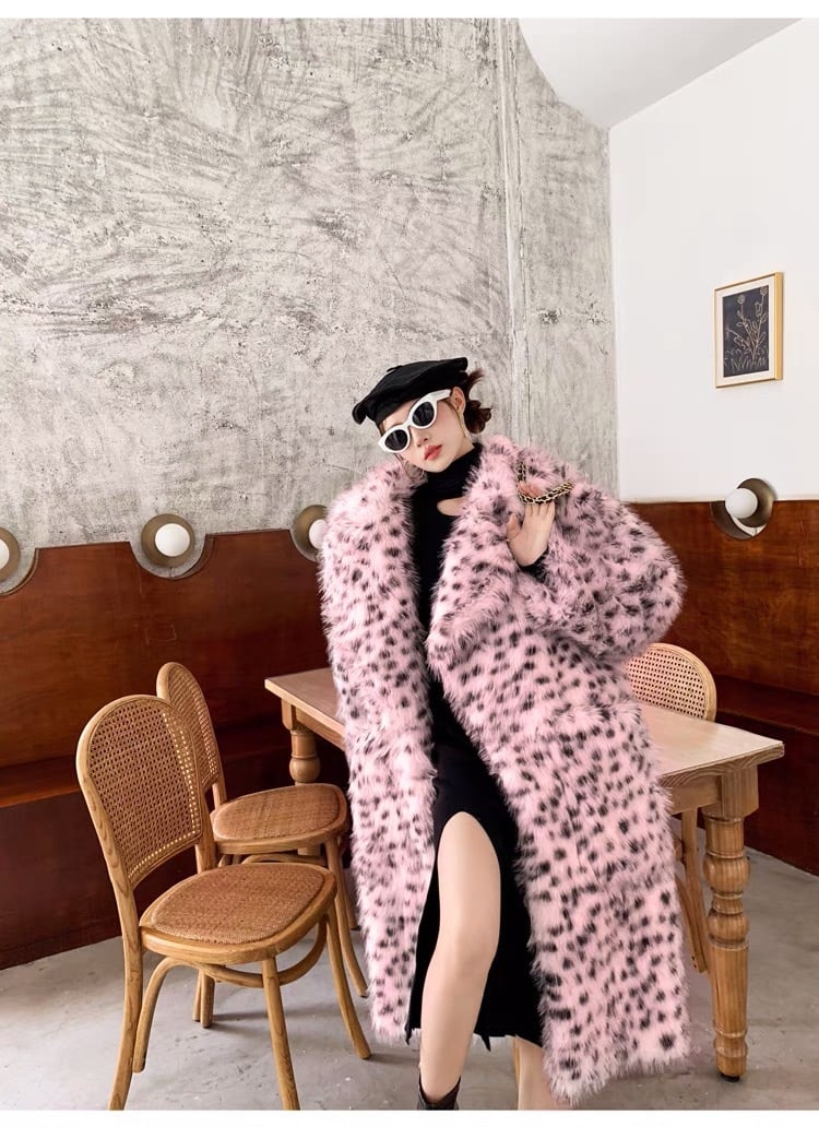 レオパード ヒョウ柄 ピンク 白 ファー コート ゴージャス アウター ジャケット ブルゾン カーディガン コート ロング ゴージャス ガーリー エレガント お嬢様 パーティー セレブ フード パーカー ギャル 銀座 原宿 渋谷 表参道
