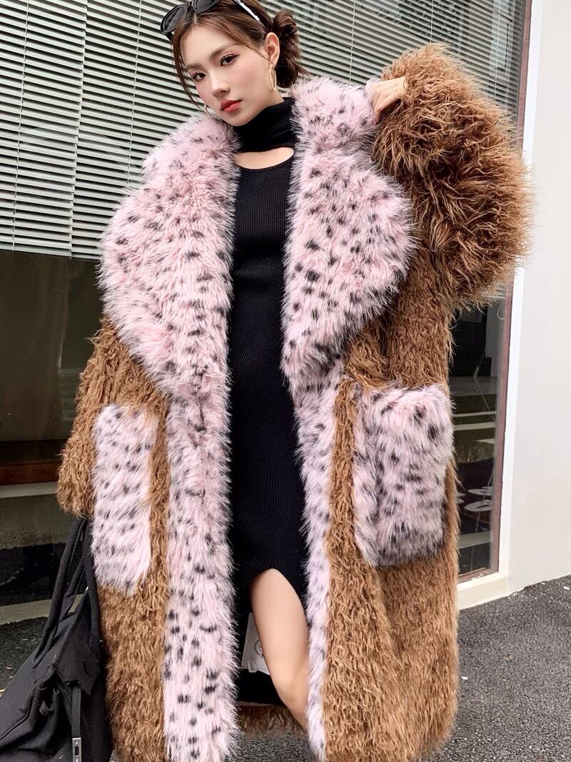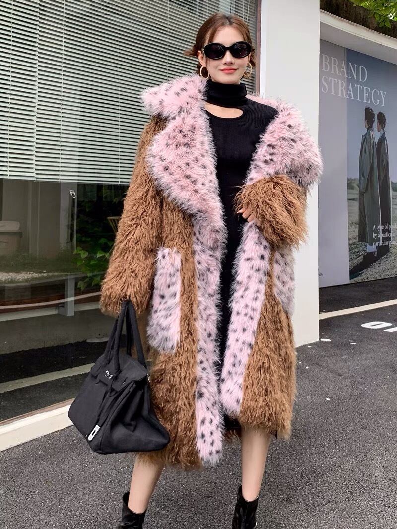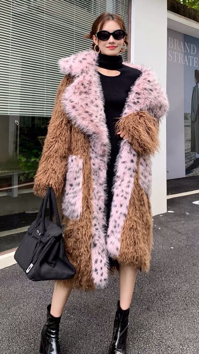 茶色 ポケット ピンク レオパード ヒョウ柄 ファー コート ゴージャス アウター ジャケット ブルゾン カーディガン コート ロング ゴージャス ガーリー エレガント お嬢様 パーティー セレブ フード パーカー ギャル 銀座 原宿 渋谷 表参道