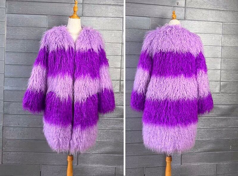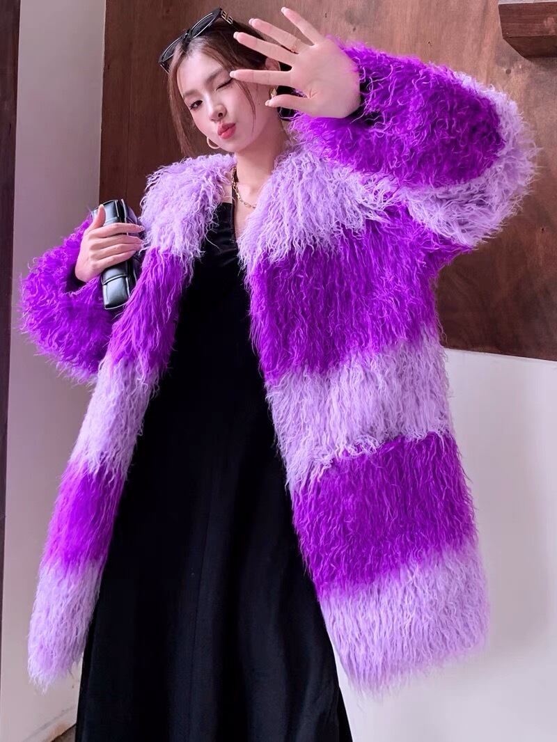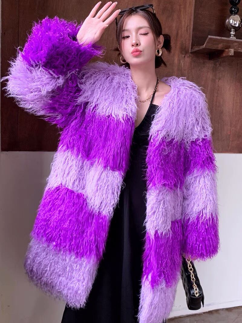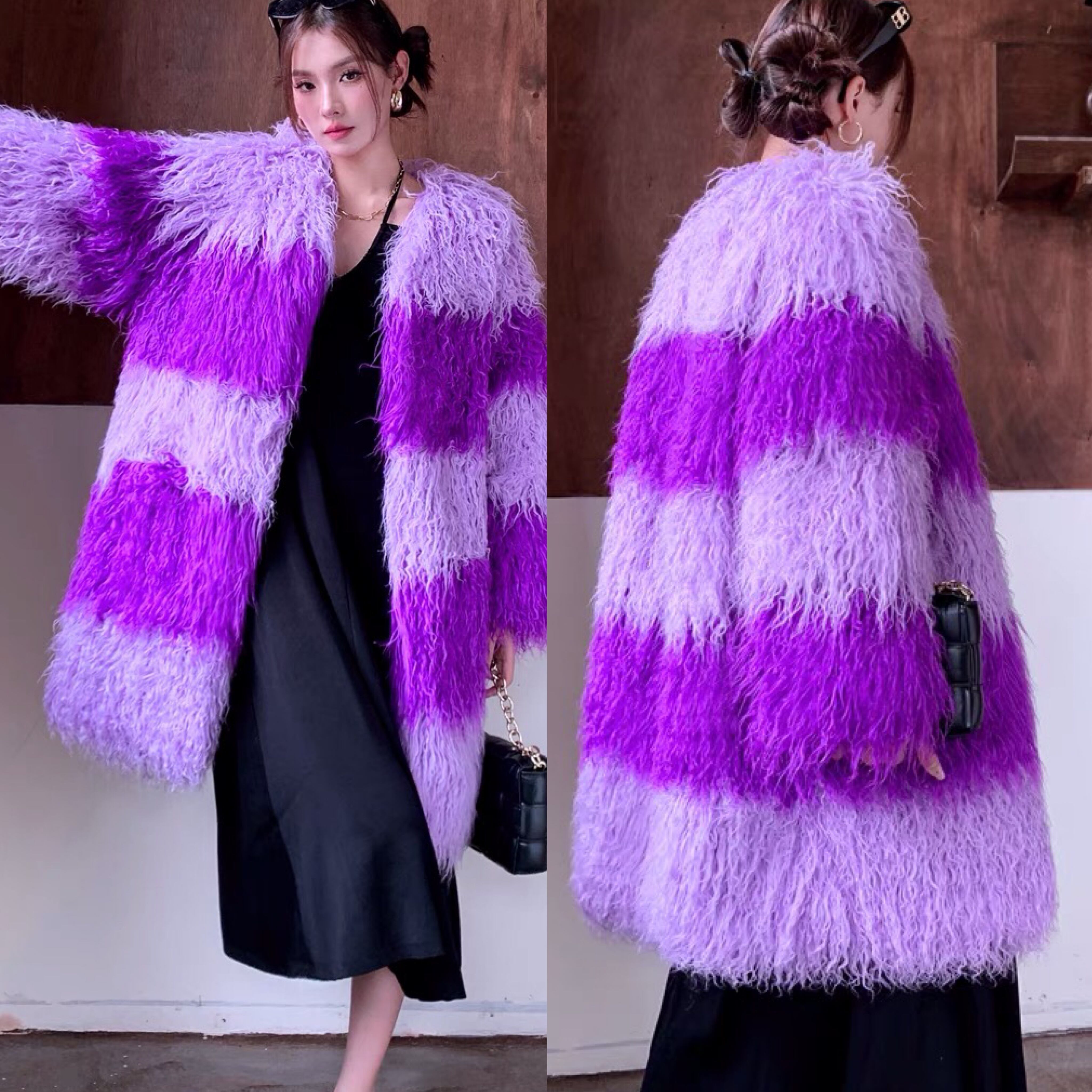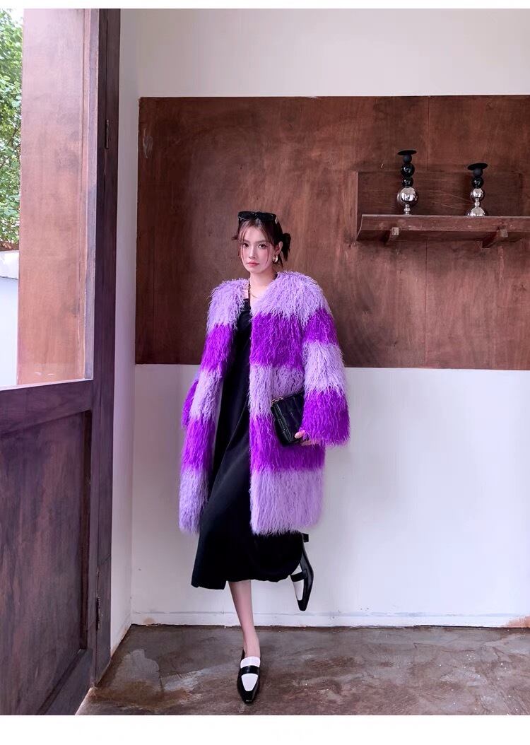ボーダー グラデーション 紫 パープル ファー コート ゴージャス アウター ジャケット ブルゾン カーディガン コート ロング ゴージャス ガーリー エレガント お嬢様 パーティー セレブ フード パーカー ギャル 銀座 原宿 渋谷 表参道