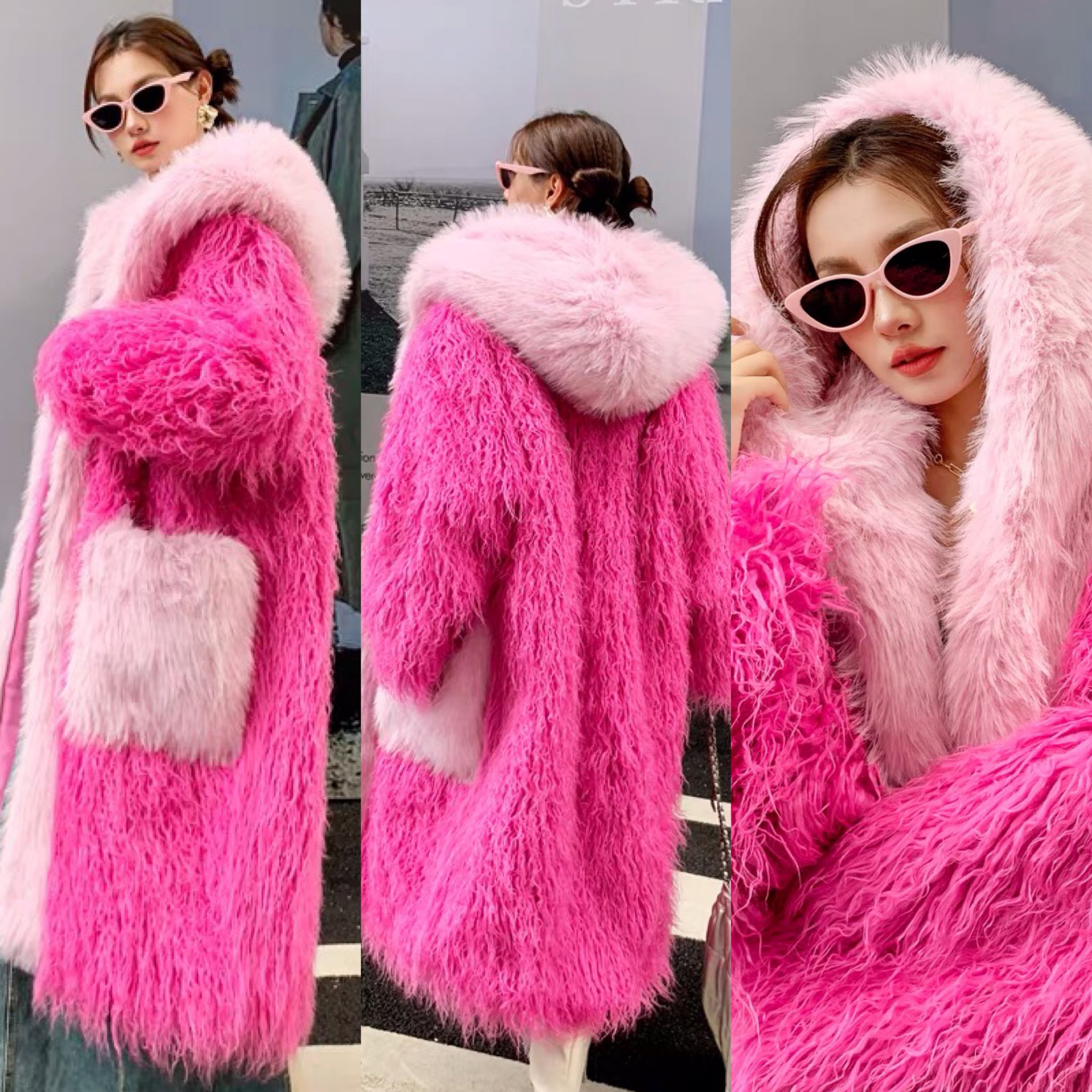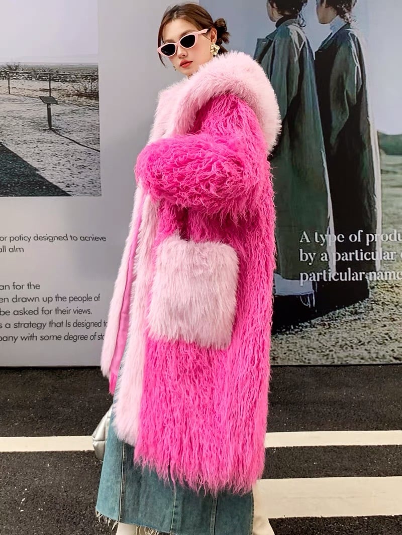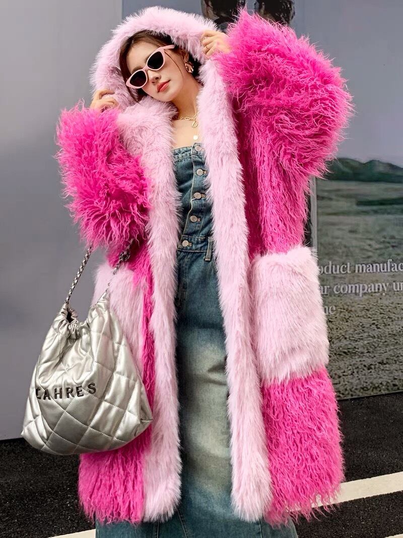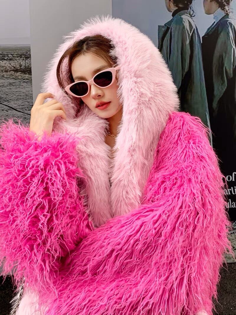 ピンク パーカー フード ボーダー ファー コート ゴージャス アウター ジャケット ブルゾン カーディガン コート ロング ゴージャス ガーリー エレガント お嬢様 パーティー セレブ フード パーカー ギャル 銀座 原宿 渋谷 表参道 グラデーション