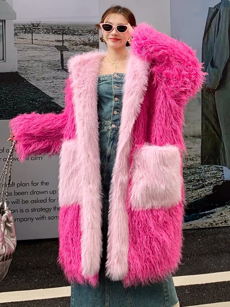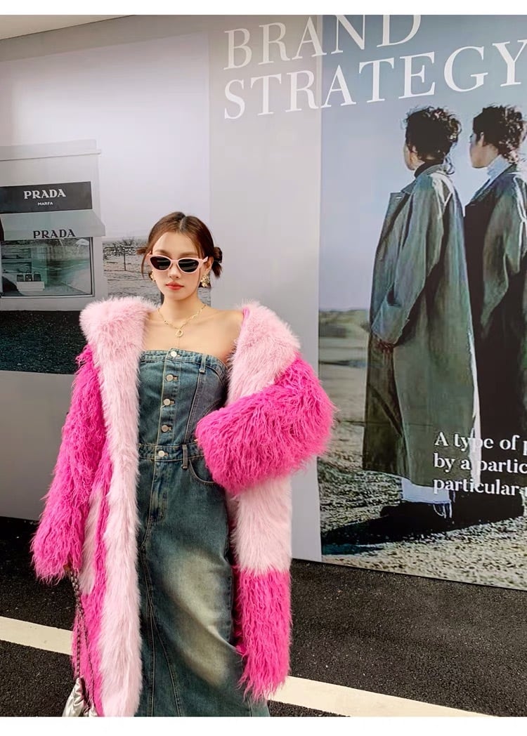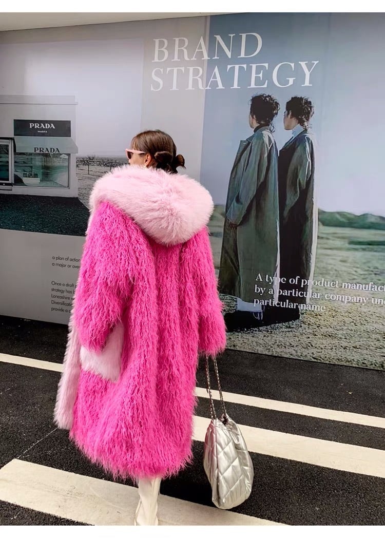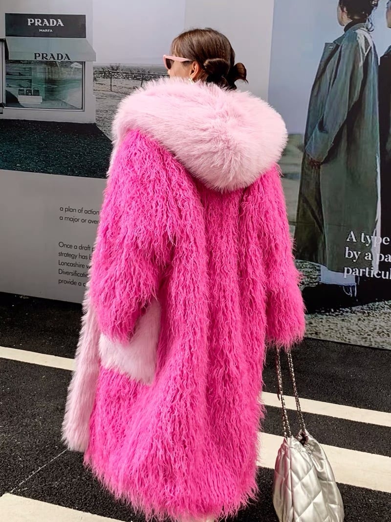 ピンク パーカー フード ボーダー ファー コート ゴージャス アウター ジャケット ブルゾン カーディガン コート ロング ゴージャス ガーリー エレガント お嬢様 パーティー セレブ フード パーカー ギャル 銀座 原宿 渋谷 表参道 グラデーション