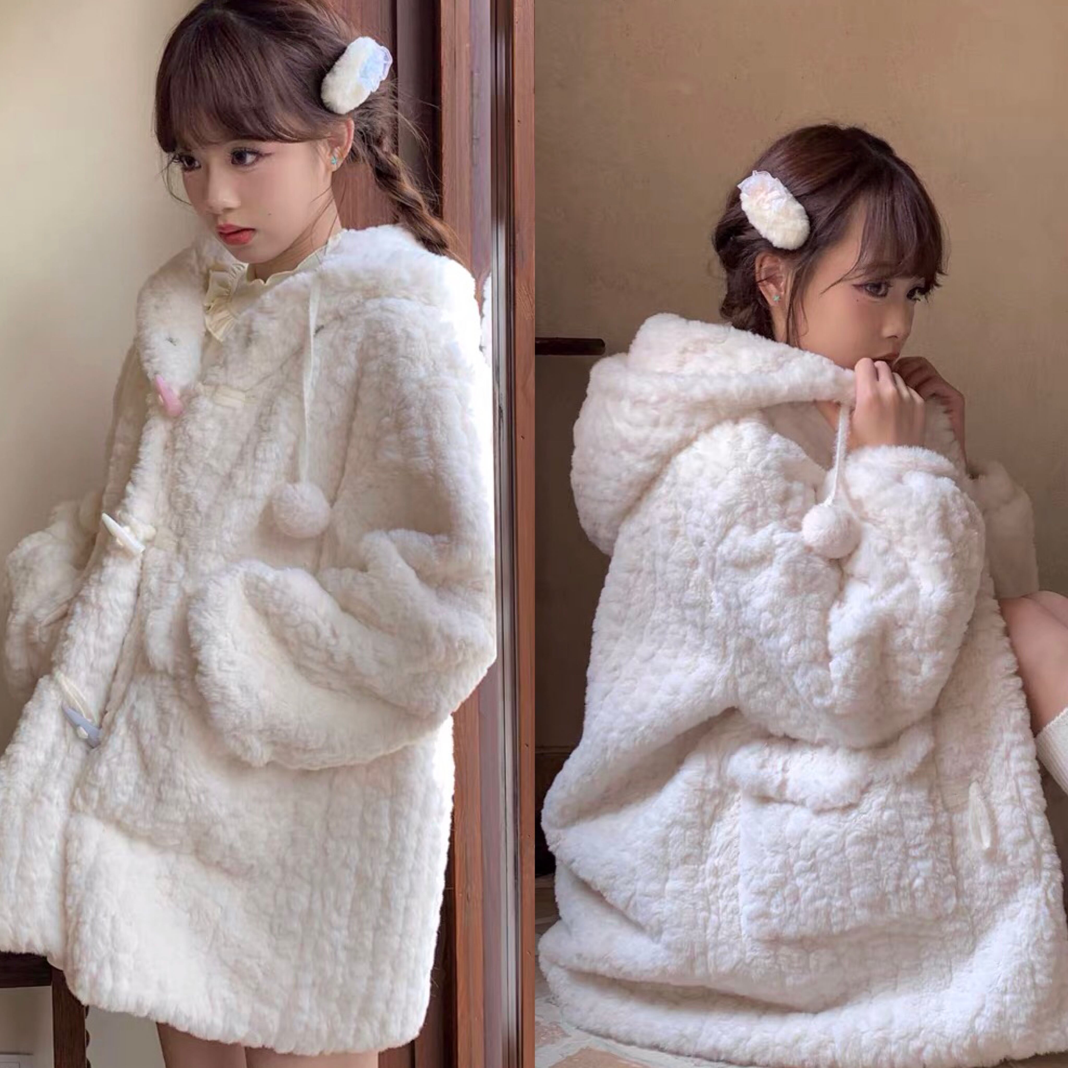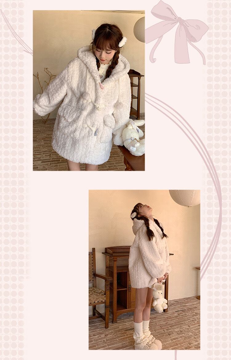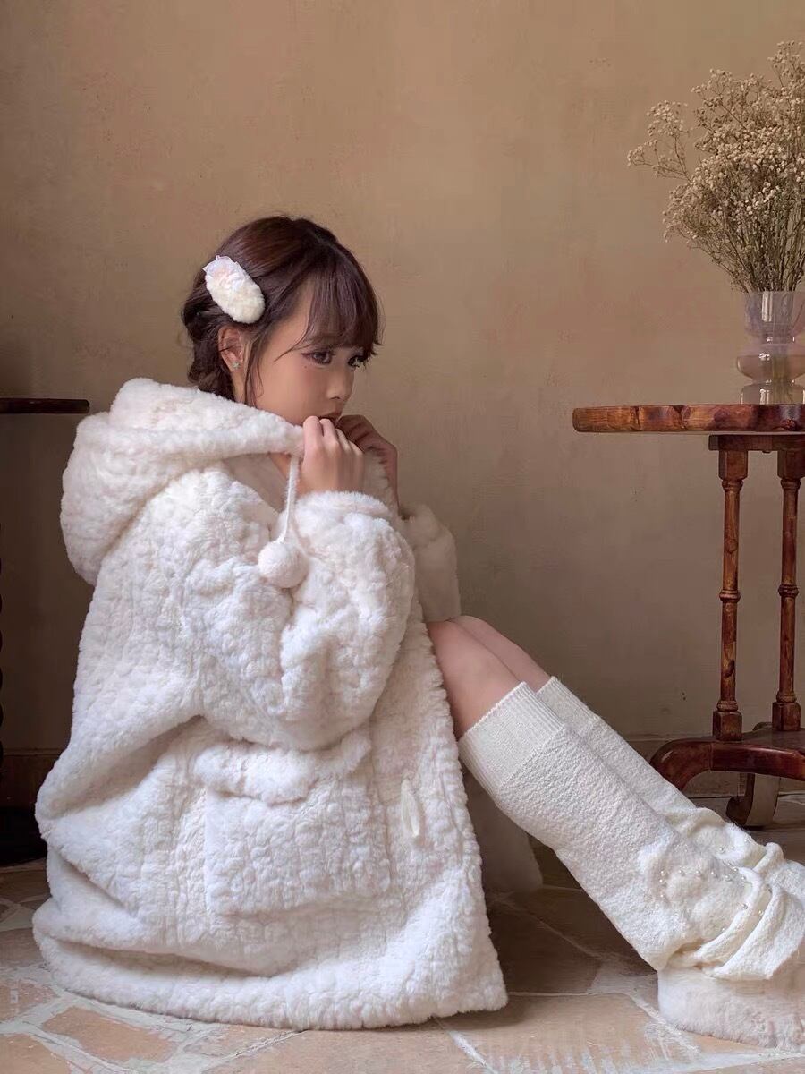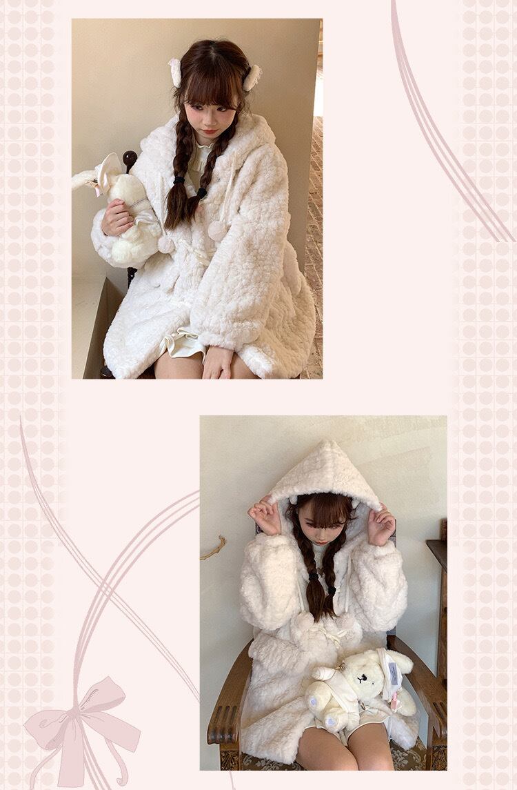 ガーリー コート アウター かわいい 姫 原宿 ガーリー ジャケット かわいい 姫 原宿 渋谷 ブルゾン ジャンパー ロリータ 竹下通り フード パーカー カジュアル フード 白 フリース