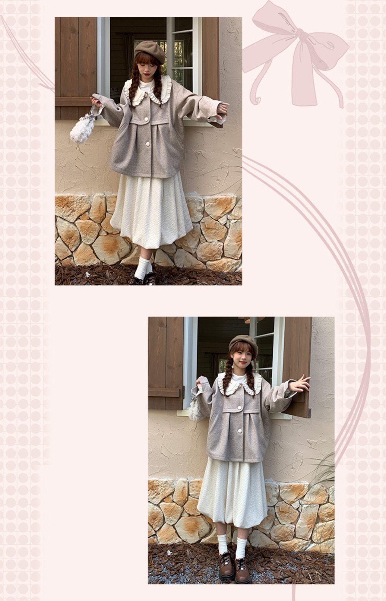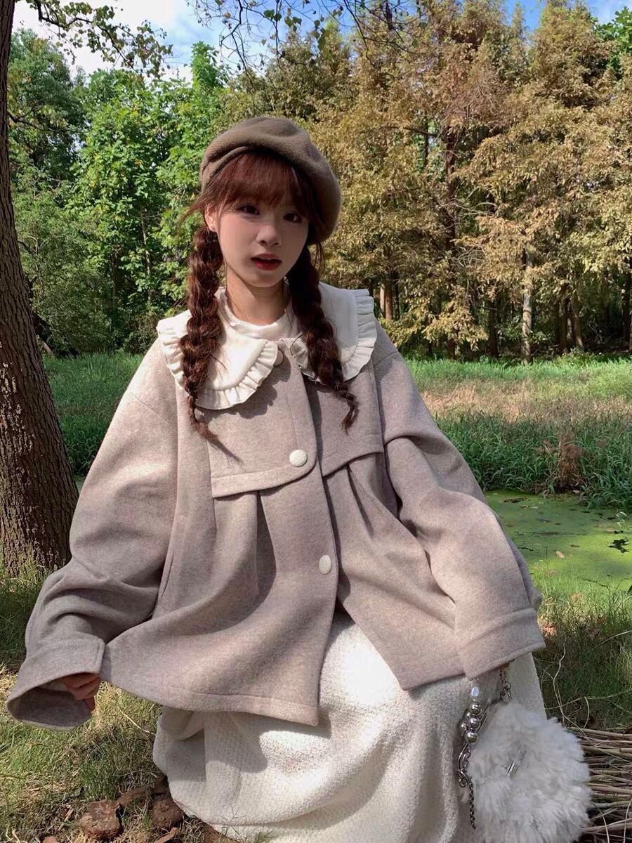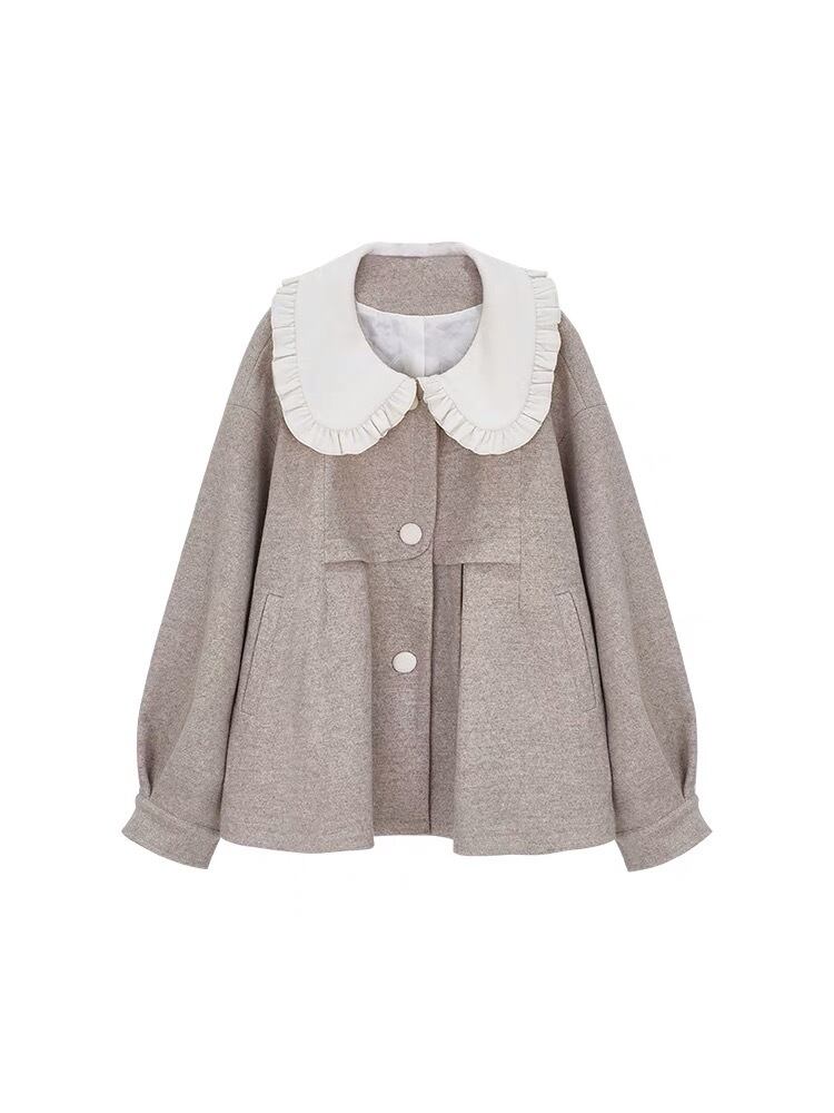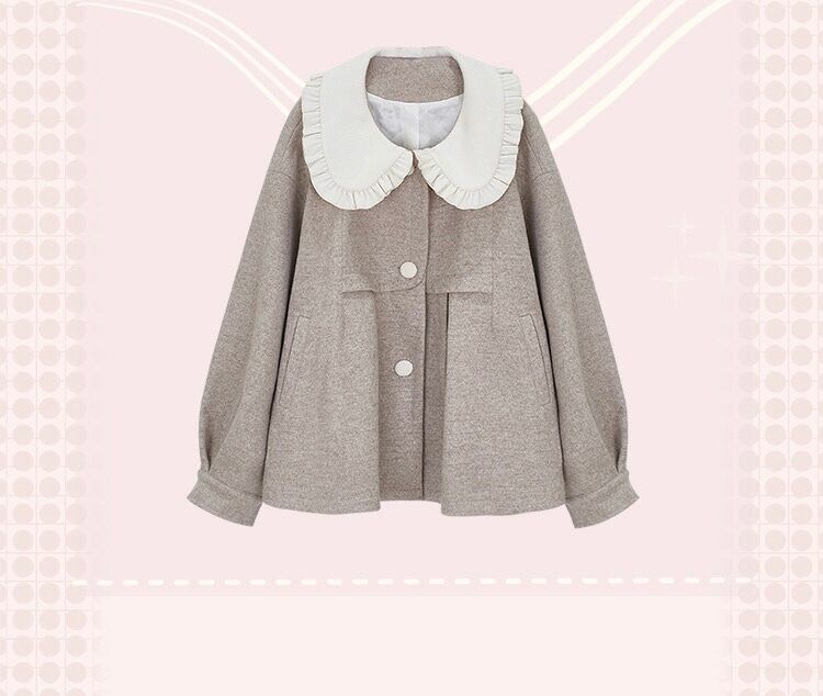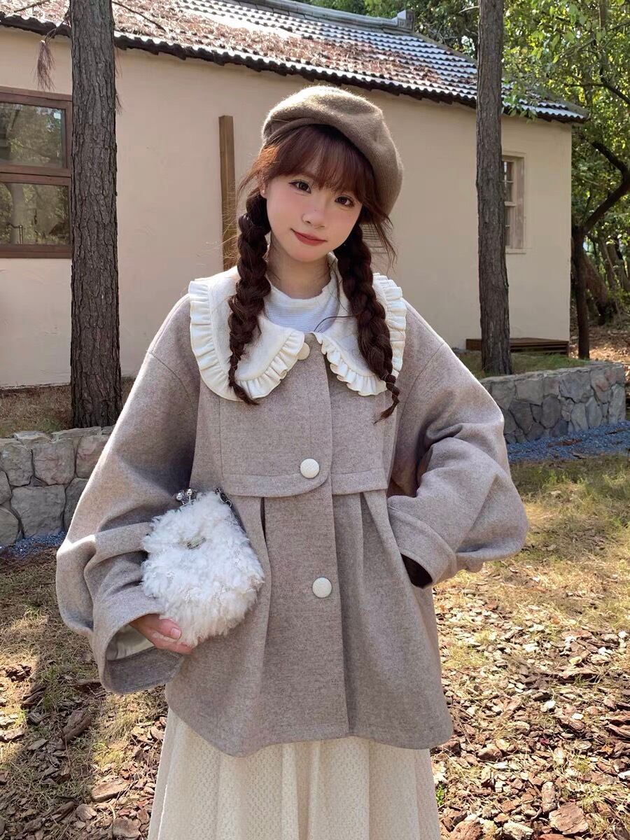 アウター カーディガン コート ベージュ ガーリー ジャケット かわいい 姫 原宿 渋谷 ブルゾン ジャンパー ロリータ 竹下通り フード パーカー カジュアル グレー 丸襟 ガーリー