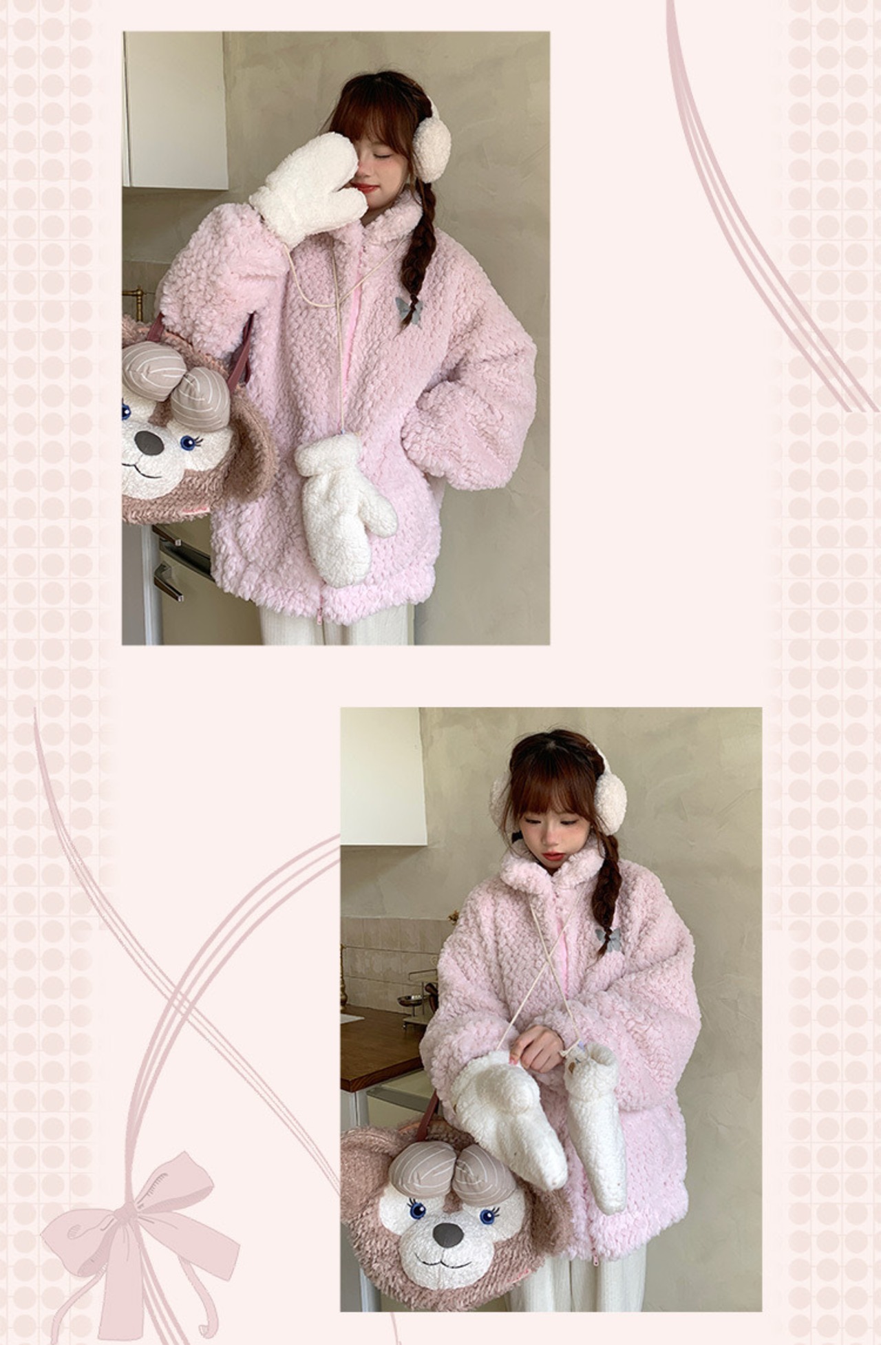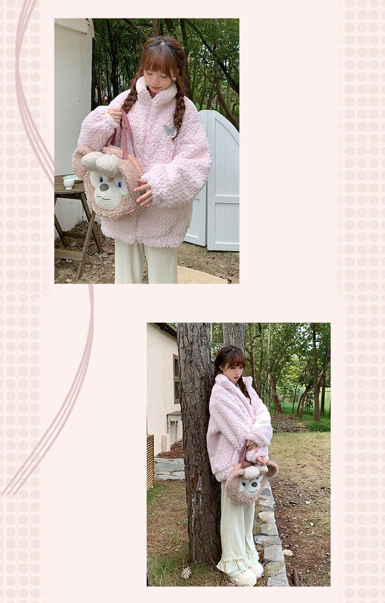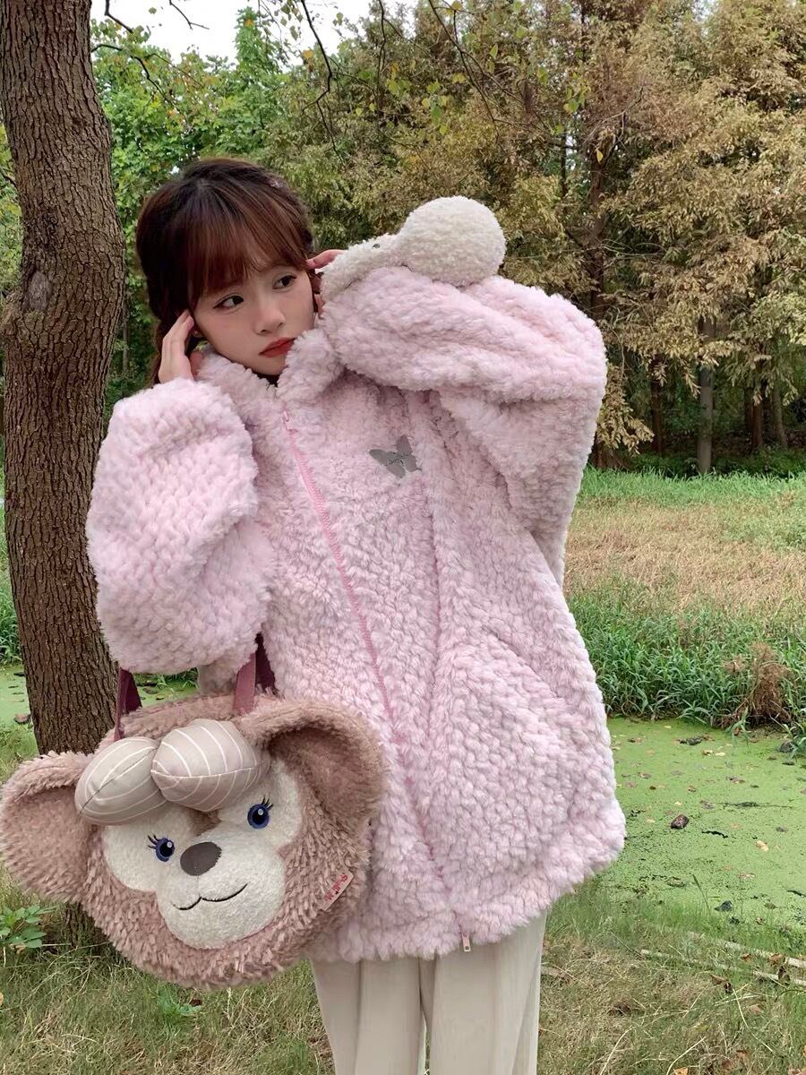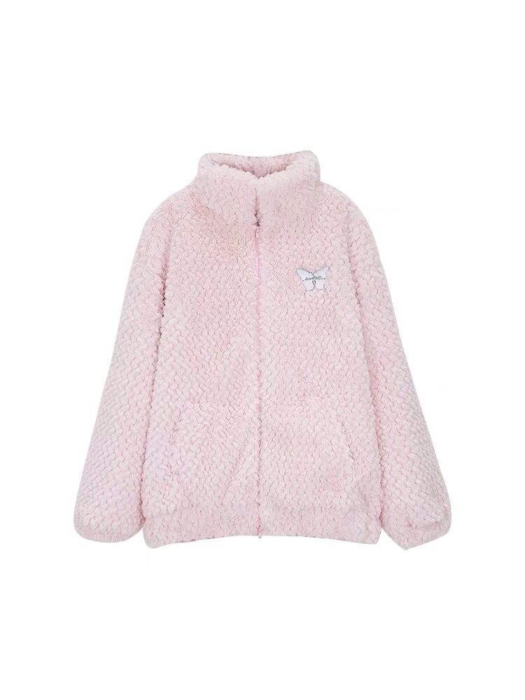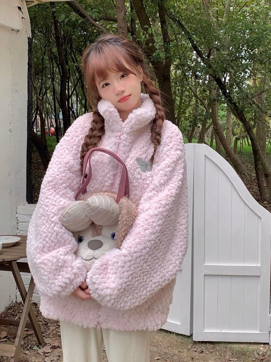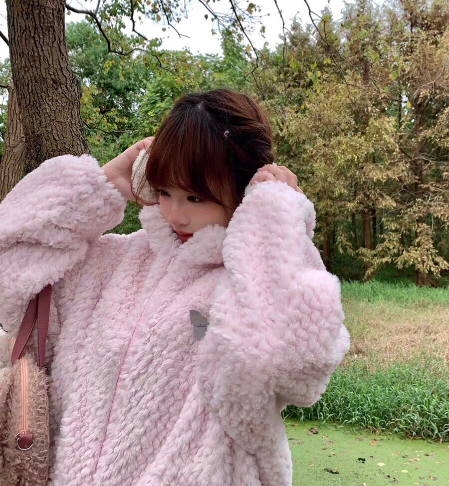 アウター ピンク フリース ガーリー ジャケット かわいい 姫 原宿 渋谷 ブルゾン ジャンパー ロリータ 竹下通り フード パーカー カジュアル か シンプル ジャケット