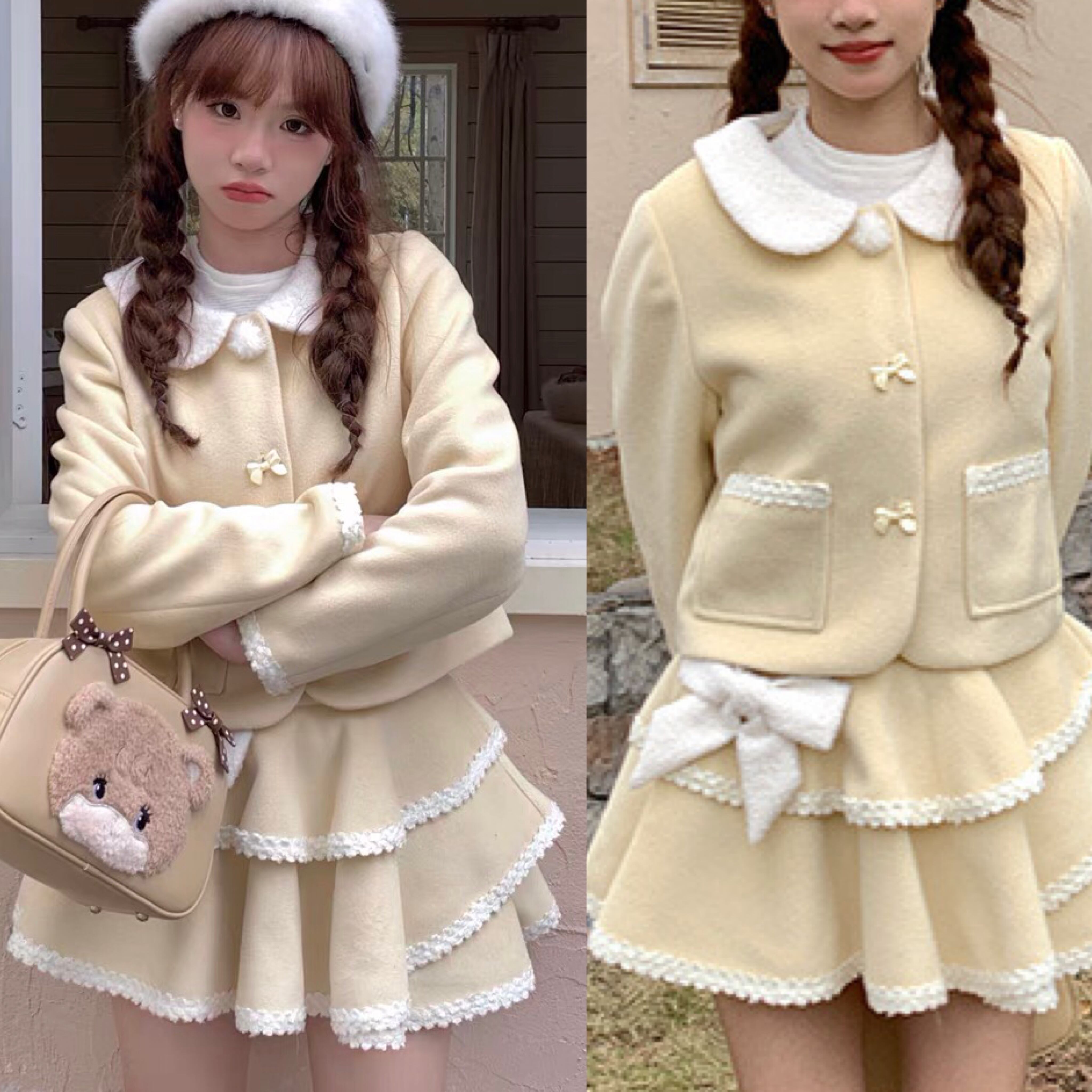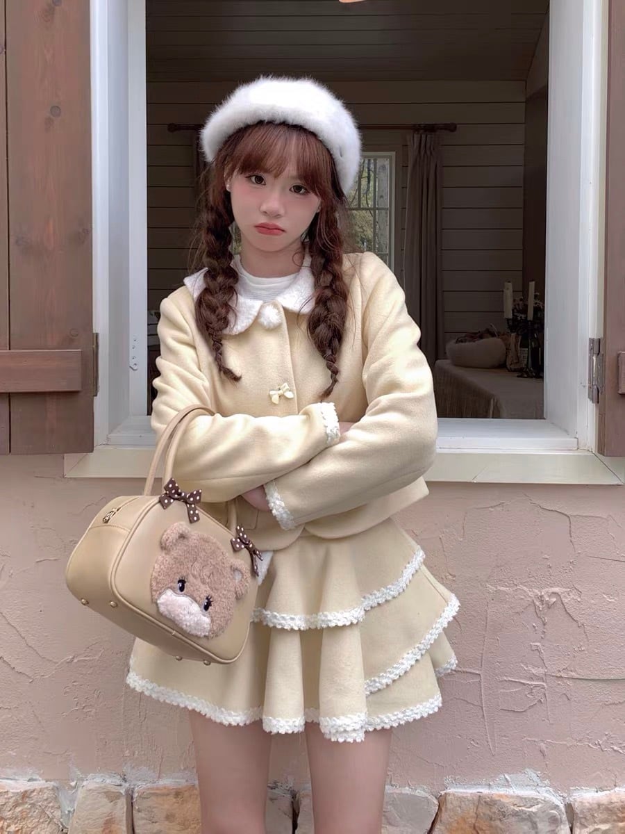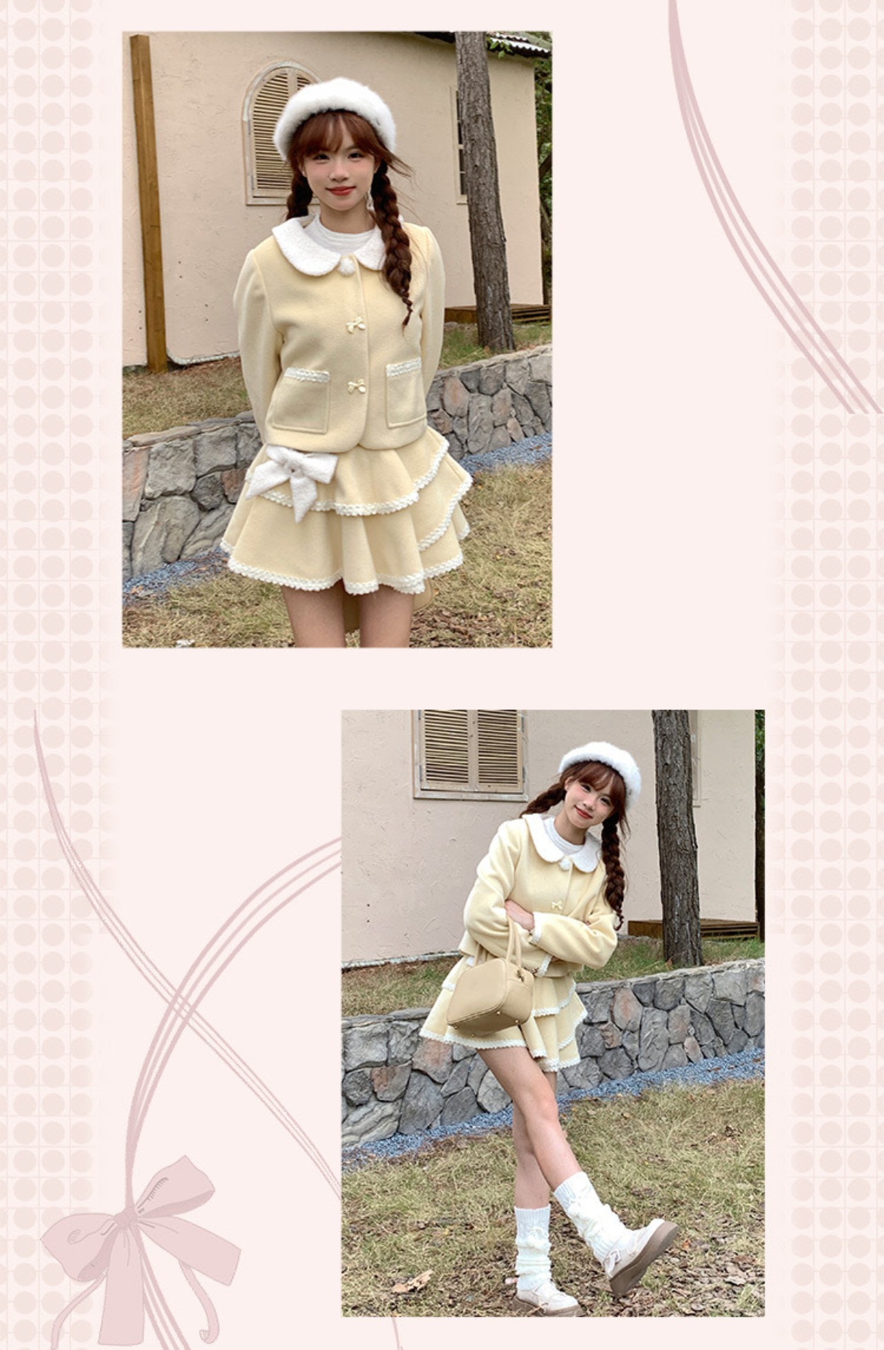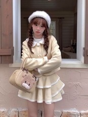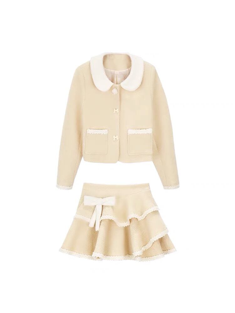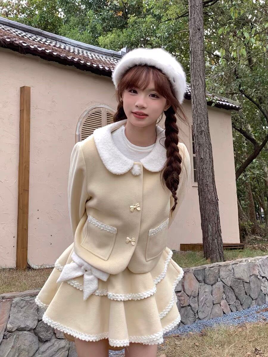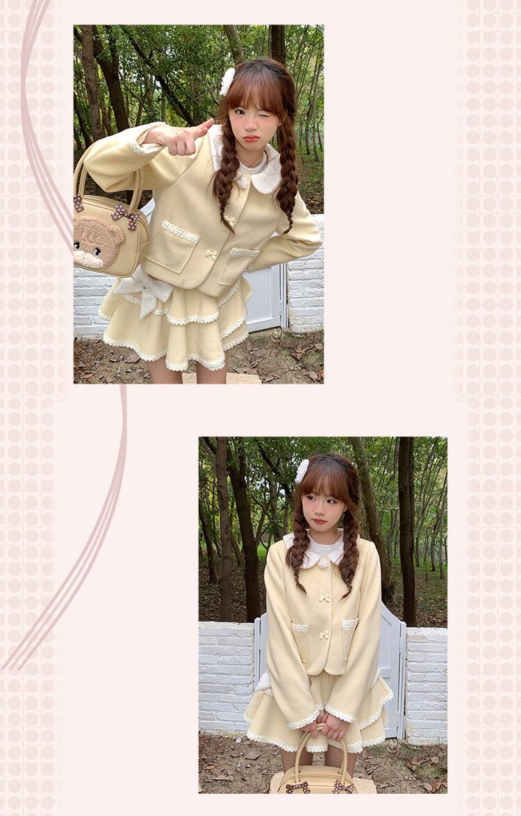 【スカート】黄色 ガーリー かわいい ツーピース スーツ 黄色 セットアップ ガーリー ジャケット かわいい 姫 原宿 渋谷 ブルゾン ジャンパー ロリータ 竹下通り フード パーカー カジュアル ミニスカート リボン フリル