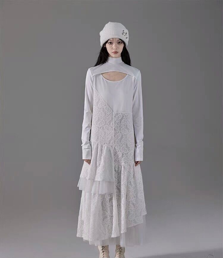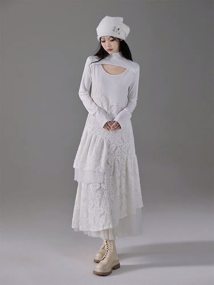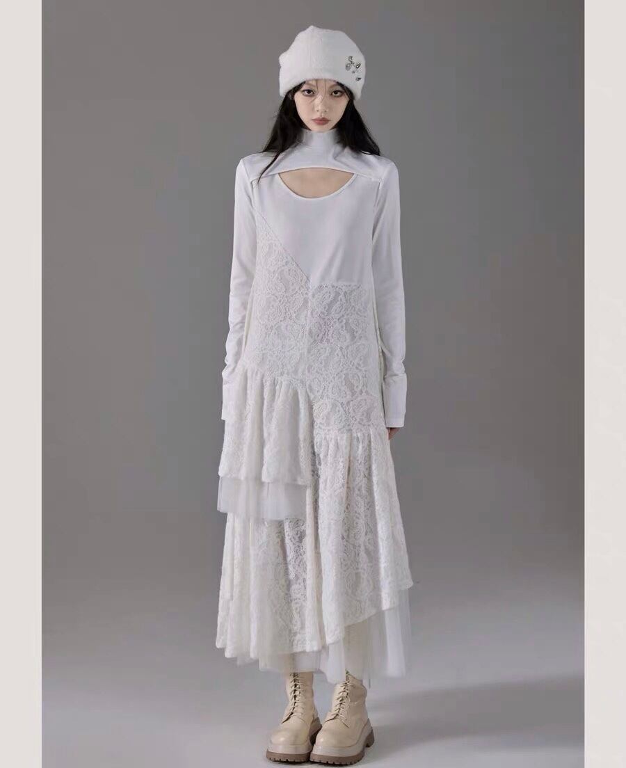 ワンピース 白 ホワイト マキシ レース カジュアル