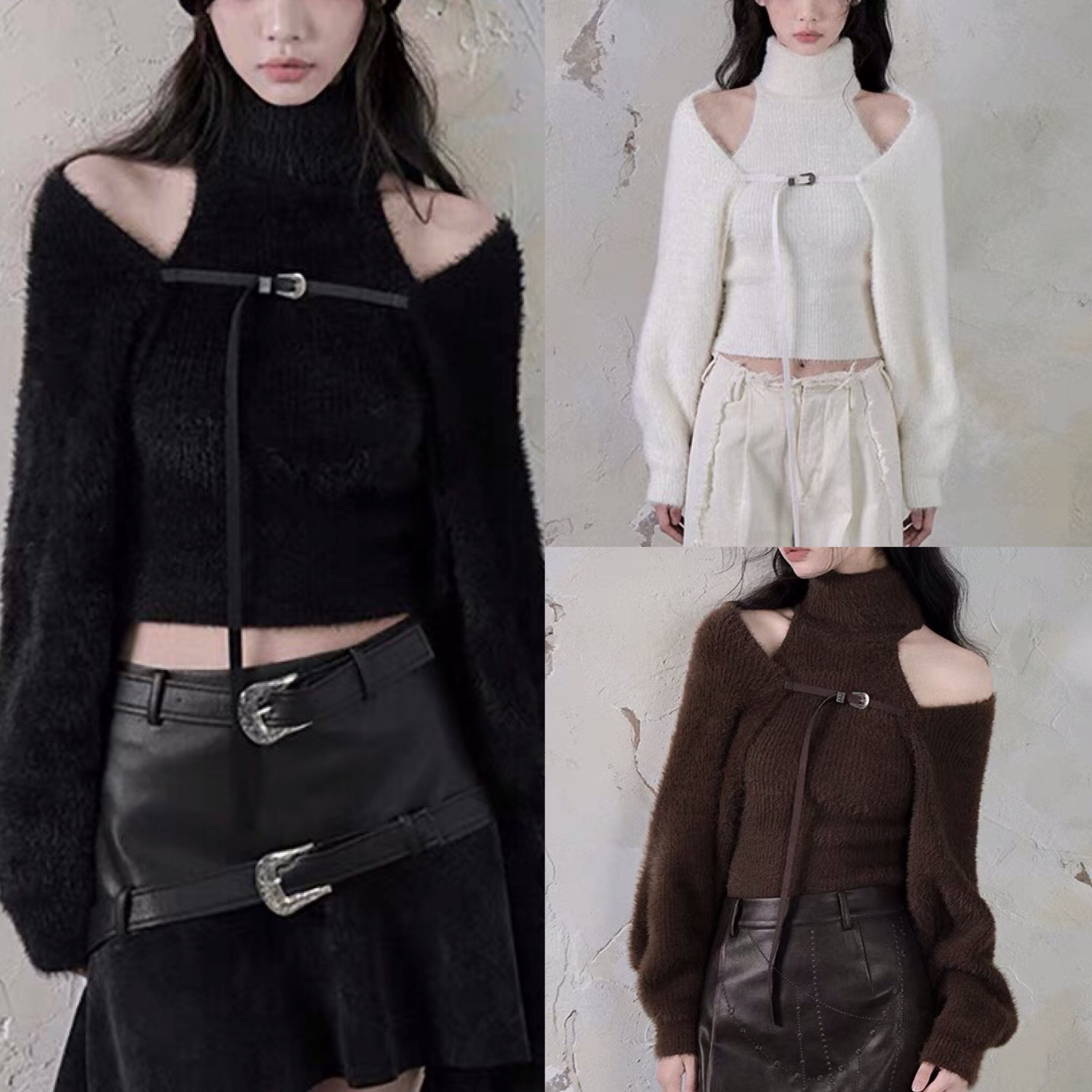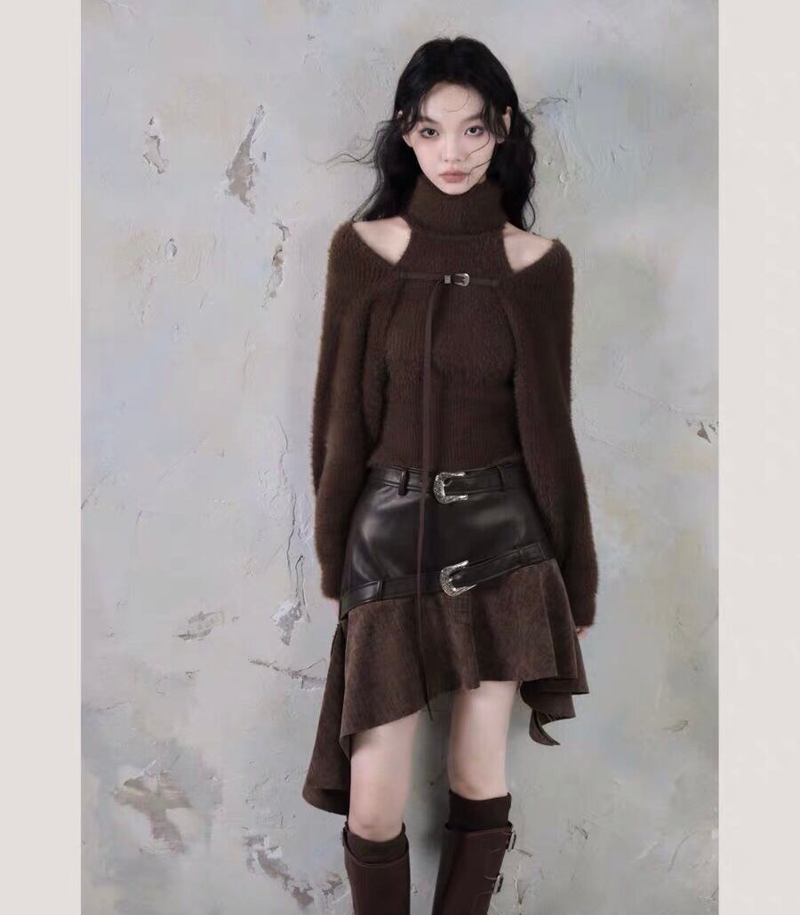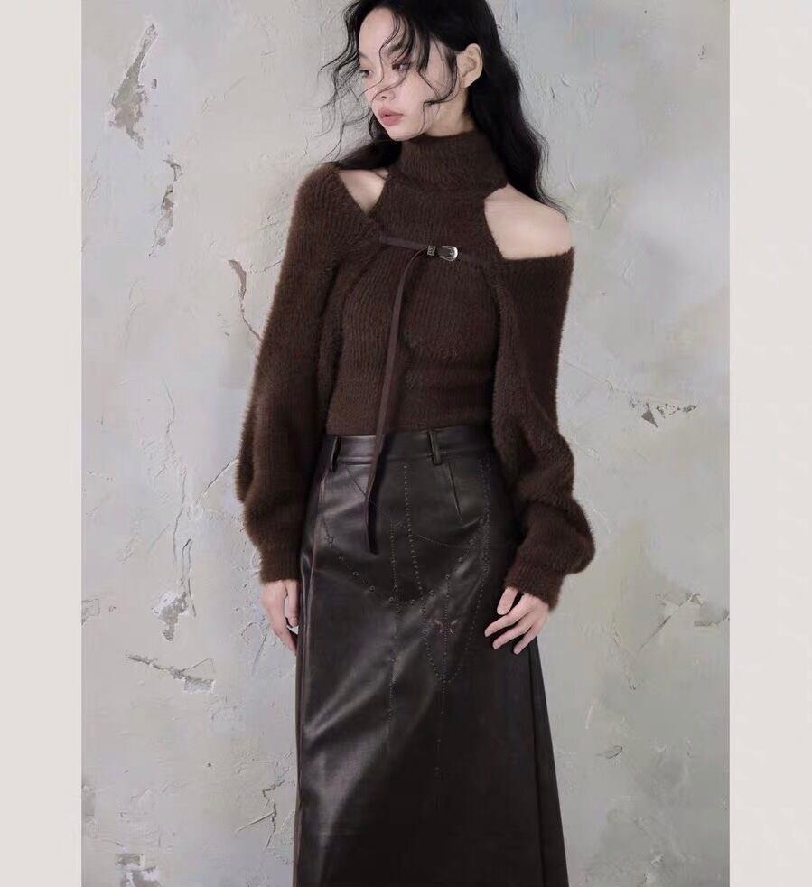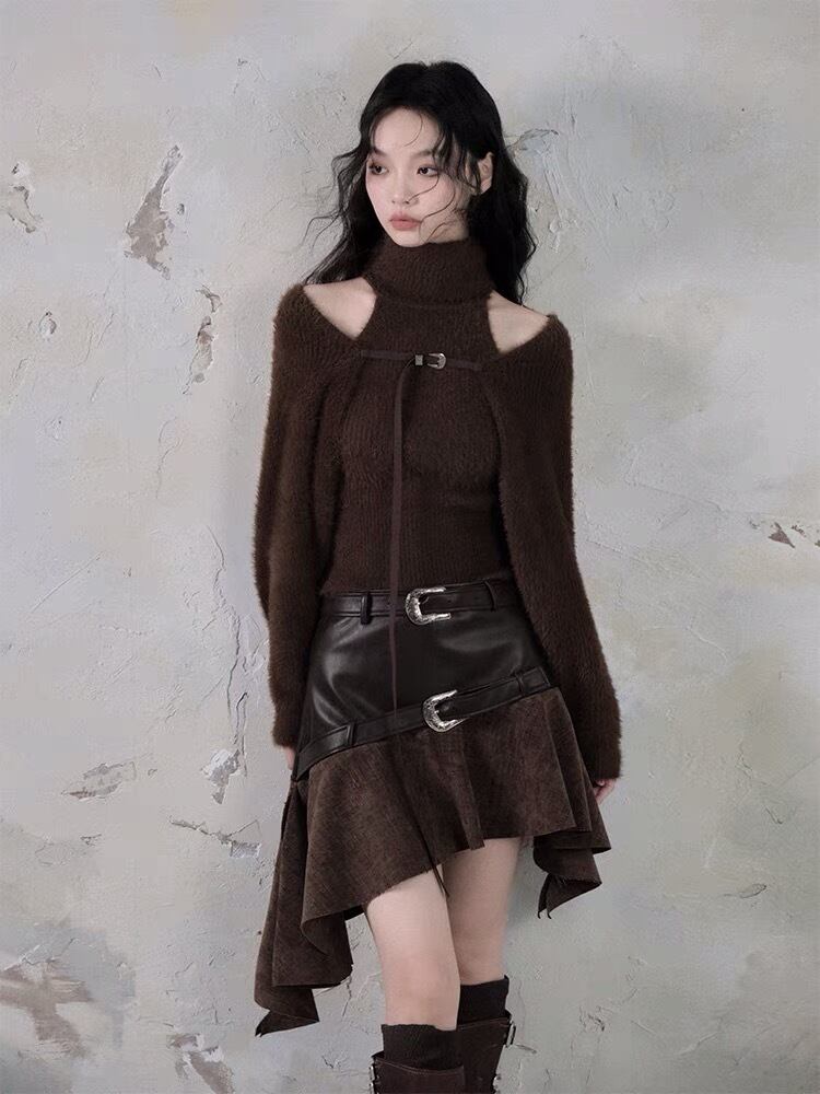 【トップセット】セーター カーディガン 茶色 黒 白 フリース ブラウス オフショルダー