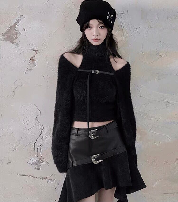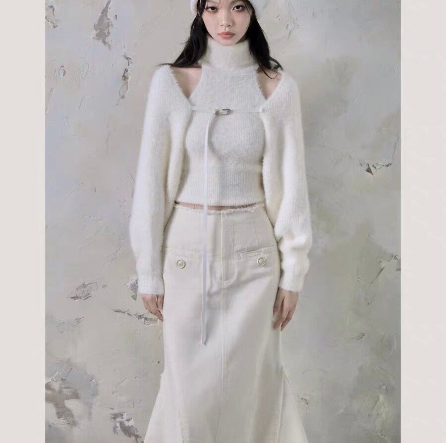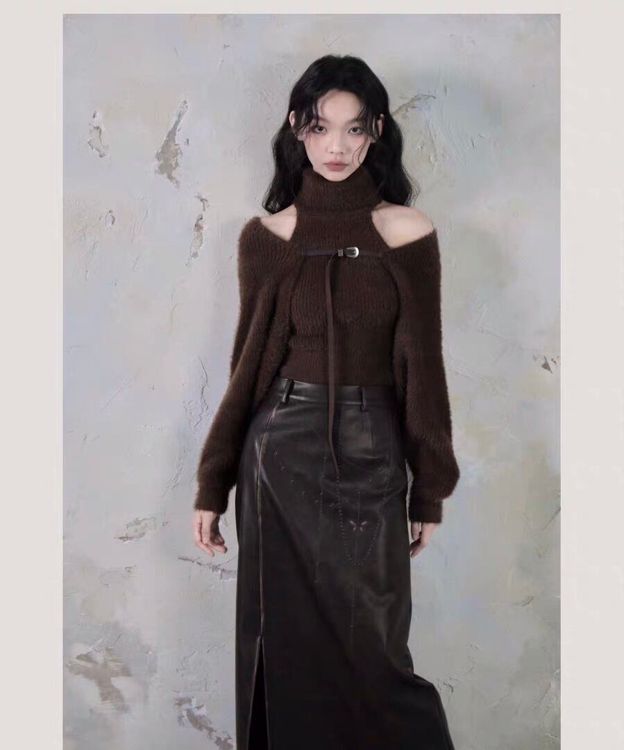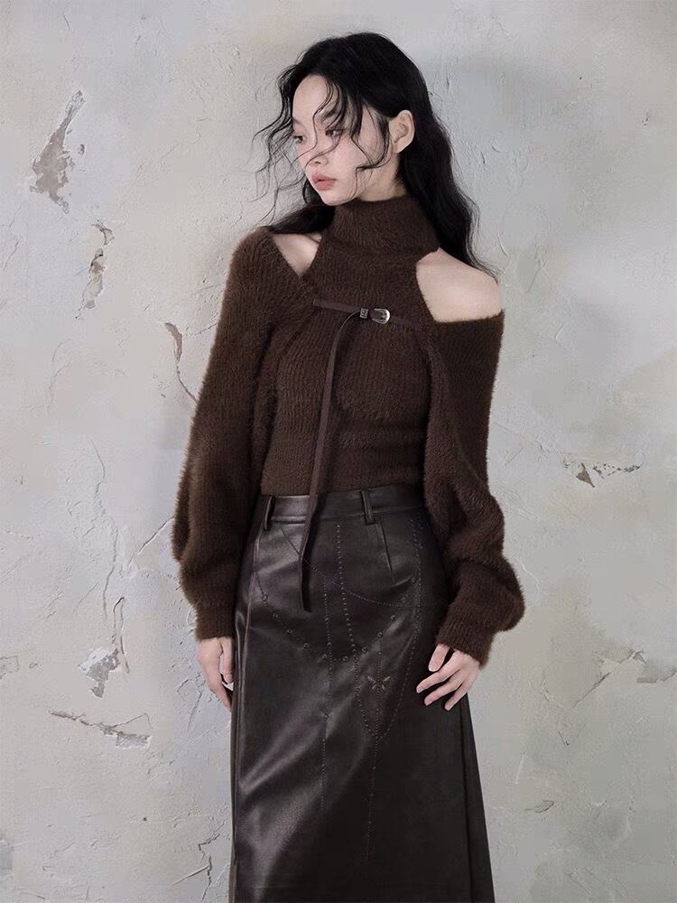 【トップセット】セーター カーディガン 茶色 黒 白 フリース ブラウス オフショルダー