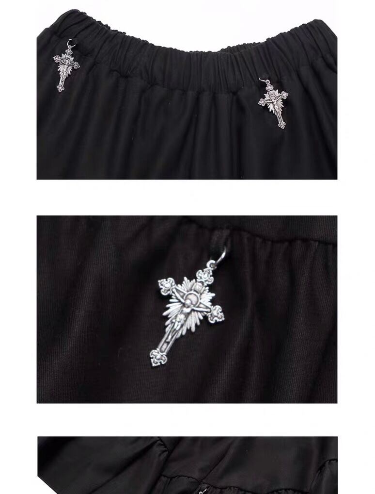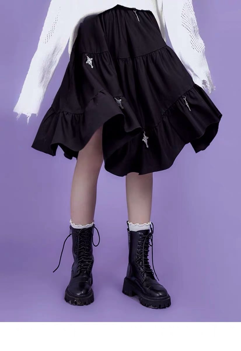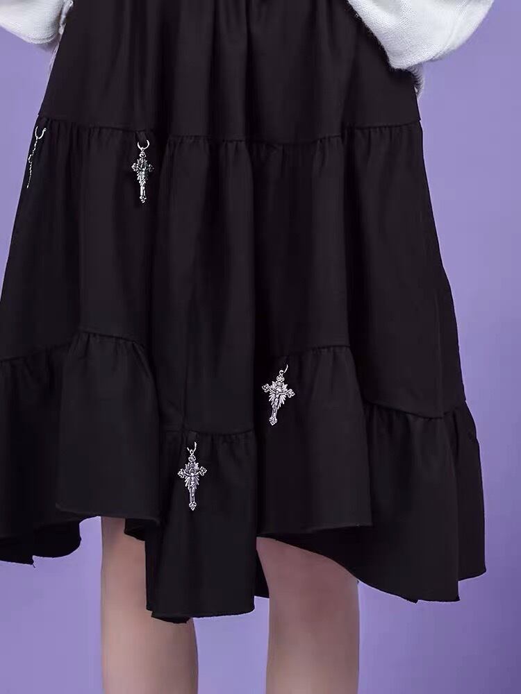 スカート クロス フレア ボトムス 黒 カジュアル シンプル