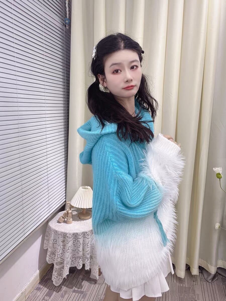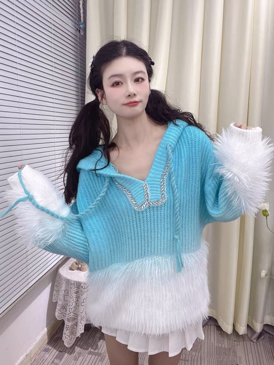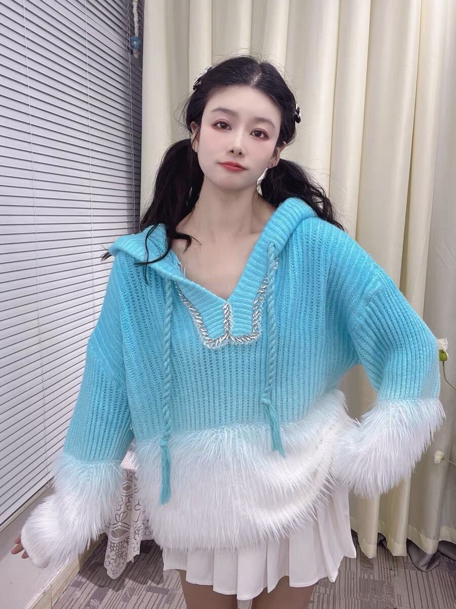 セーター 水色 パーカー ニット カーディガン し ゆったり