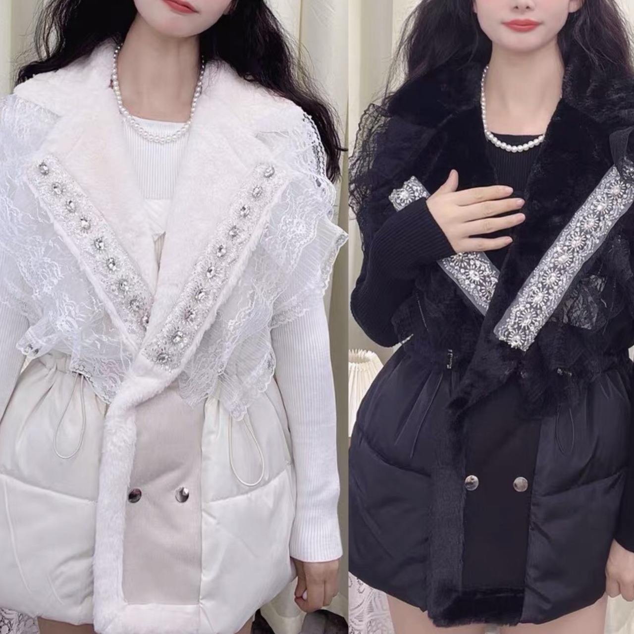 黒 白 アウター ジャケット ベルト ダウン