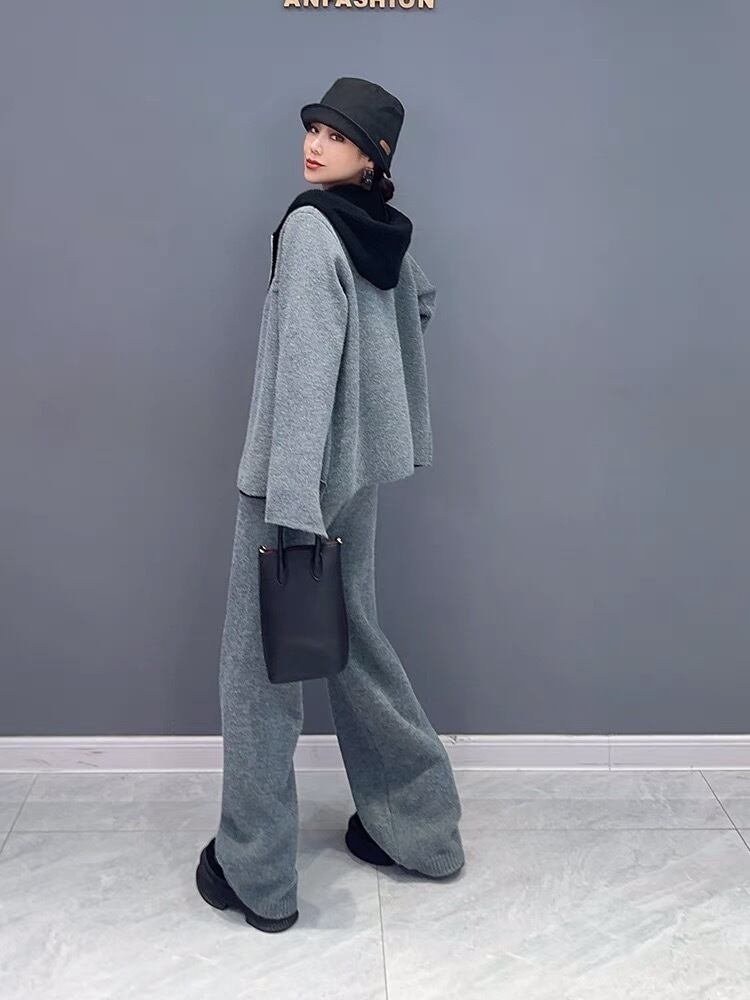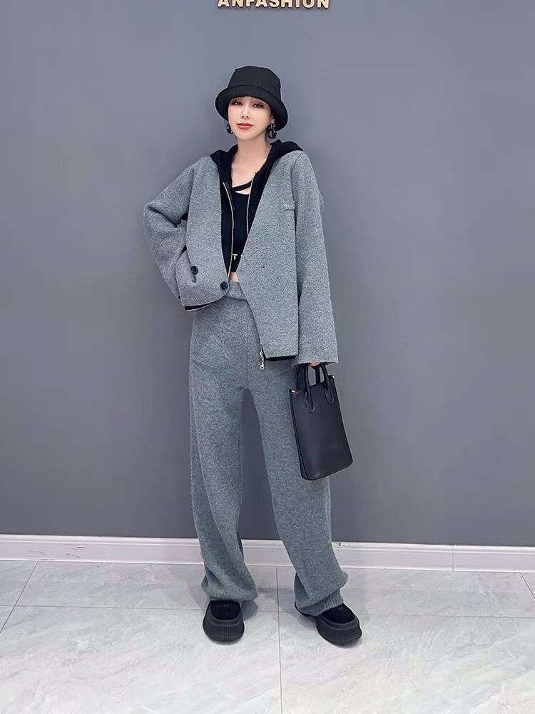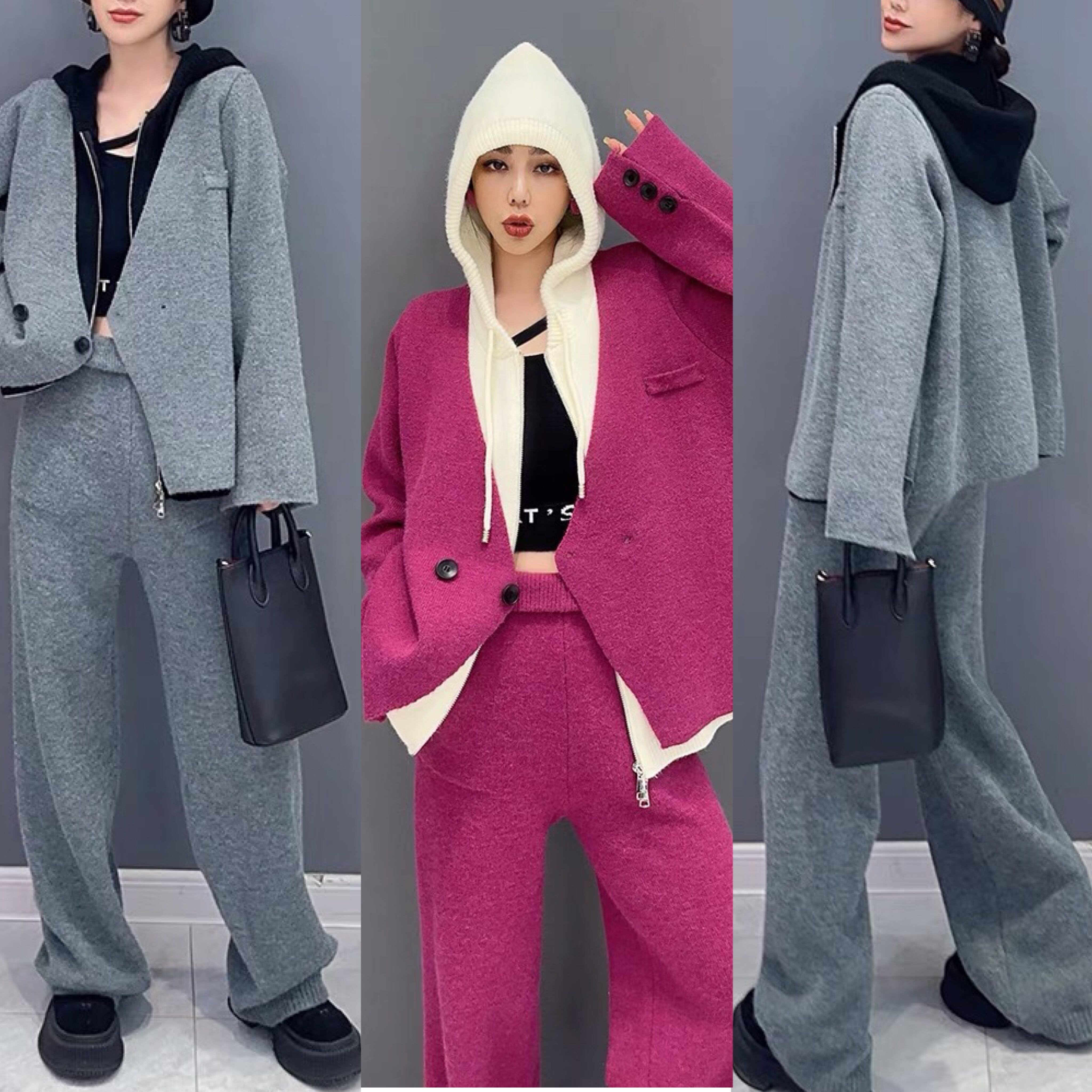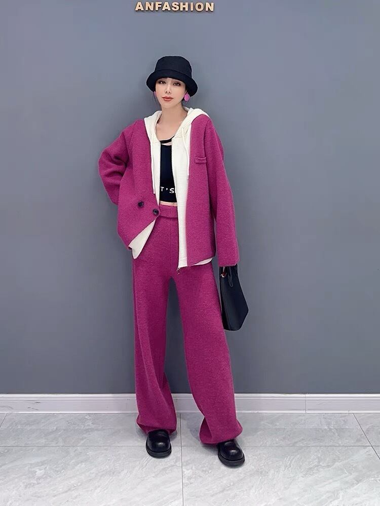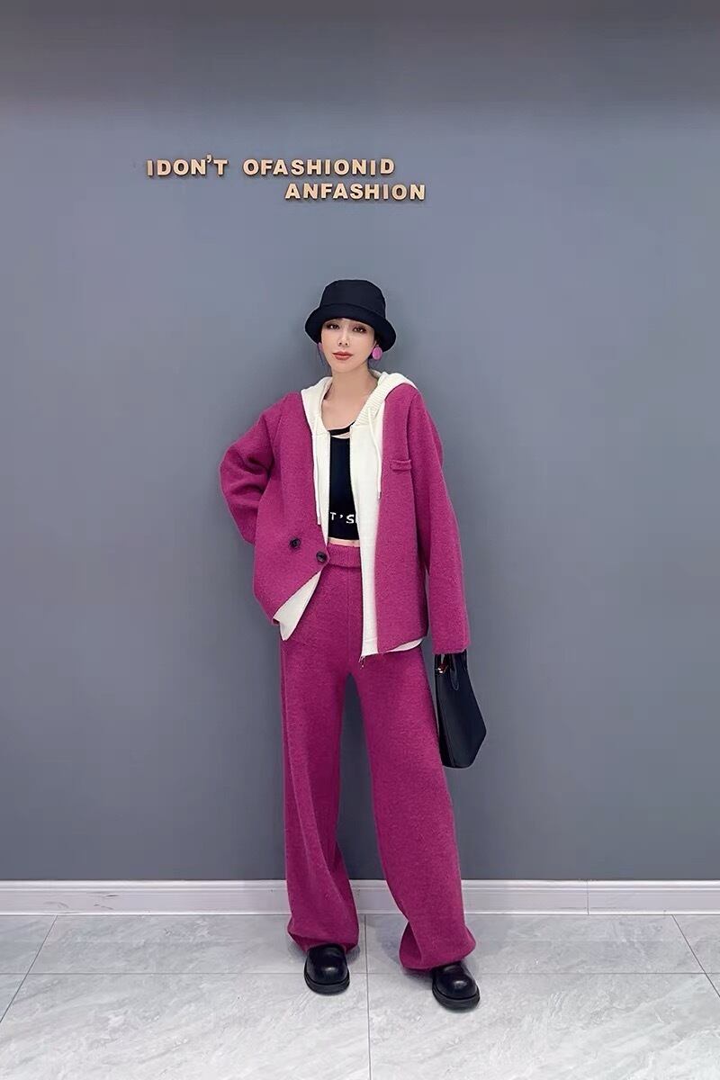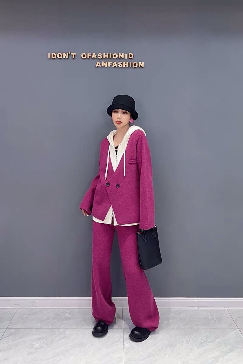 【セットアップ】紫 パーカー グレー スウェット カジュアル パンツ カーディガン