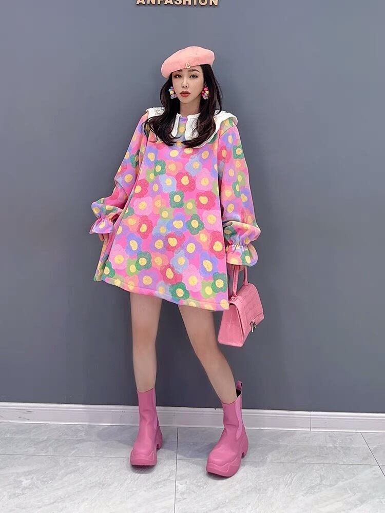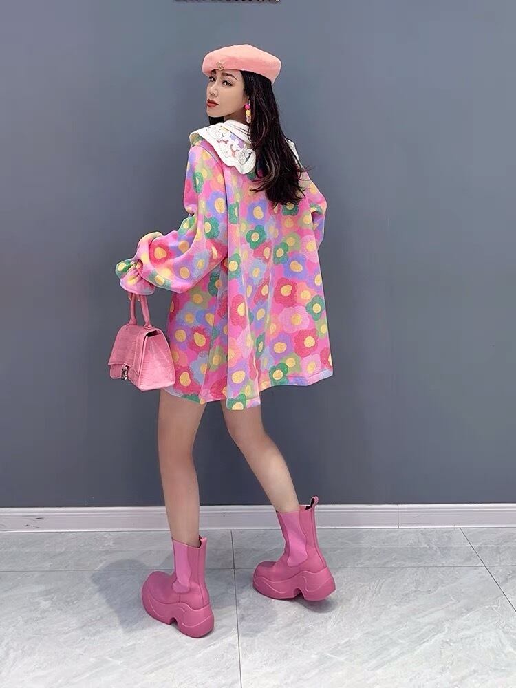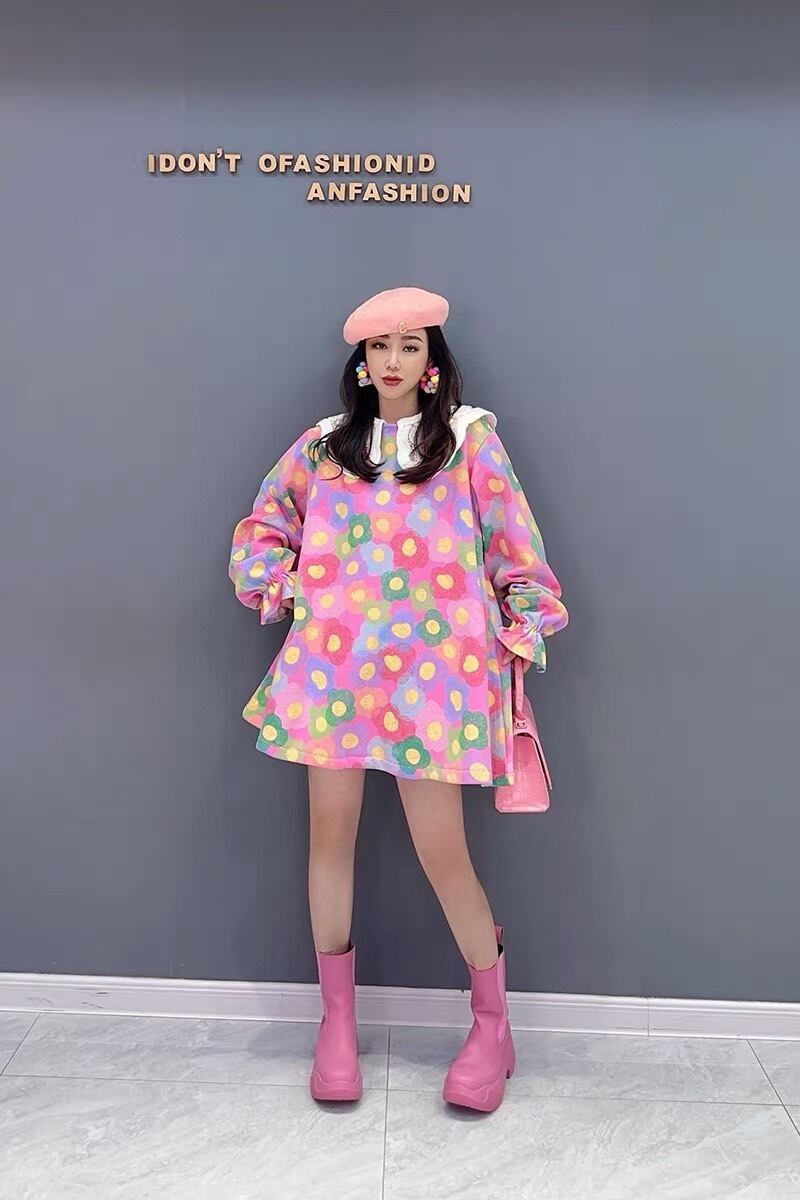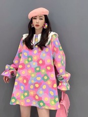 ワンピース ブラウス トップス ピンク 丸襟 ガーリー