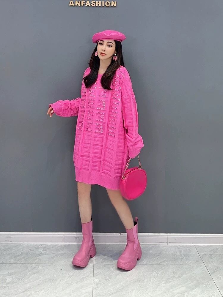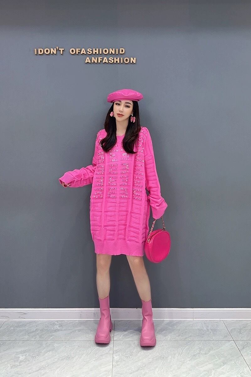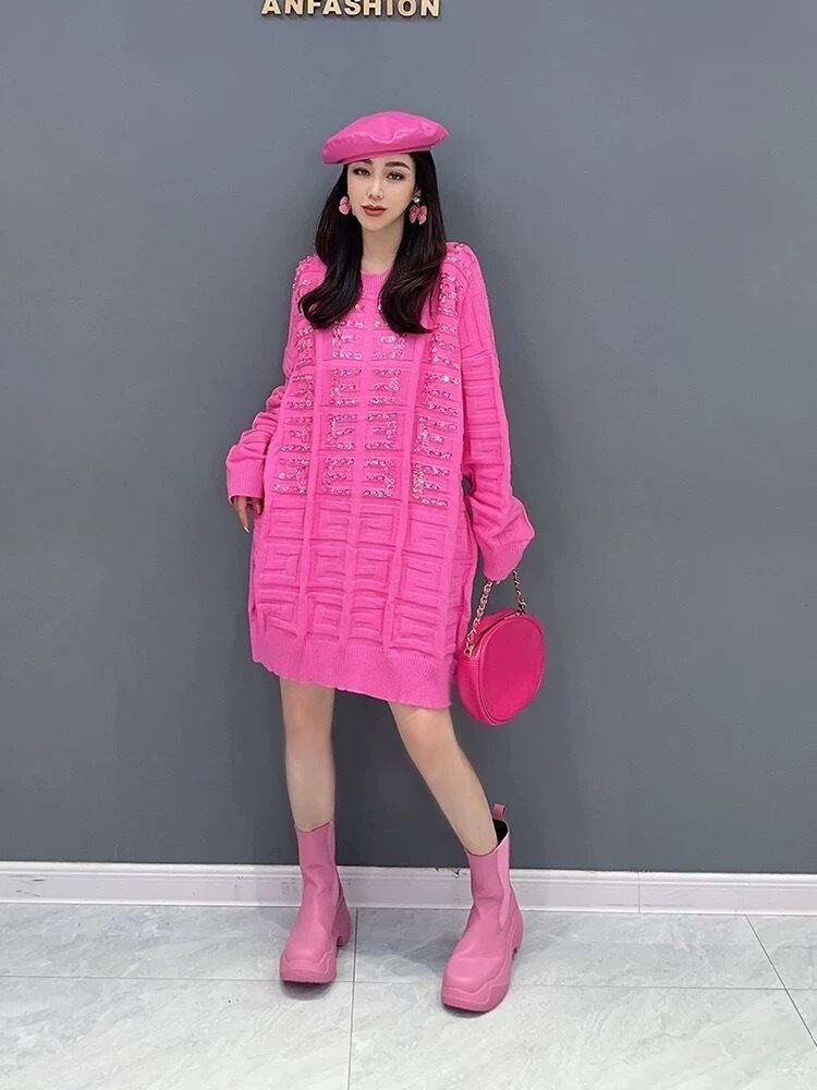 ワンピース ニット セーター ピンク 黒 カジュアル カーディガン