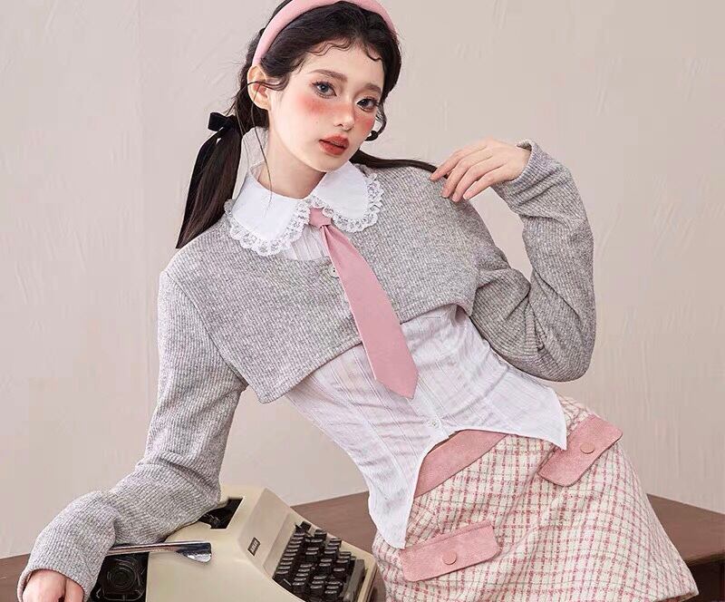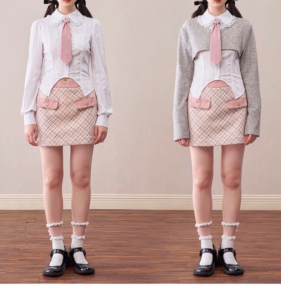 【ブラウス/ベスト】丸襟 ガーリー シンプル トップス フリル リボン