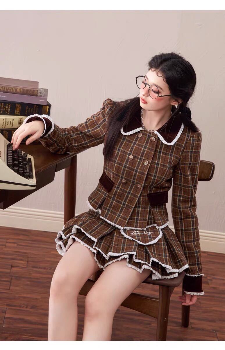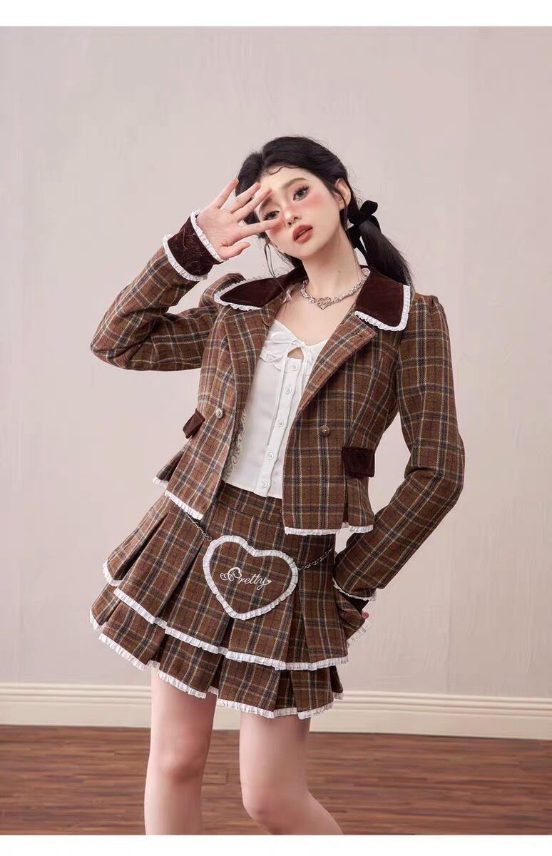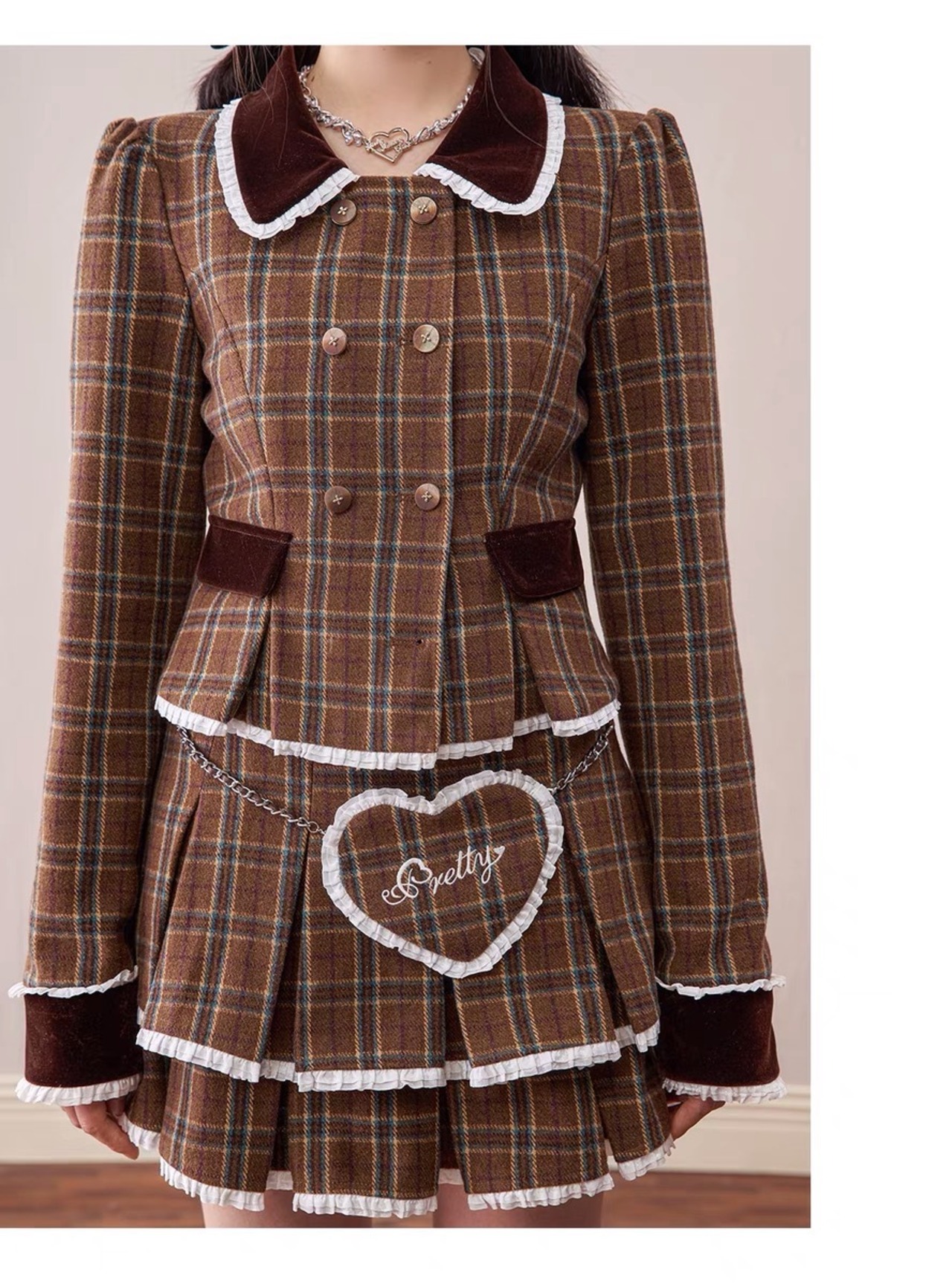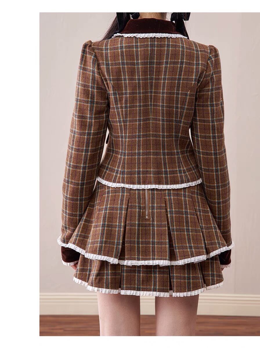 【ジャケット】茶色 チェック アウター トップス スーツ ツーピース