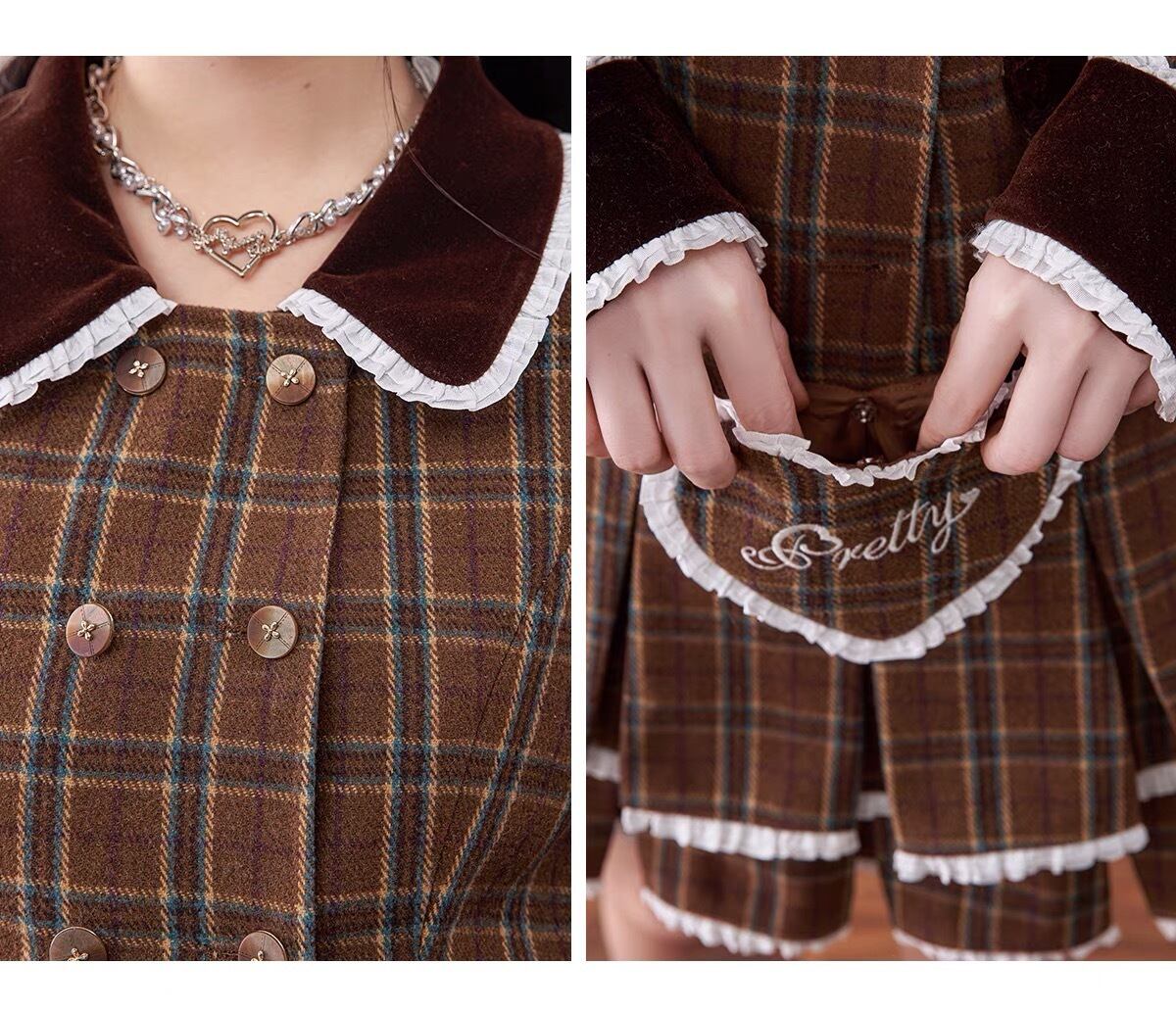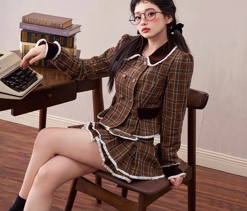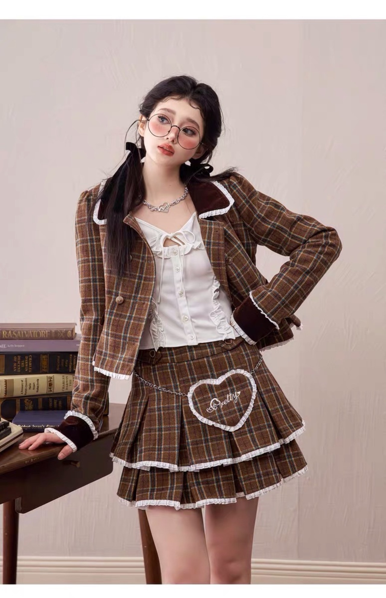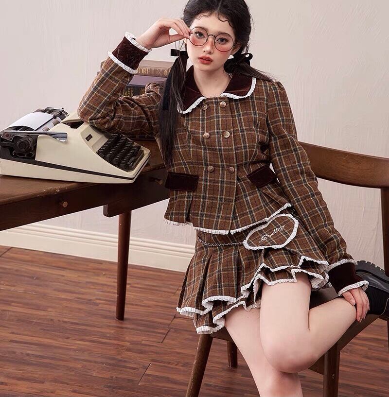 【ジャケット】茶色 チェック アウター トップス スーツ ツーピース