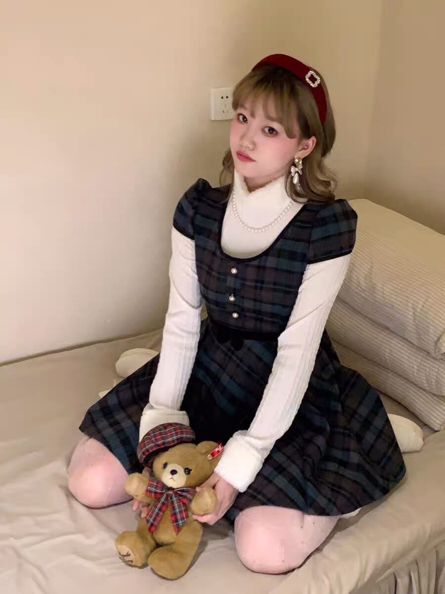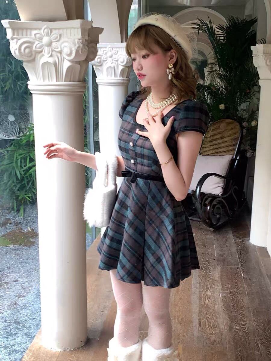 ワンピース チェック ネイビー 可愛ガーリー お嬢様