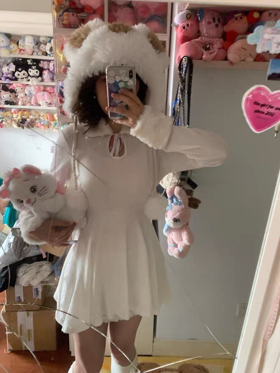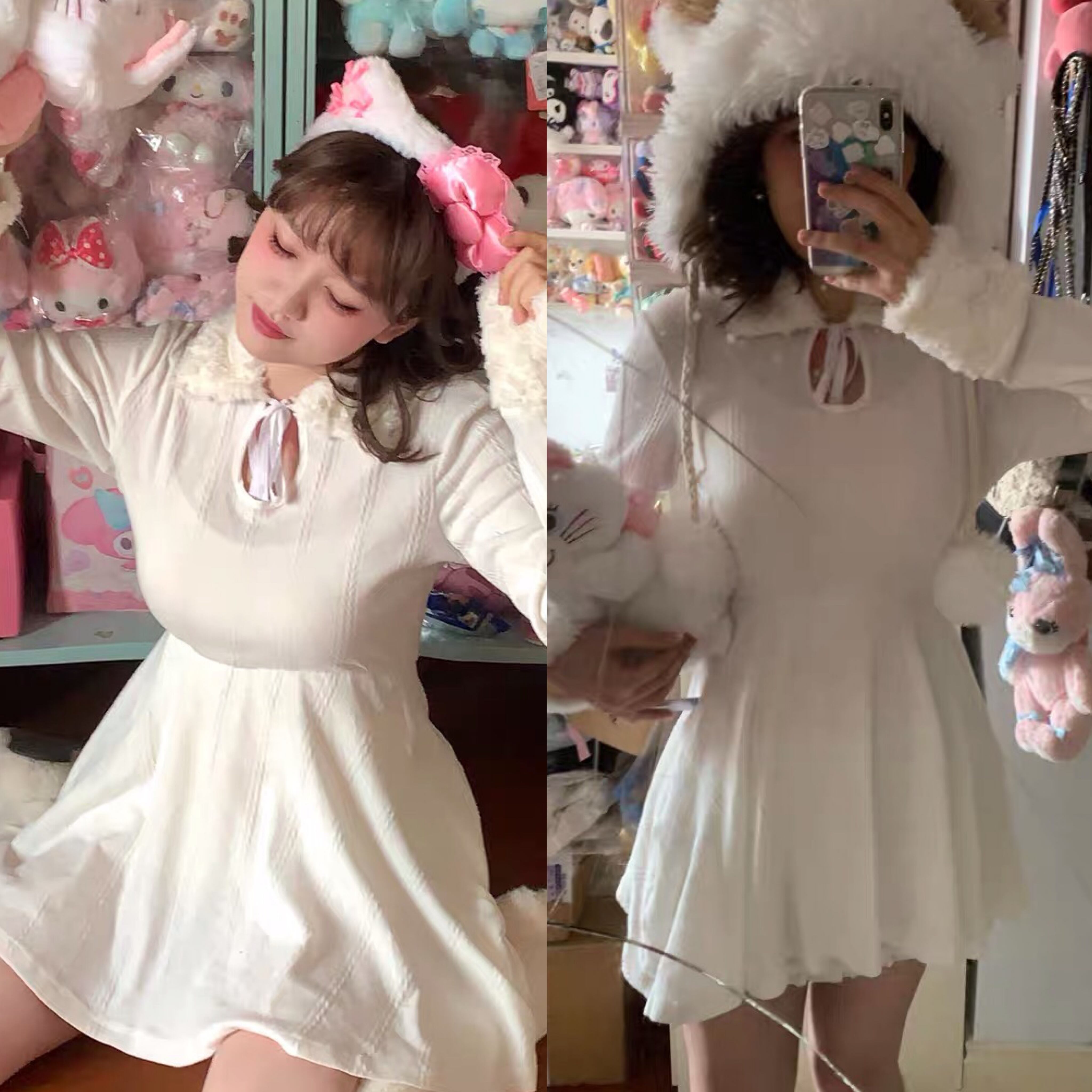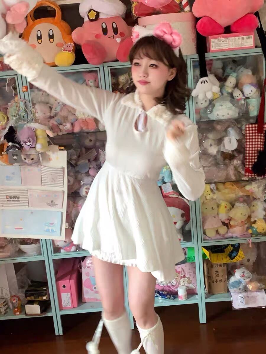 ワンピース 白 ファー クリスマス ガーリー かわいい ホワイト 雪