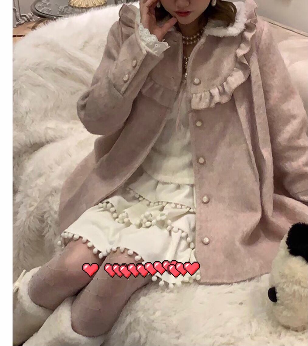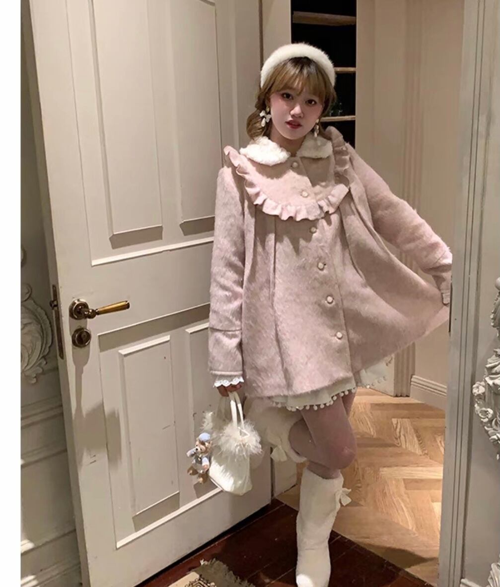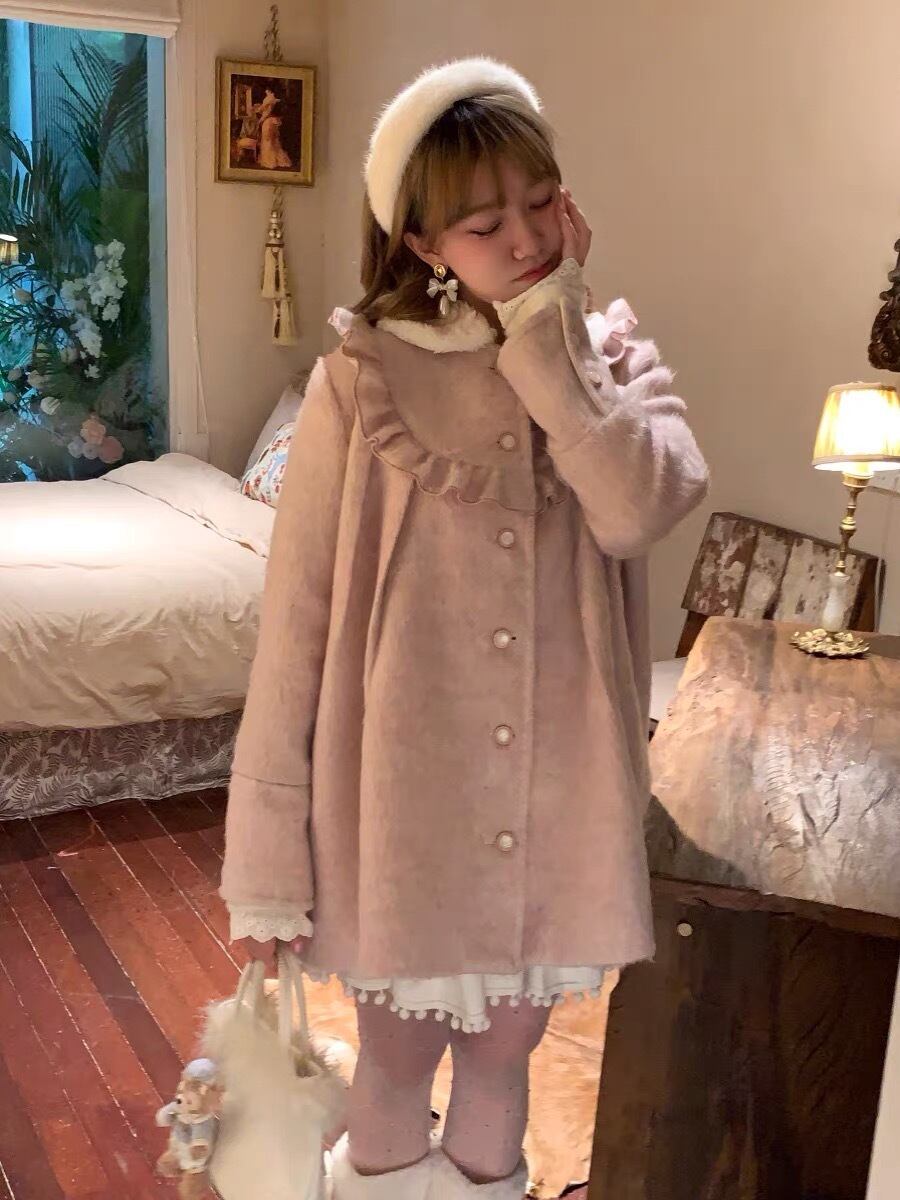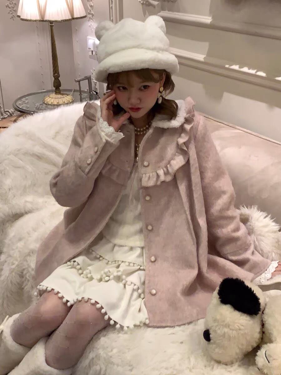 コート 丸襟 ピンク カジュアル アウター カーディガン ガーリー