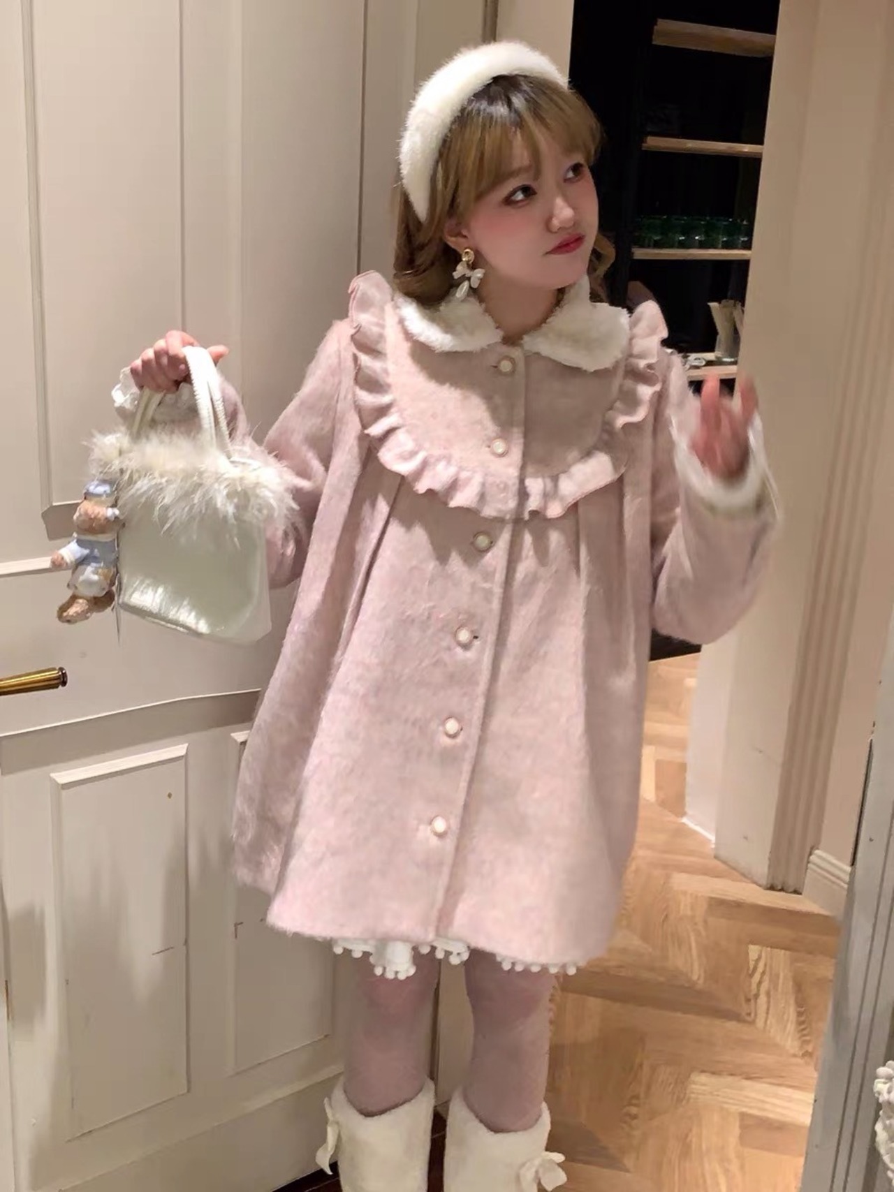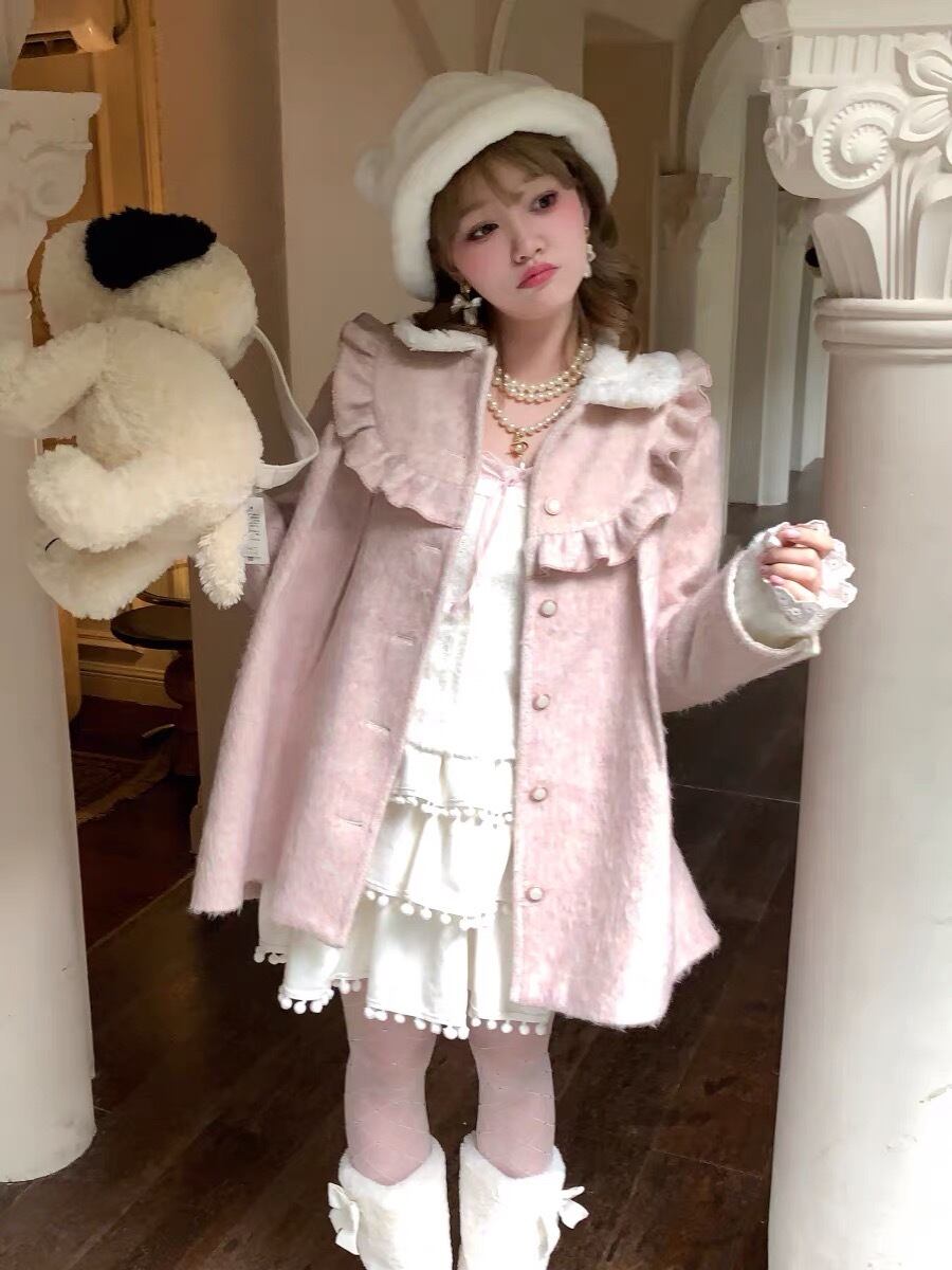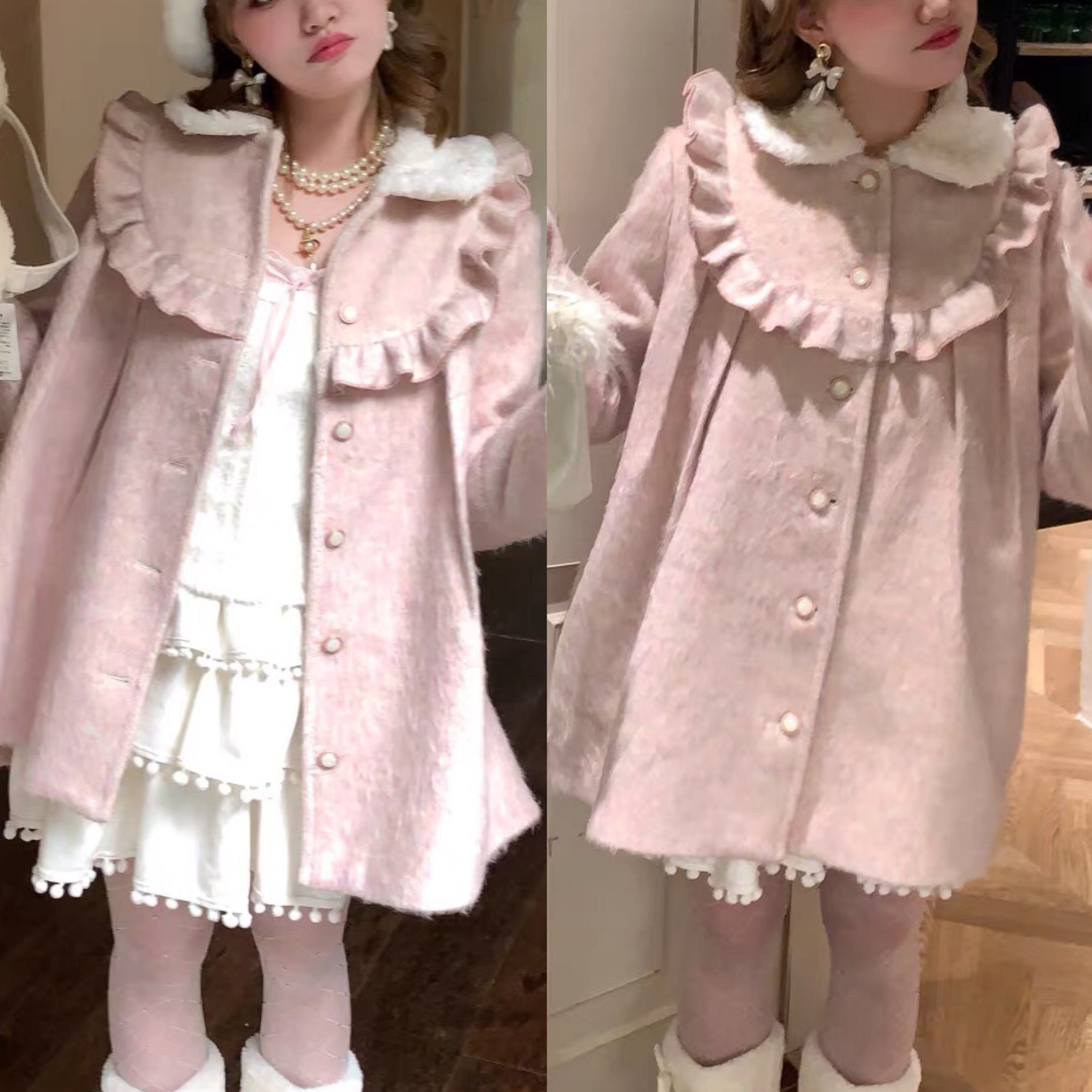 コート 丸襟 ピンク カジュアル アウター カーディガン ガーリー