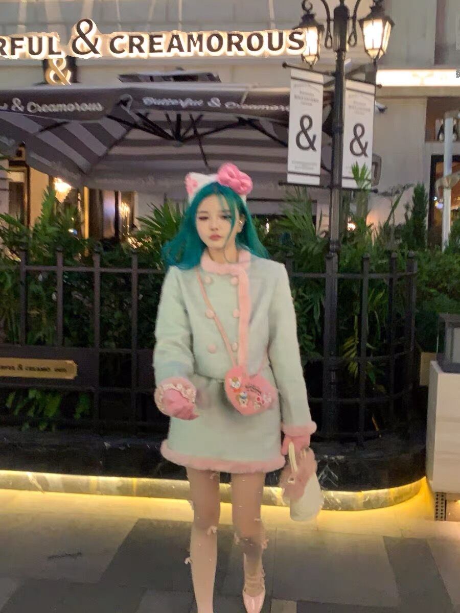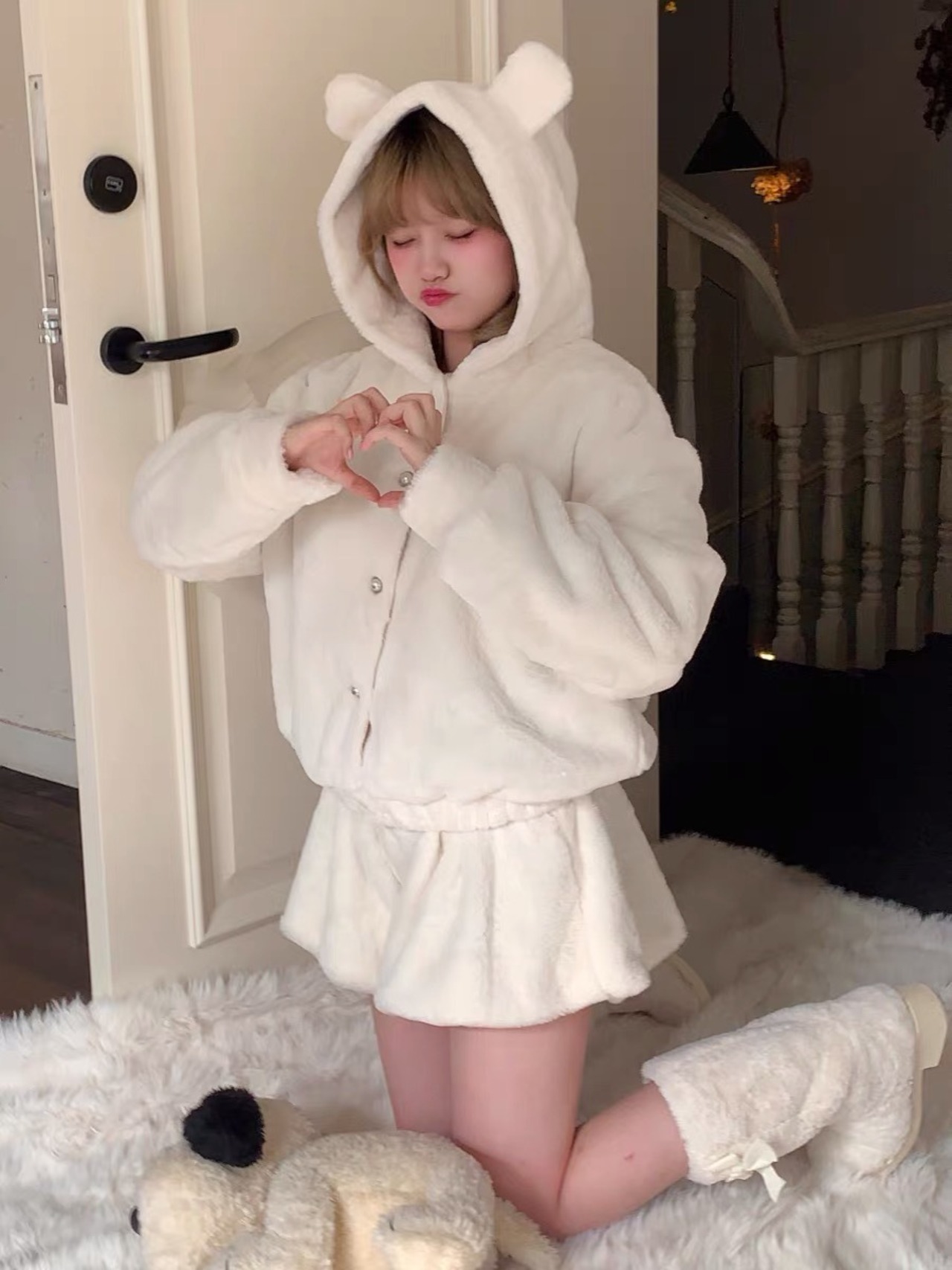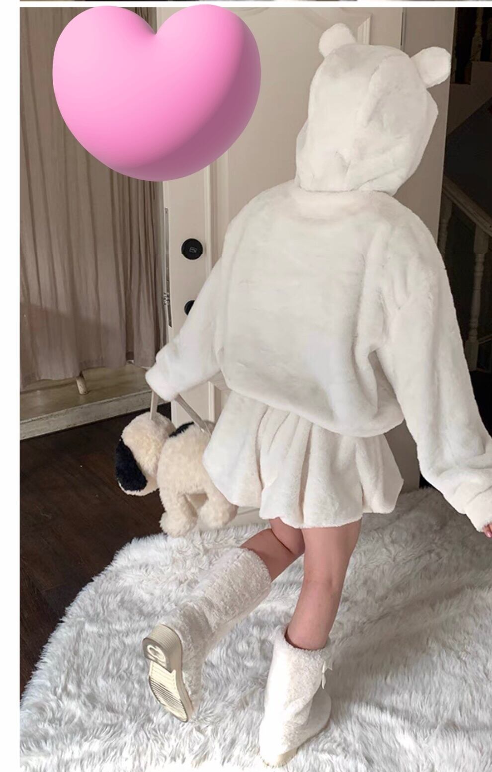 【ジャケット】白 パーカー くま 緑 アウター セットアップ