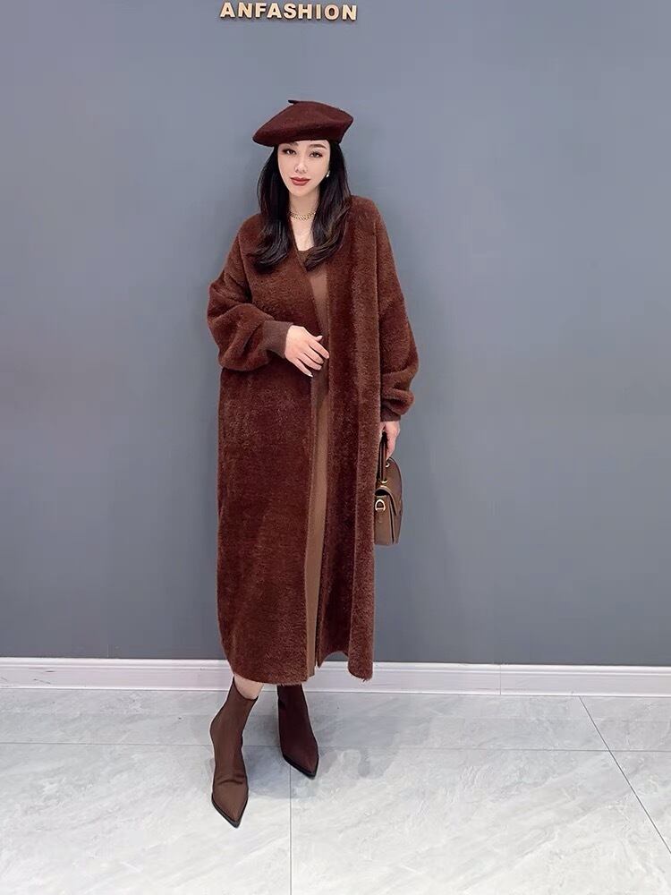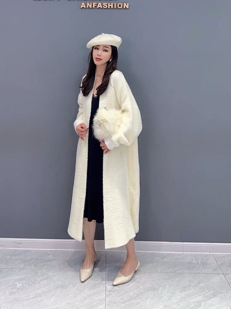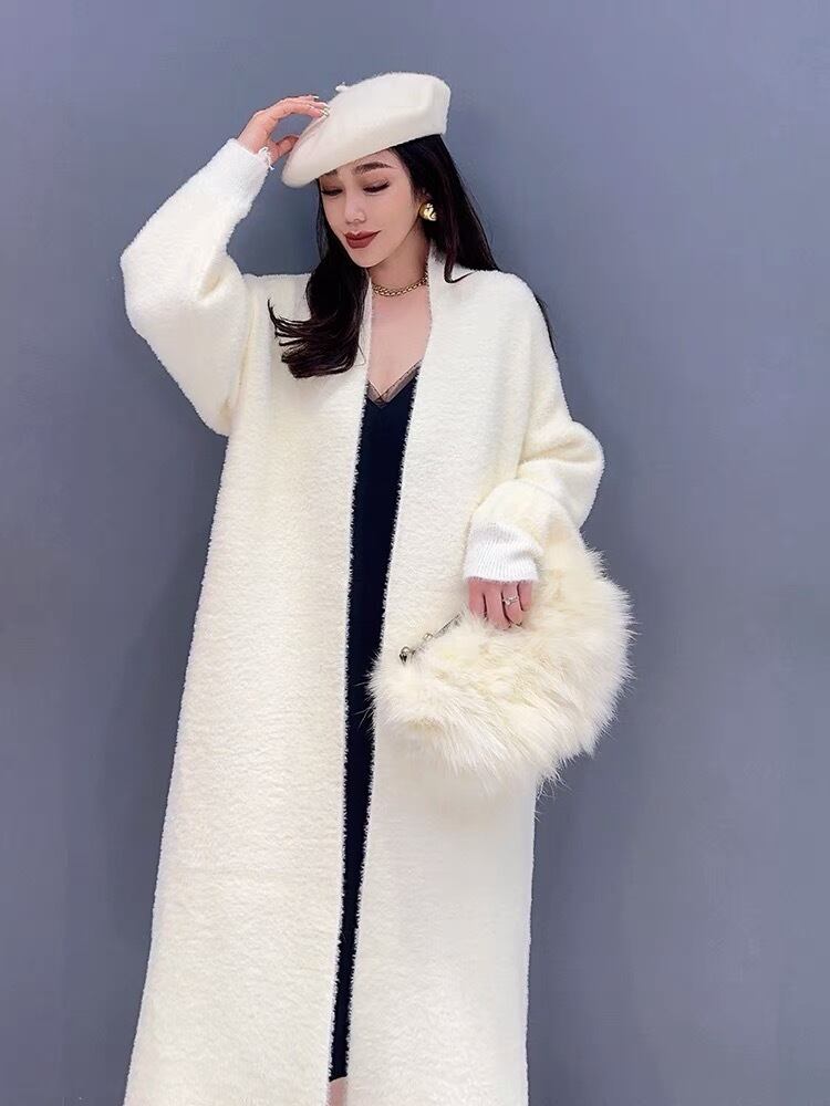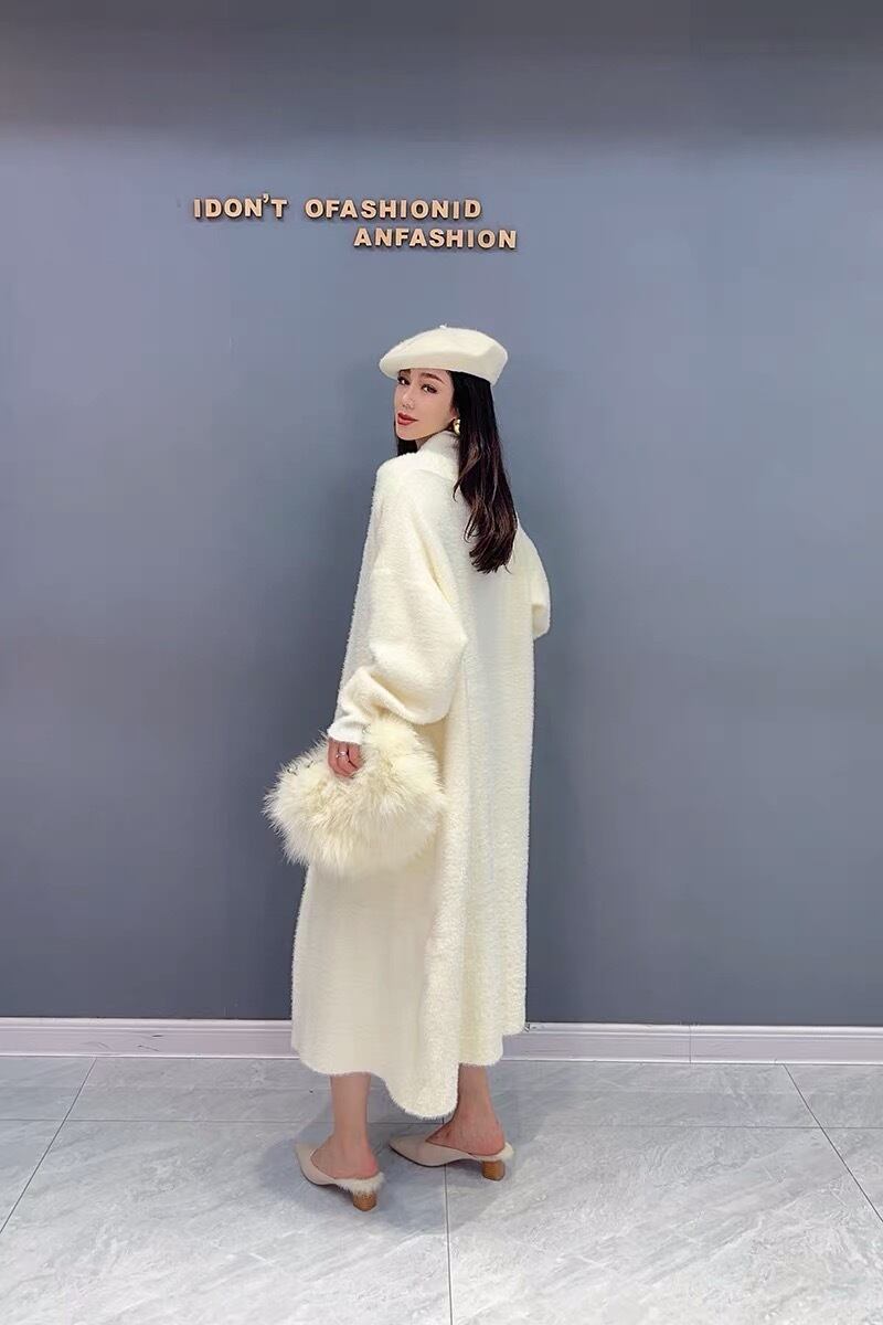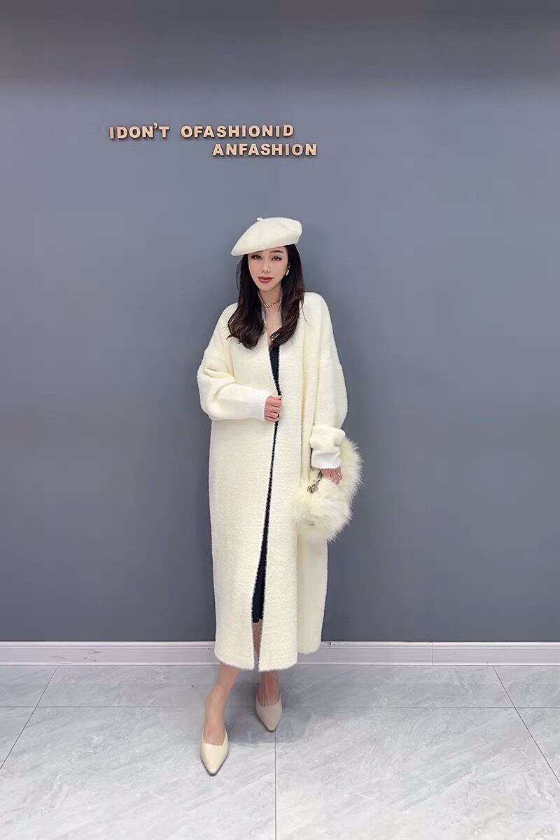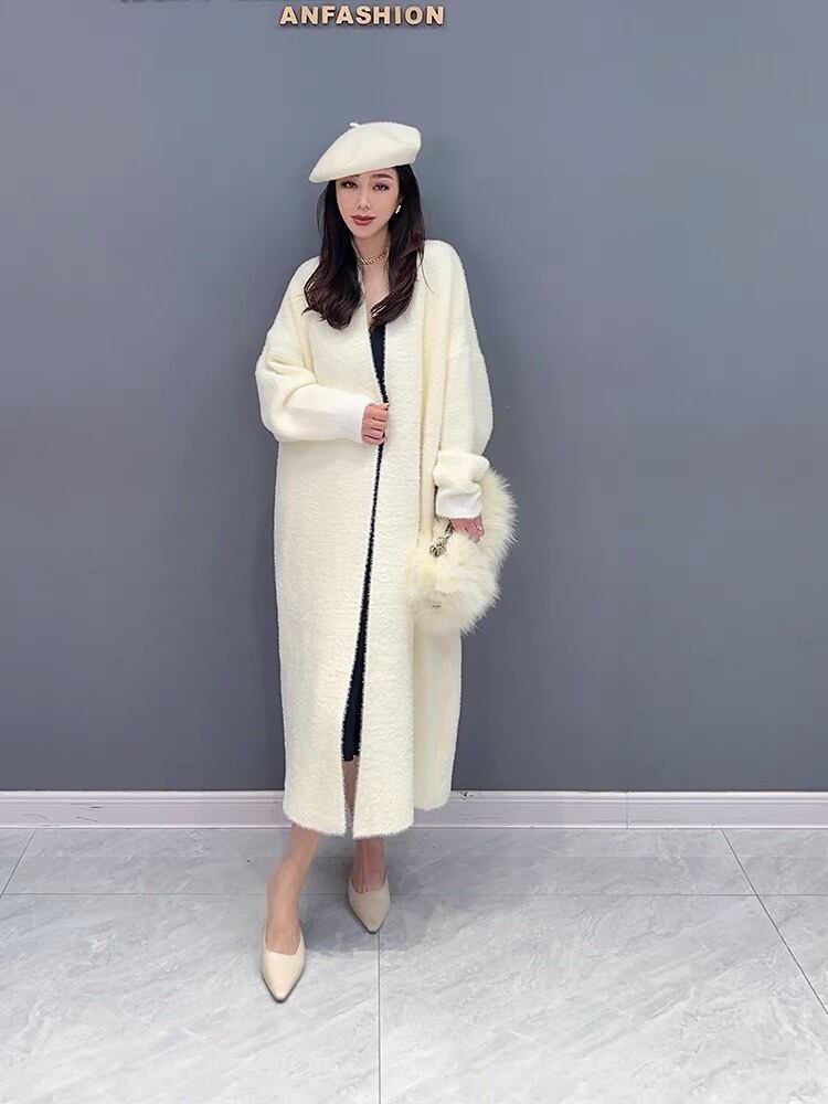 カーディガン マキシ ワンピース 茶色 白 アウター