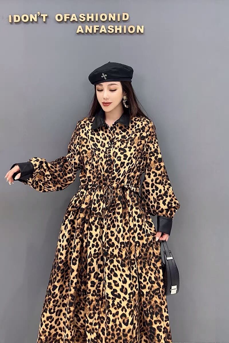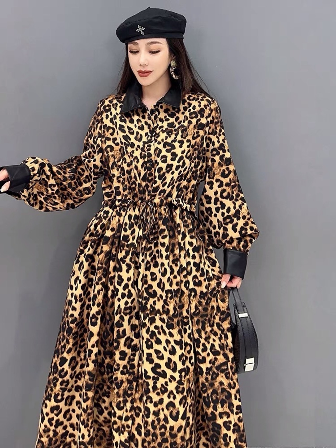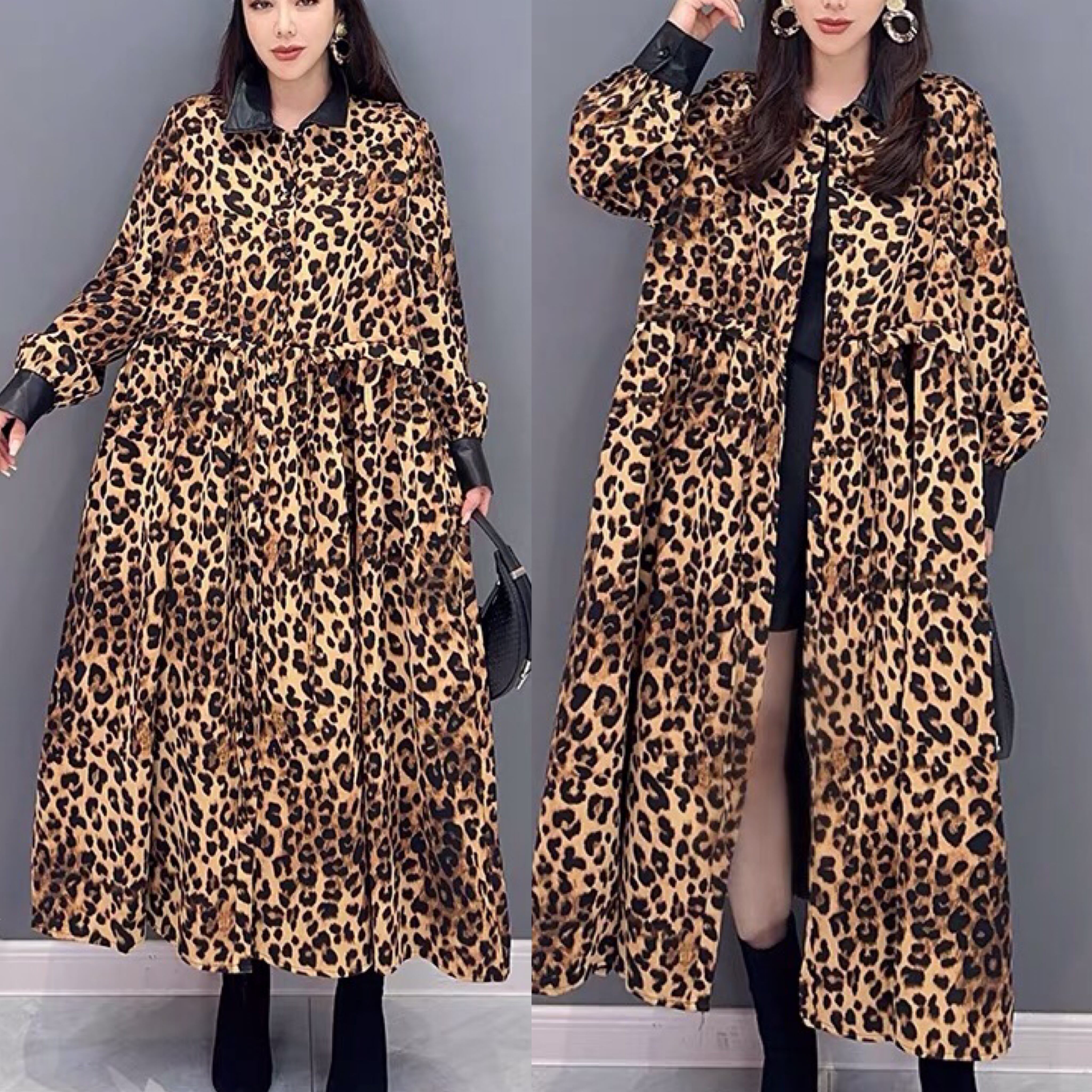 アウター ワンピース ヒョウ柄 レオパード ブラウス ロング マキシ