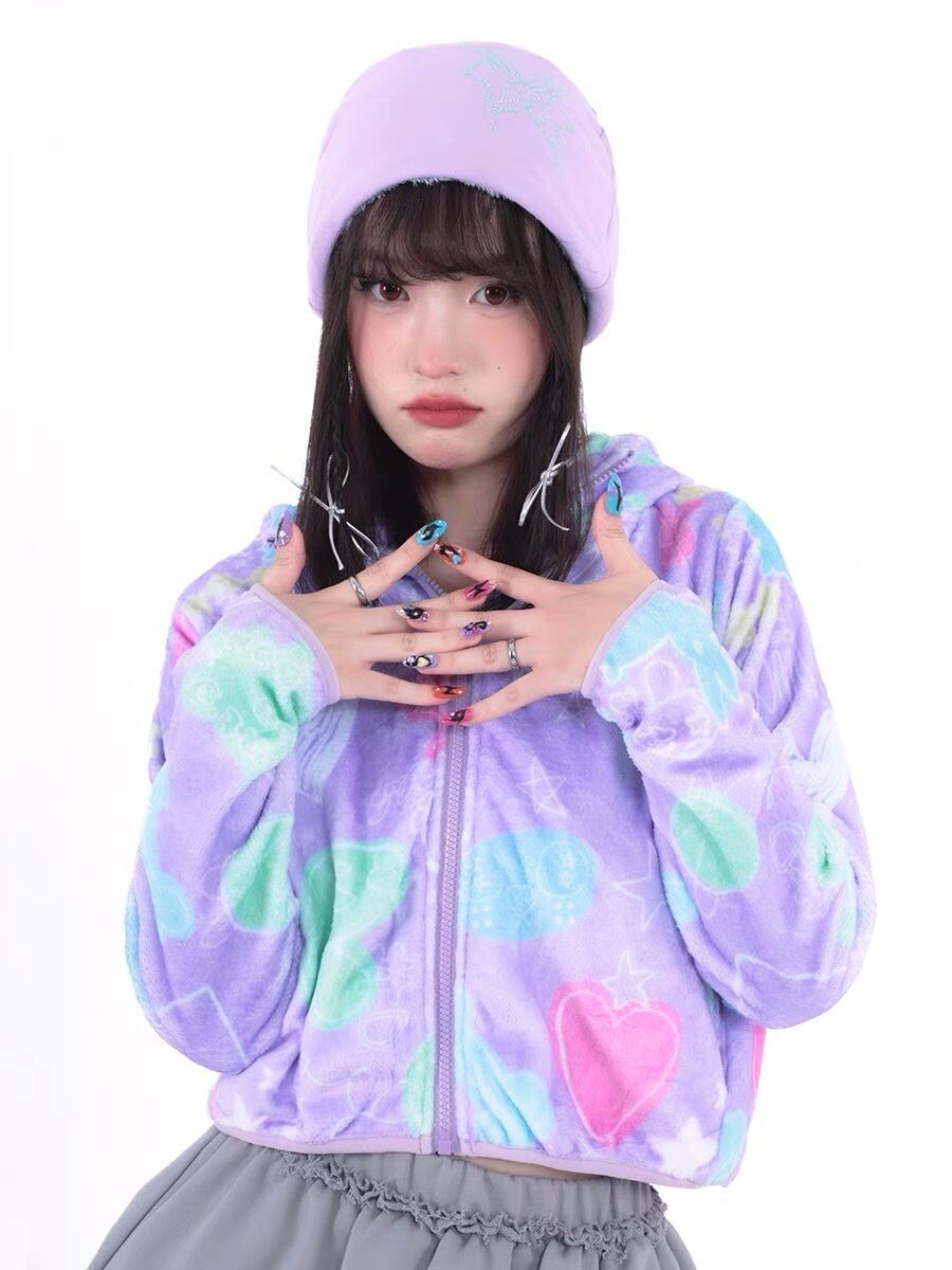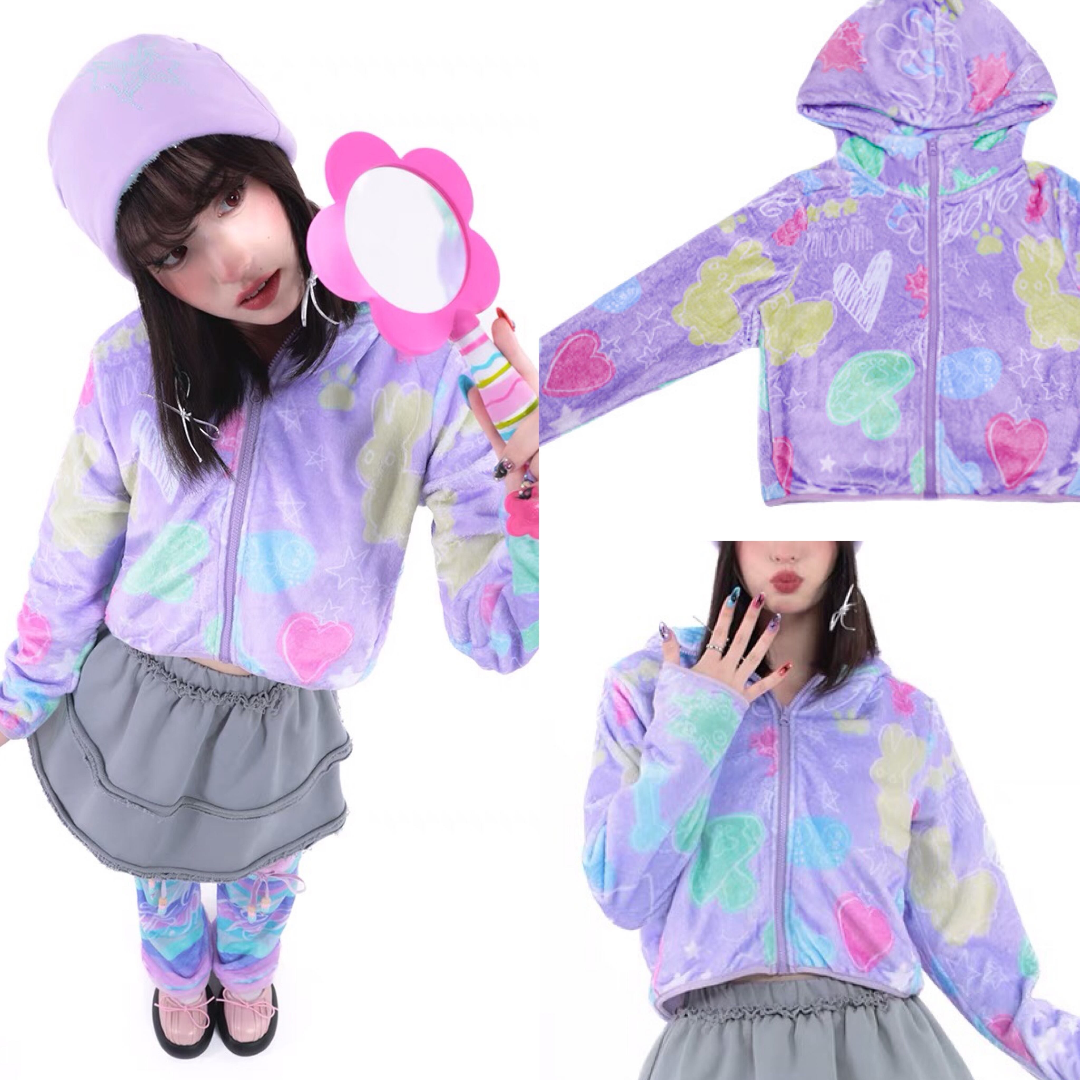 パーカー トレーナー スウェット 紫 星 カジュアル フリース